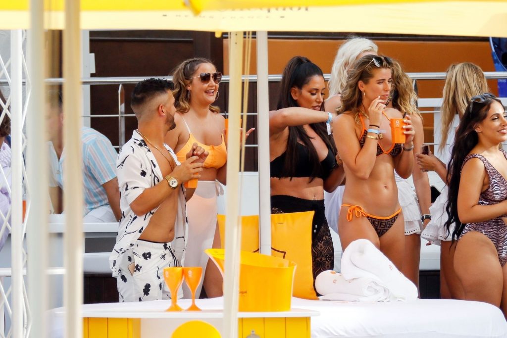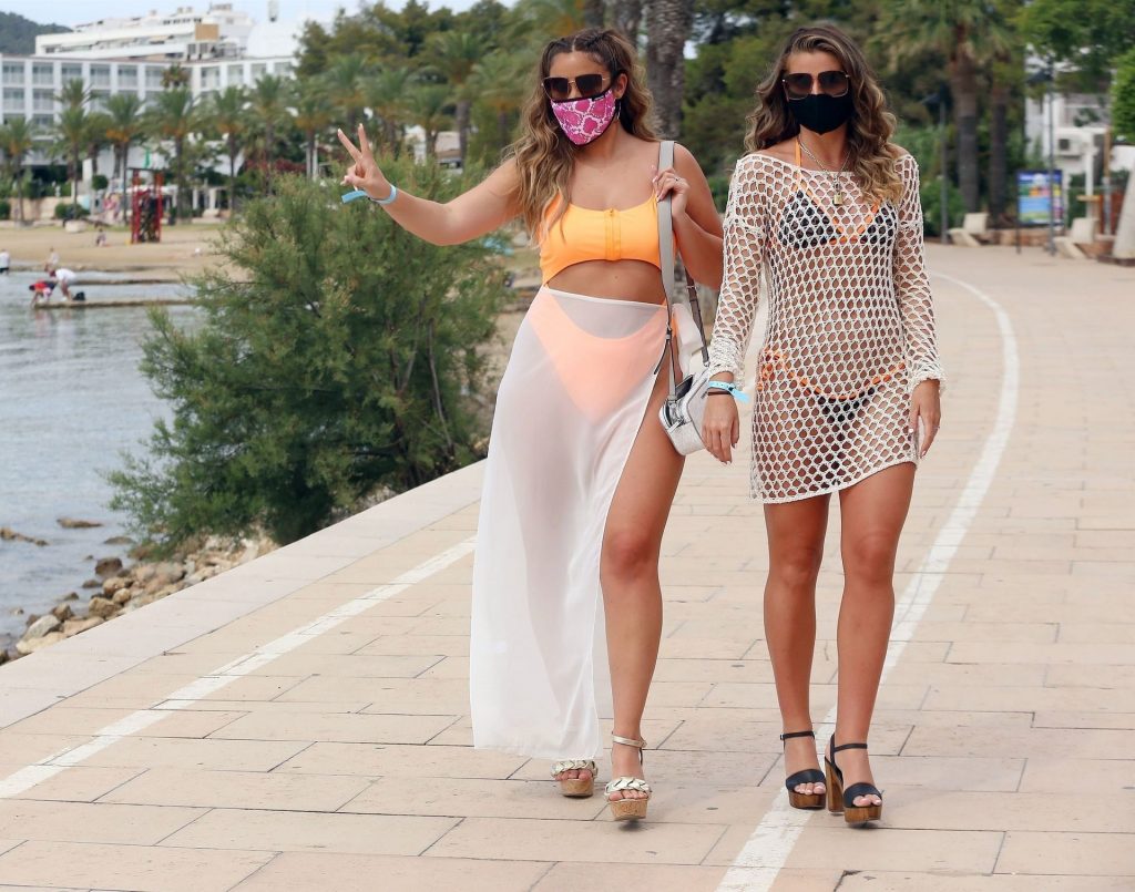 La ex actriz de “Eastenders” y ganadora de “I’m a Celebrity Get Me Out Here”, Jacqueline Jossa, fue fotografiada usando una mascarilla protectora y disfrutando de bebidas con amigos mientras festejaba en O Beach en Ibiza, 14/07/2020.
