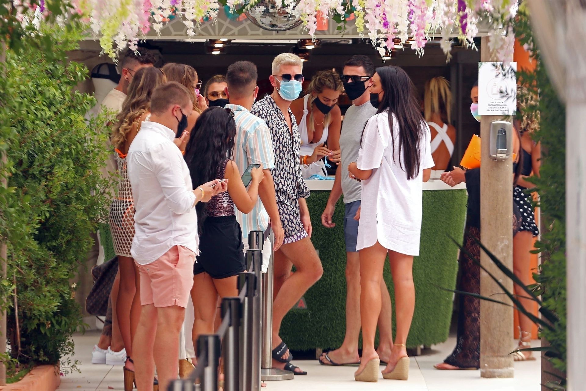 La ex actriz de “Eastenders” y ganadora de “I’m a Celebrity Get Me Out Here”, Jacqueline Jossa, fue fotografiada usando una mascarilla protectora y disfrutando de bebidas con amigos mientras festejaba en O Beach en Ibiza, 14/07/2020.