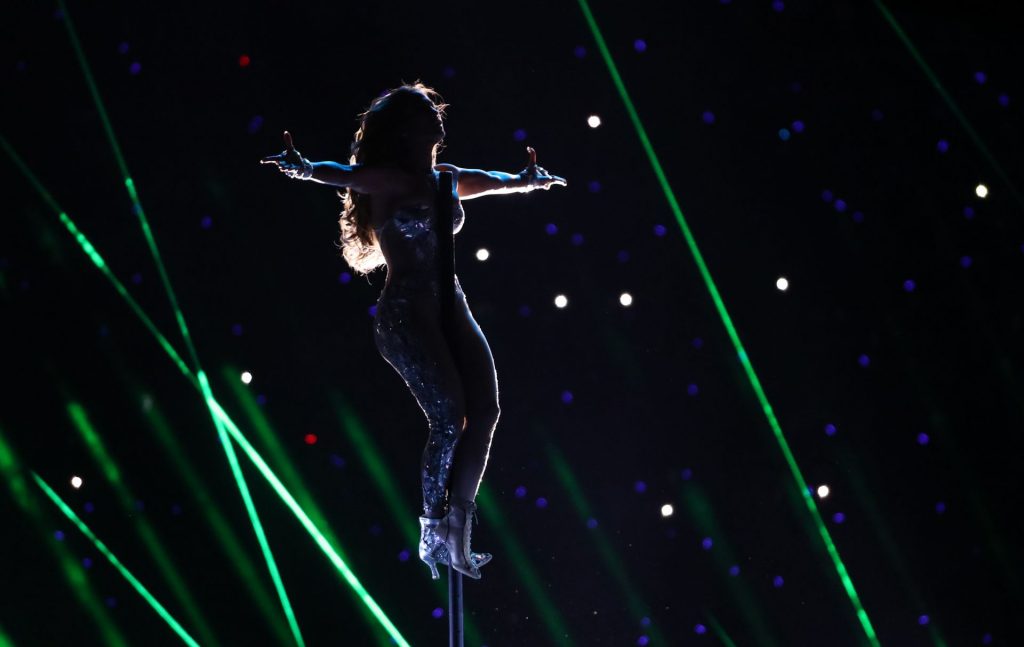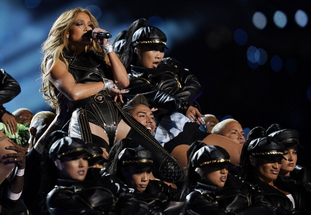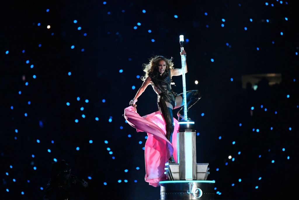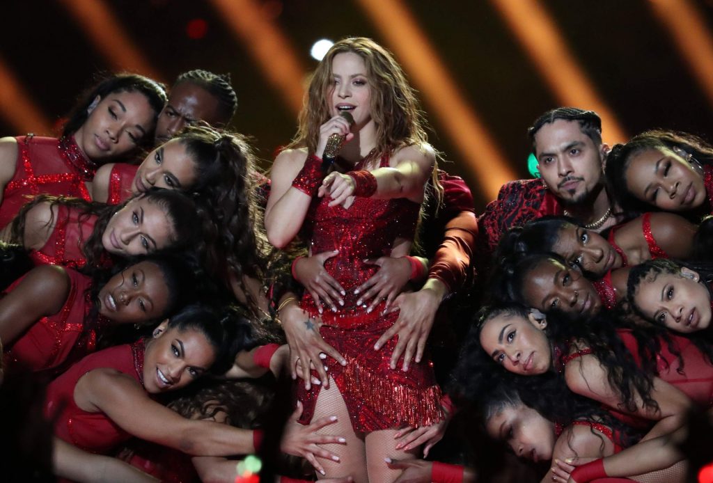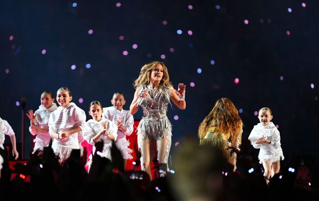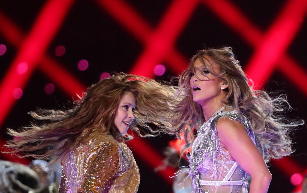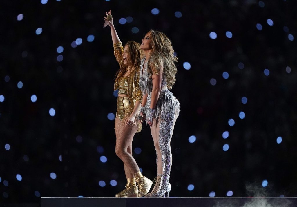 Las sensuales cantantes Jennifer Lopez y Shakira actúan durante el show de medio tiempo en el Super Bowl LIV entre los San Francisco 49ers y los Kansas City Chiefs en el Hard Rock Stadium, 02/02/2020.
