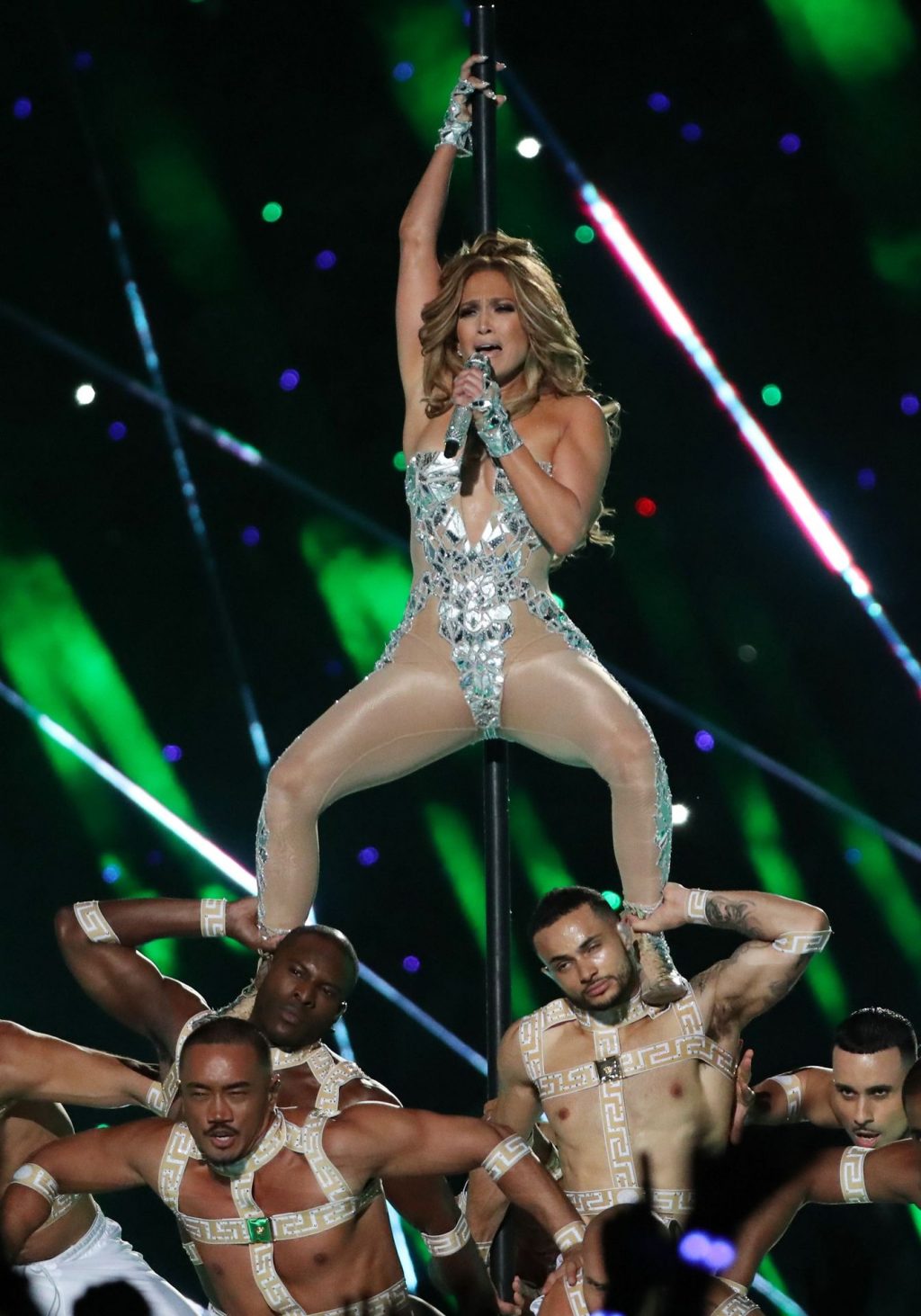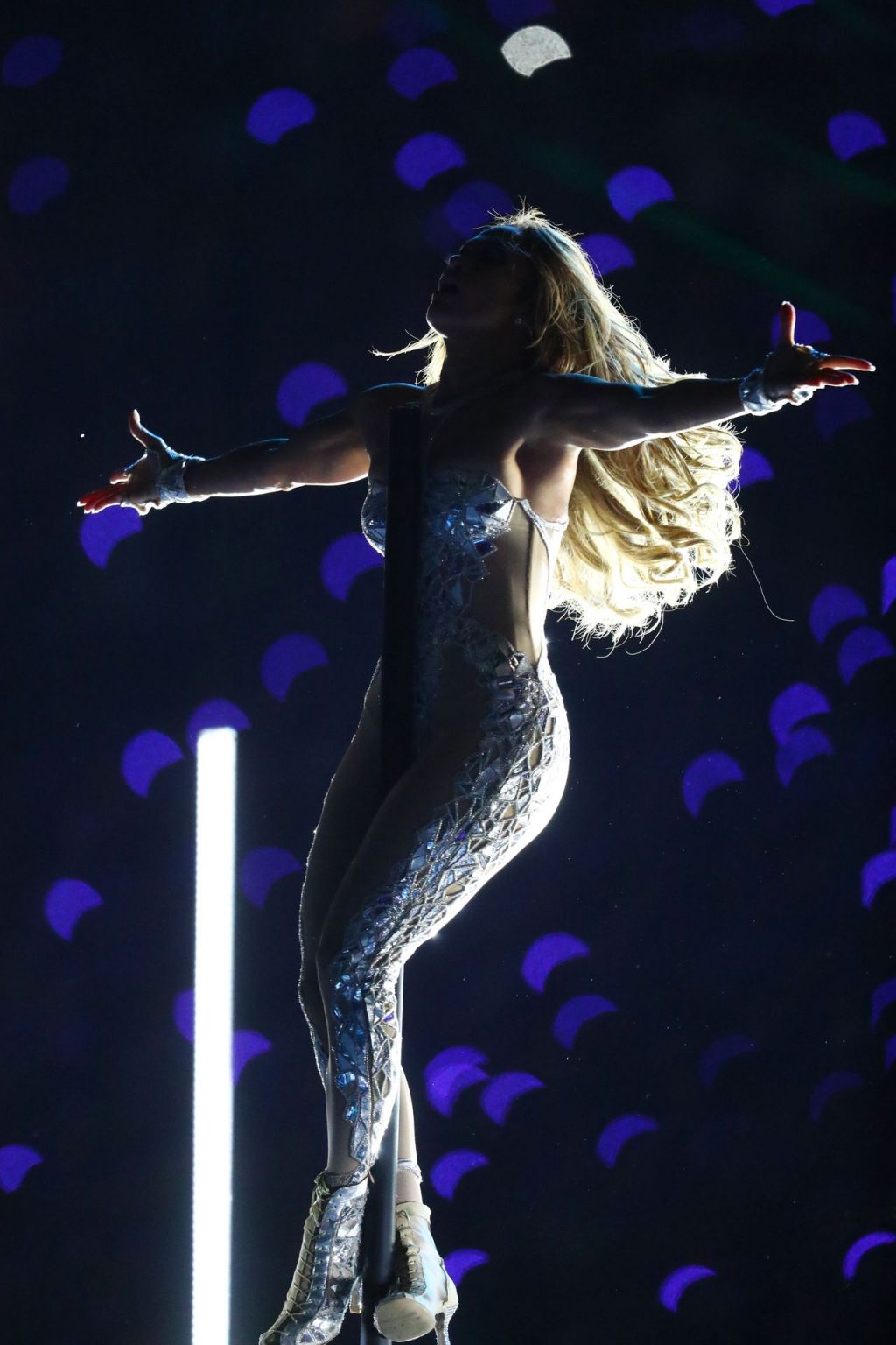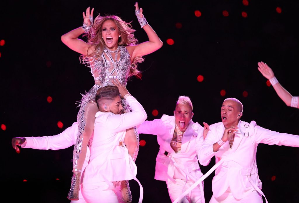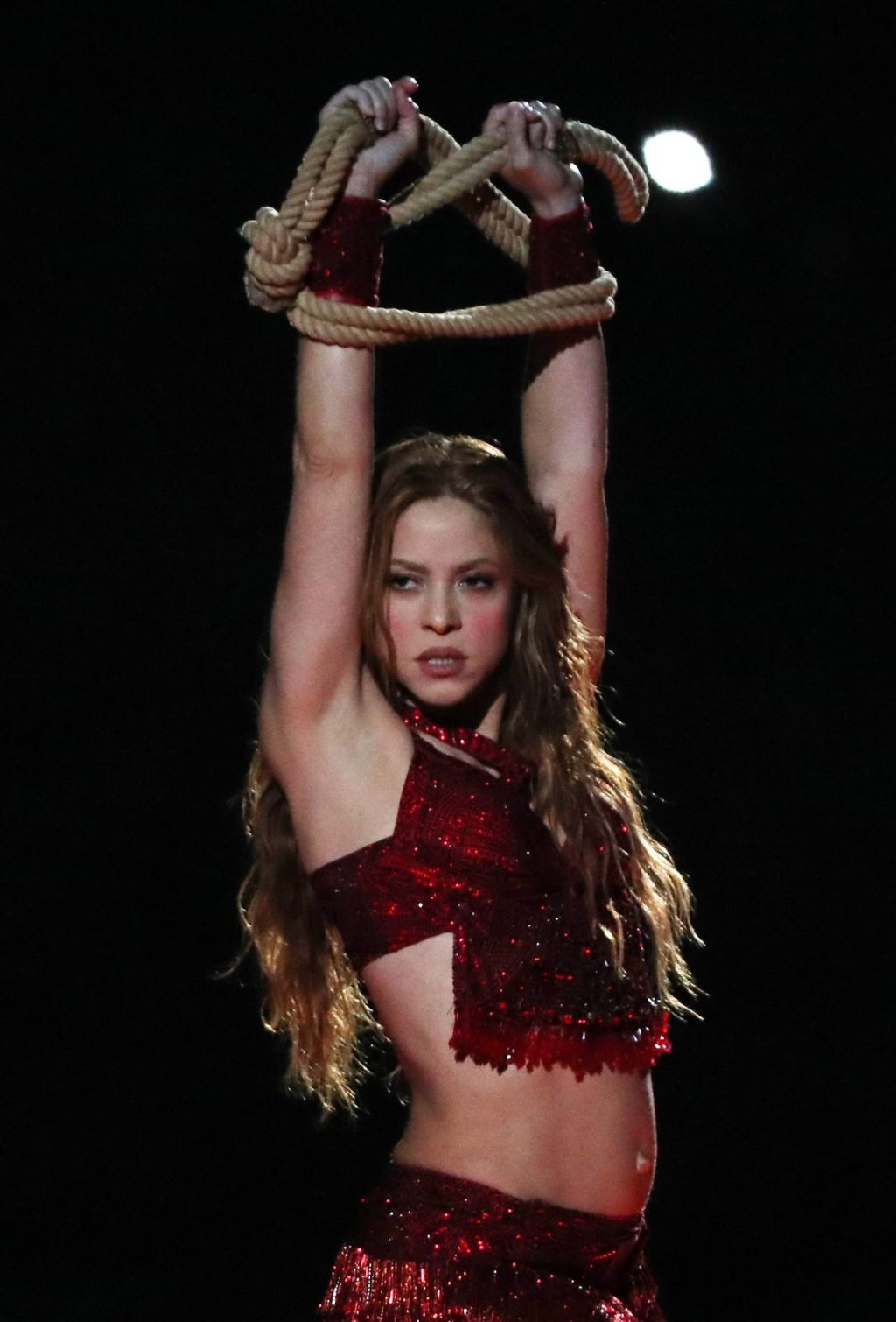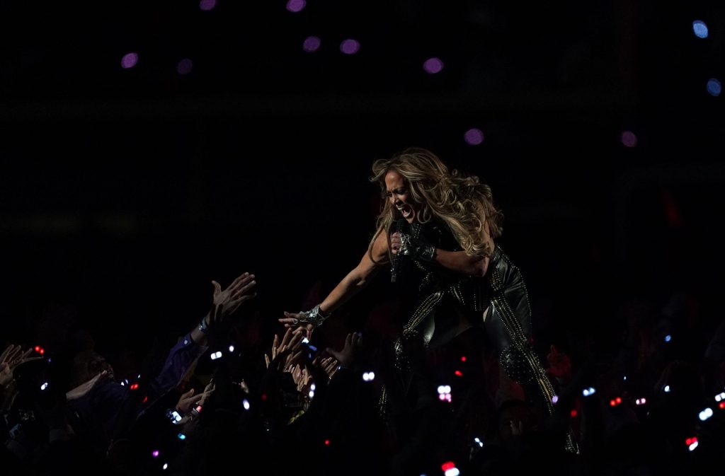 Las sensuales cantantes Jennifer Lopez y Shakira actúan durante el show de medio tiempo en el Super Bowl LIV entre los San Francisco 49ers y los Kansas City Chiefs en el Hard Rock Stadium, 02/02/2020.