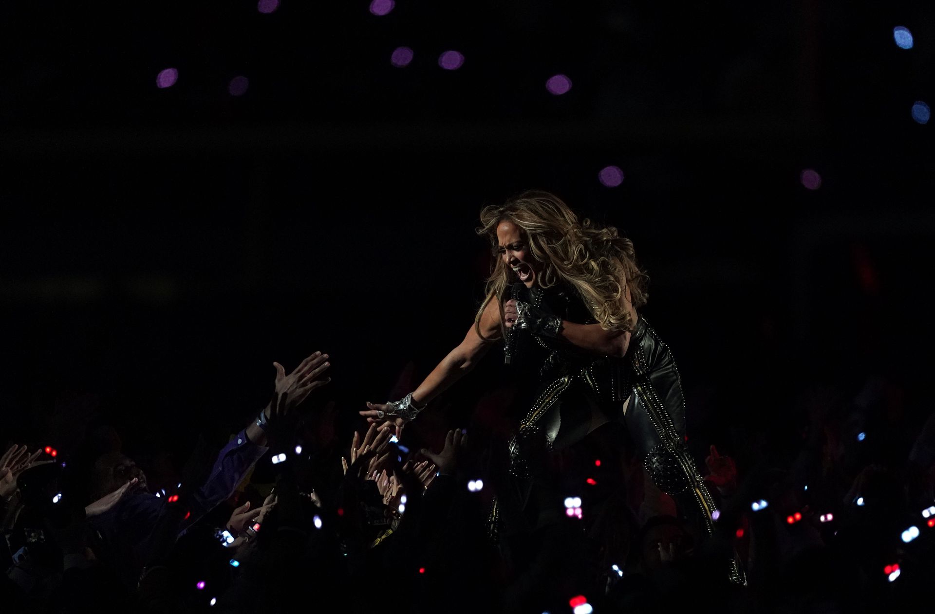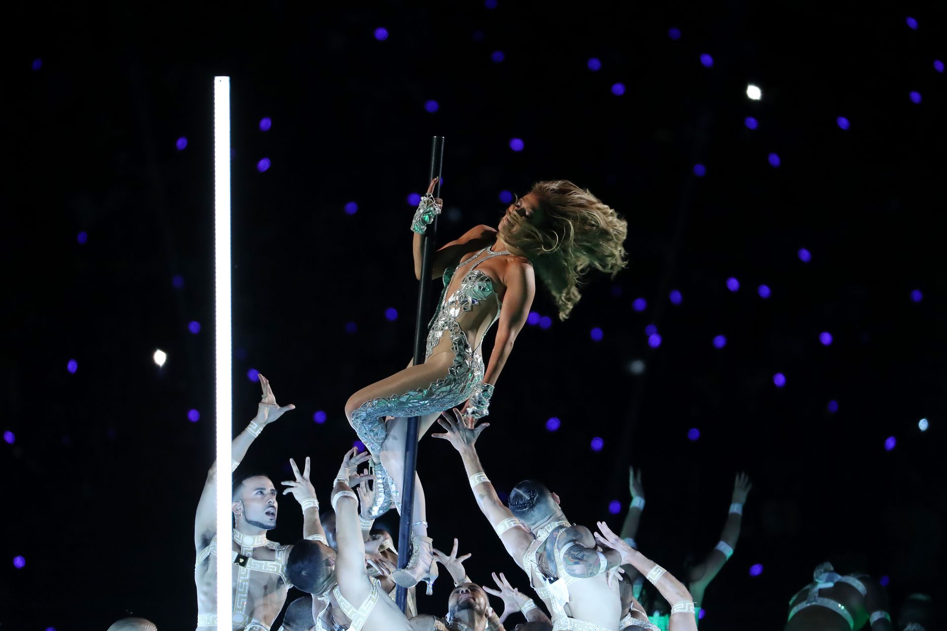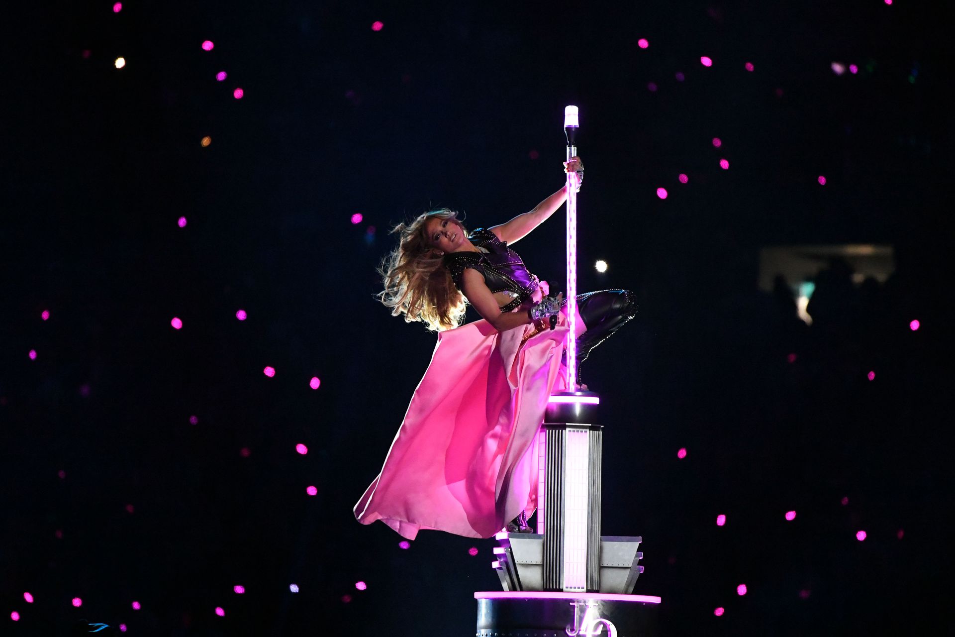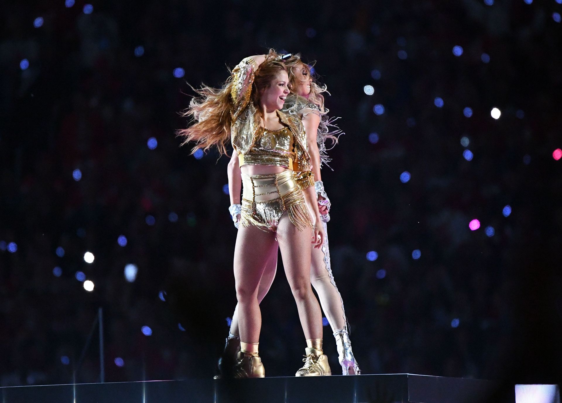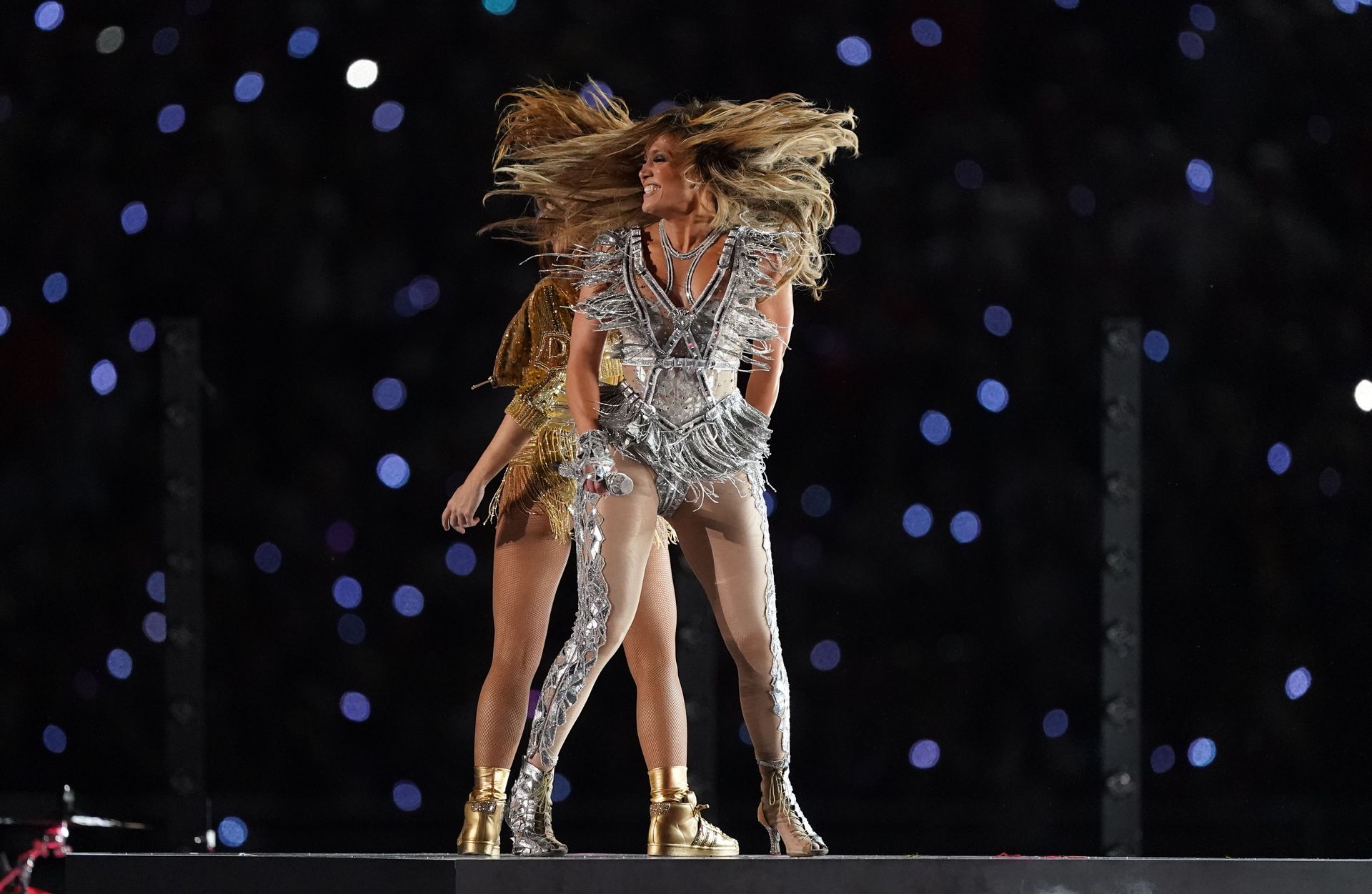 Las sensuales cantantes Jennifer Lopez y Shakira actúan durante el show de medio tiempo en el Super Bowl LIV entre los San Francisco 49ers y los Kansas City Chiefs en el Hard Rock Stadium, 02/02/2020.