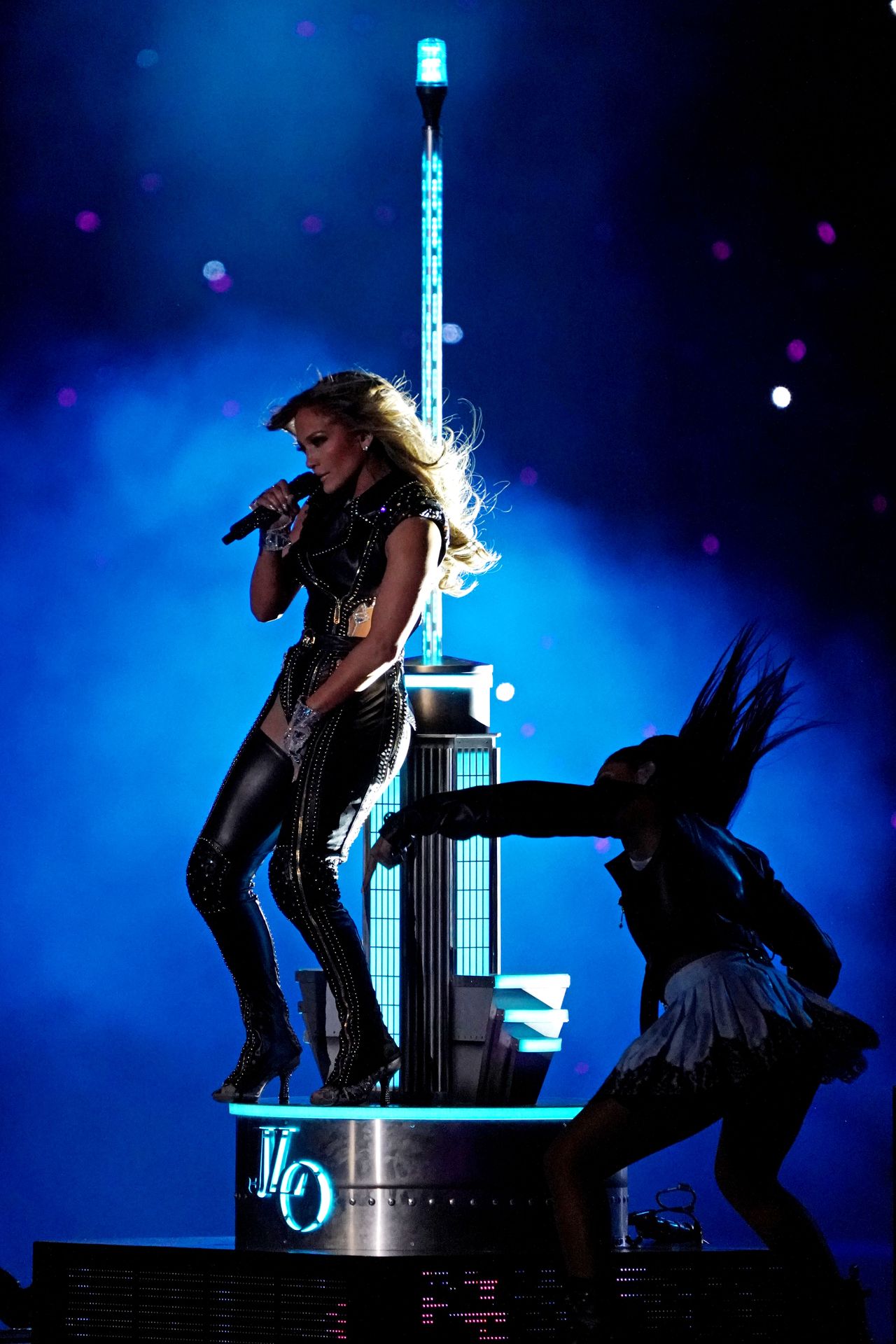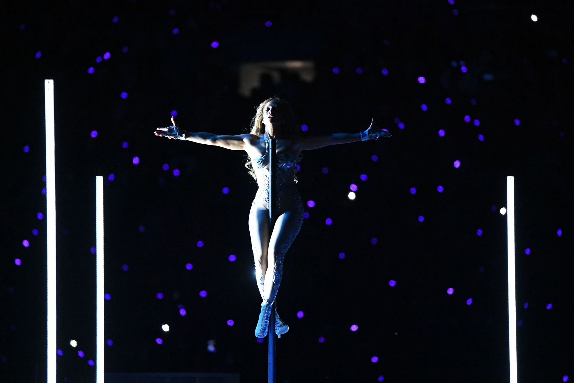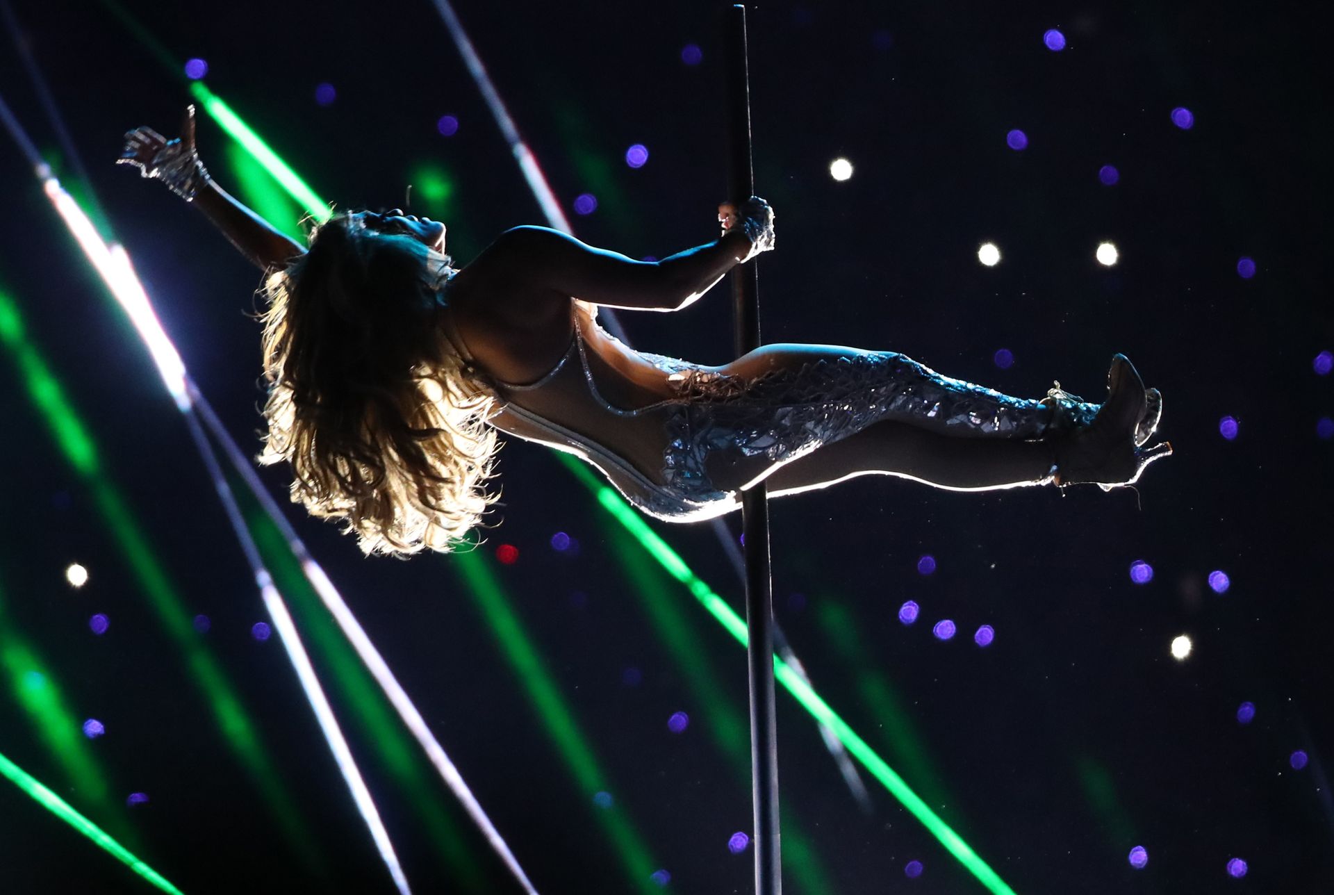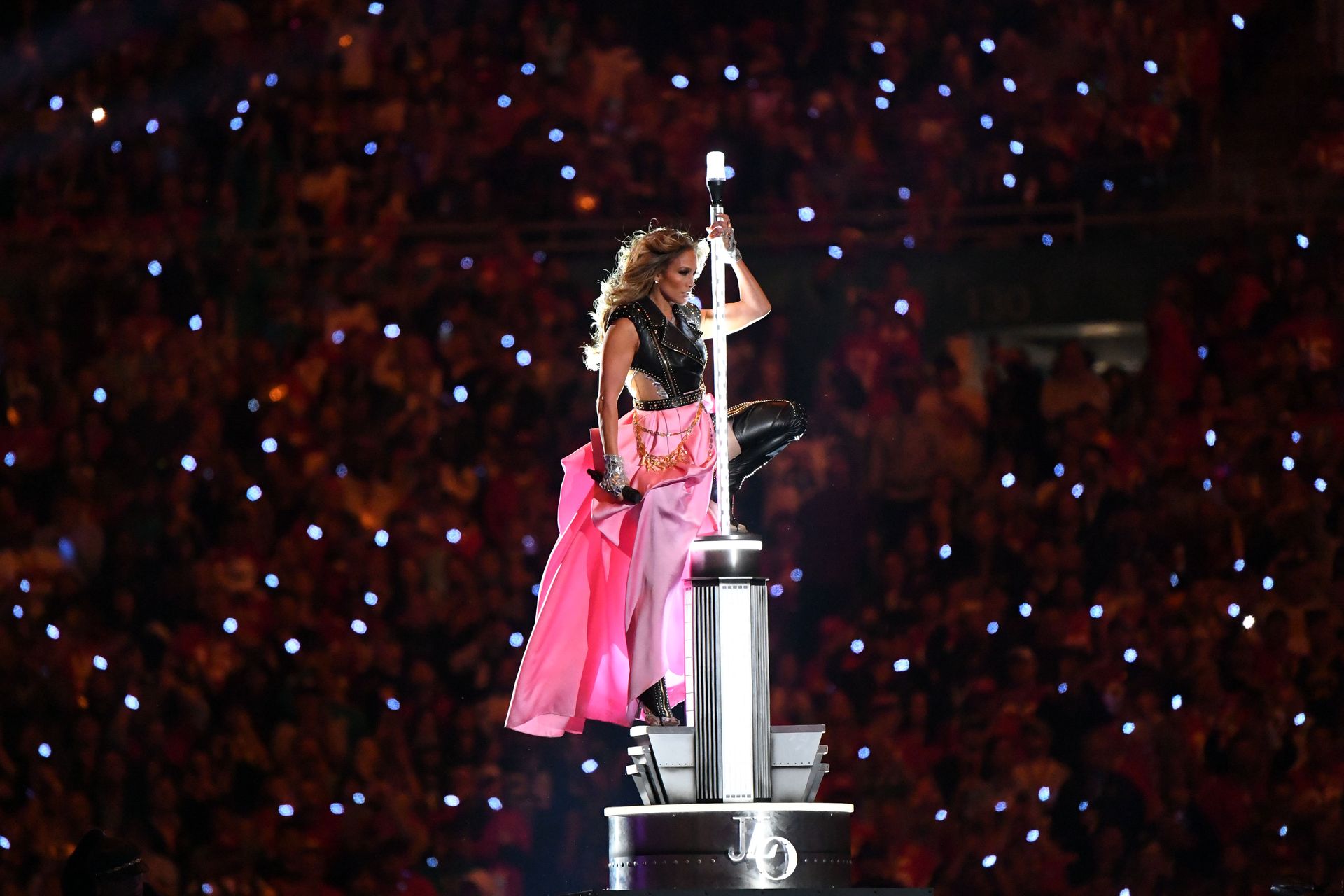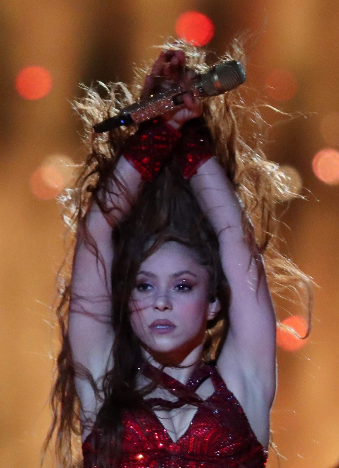 Las sensuales cantantes Jennifer Lopez y Shakira actúan durante el show de medio tiempo en el Super Bowl LIV entre los San Francisco 49ers y los Kansas City Chiefs en el Hard Rock Stadium, 02/02/2020.