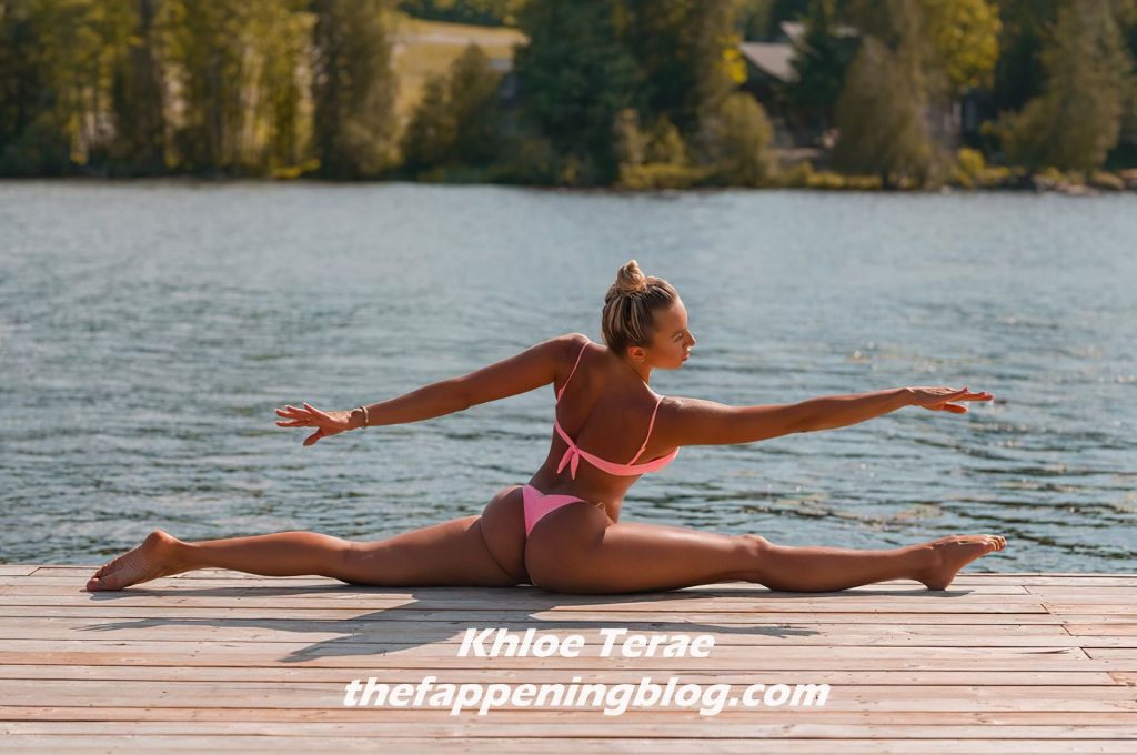 La modelo de Playboy Khloe Terae muestra su cuerpo sexy y flexible mientras posa con bikinis rosas en una sesión de fotos en Canadá (agosto de 2020).
