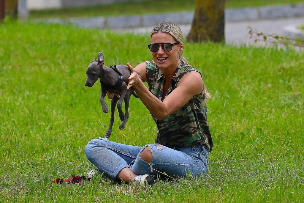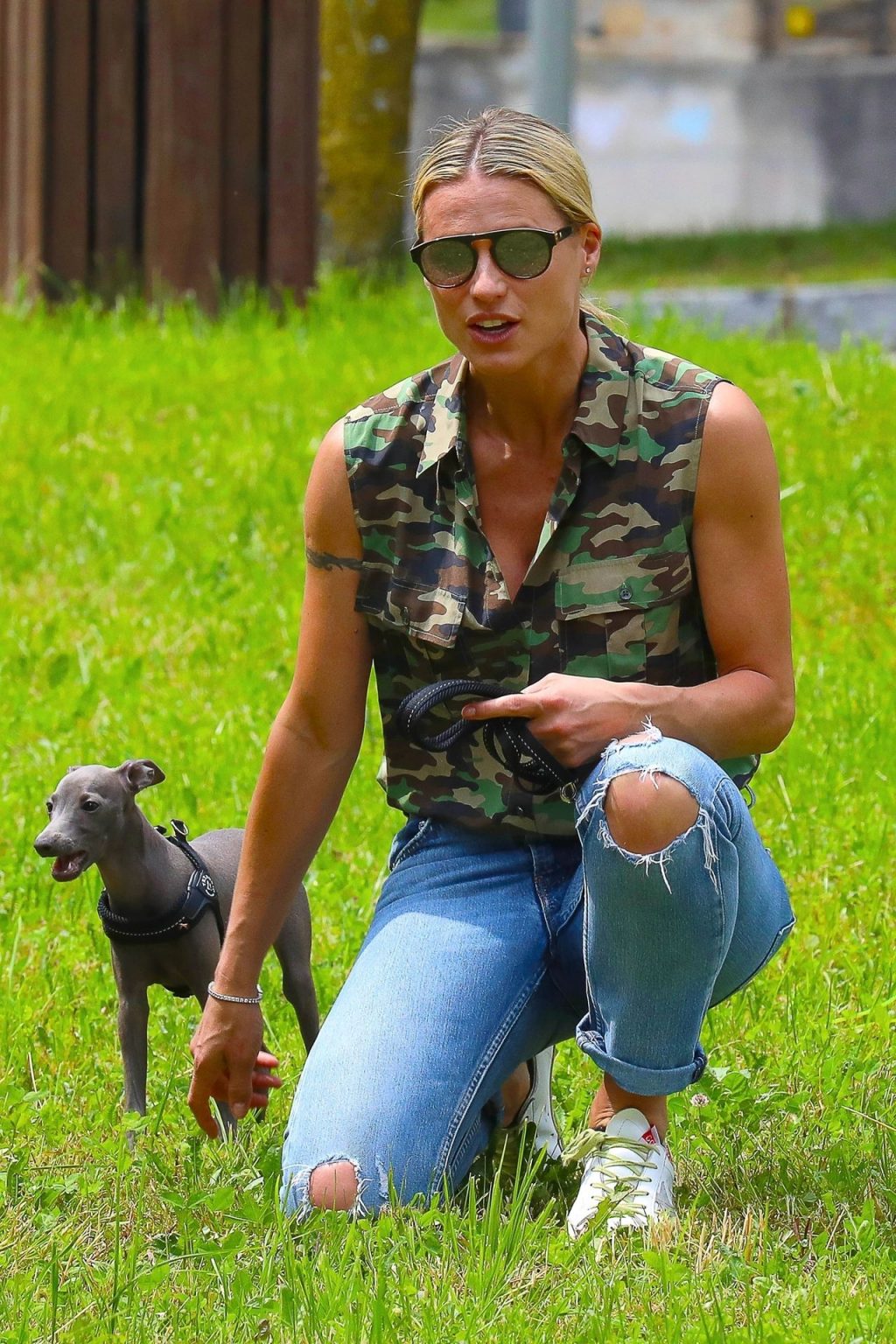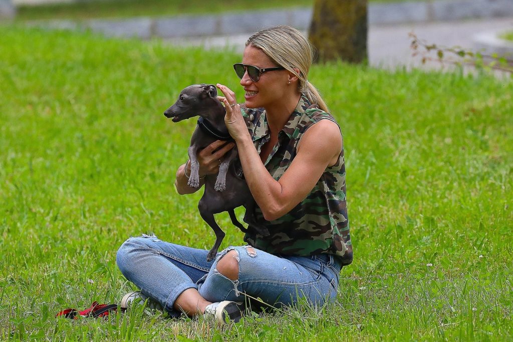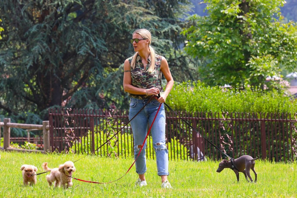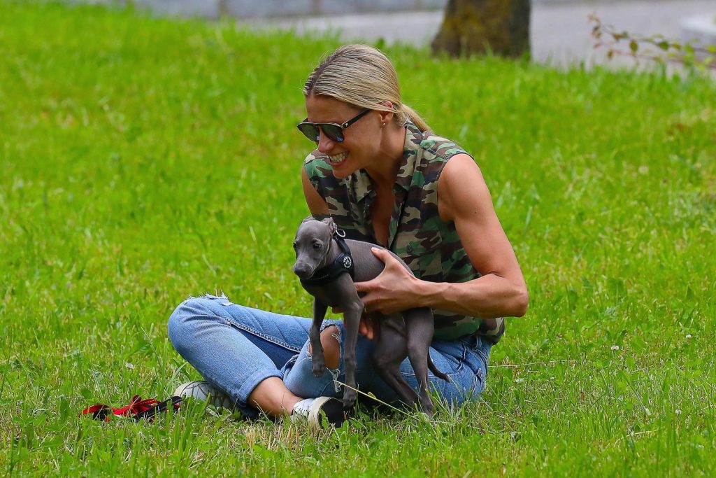 Sexy Michelle Hunziker juega con sus perros en el parque (16 fotos)
