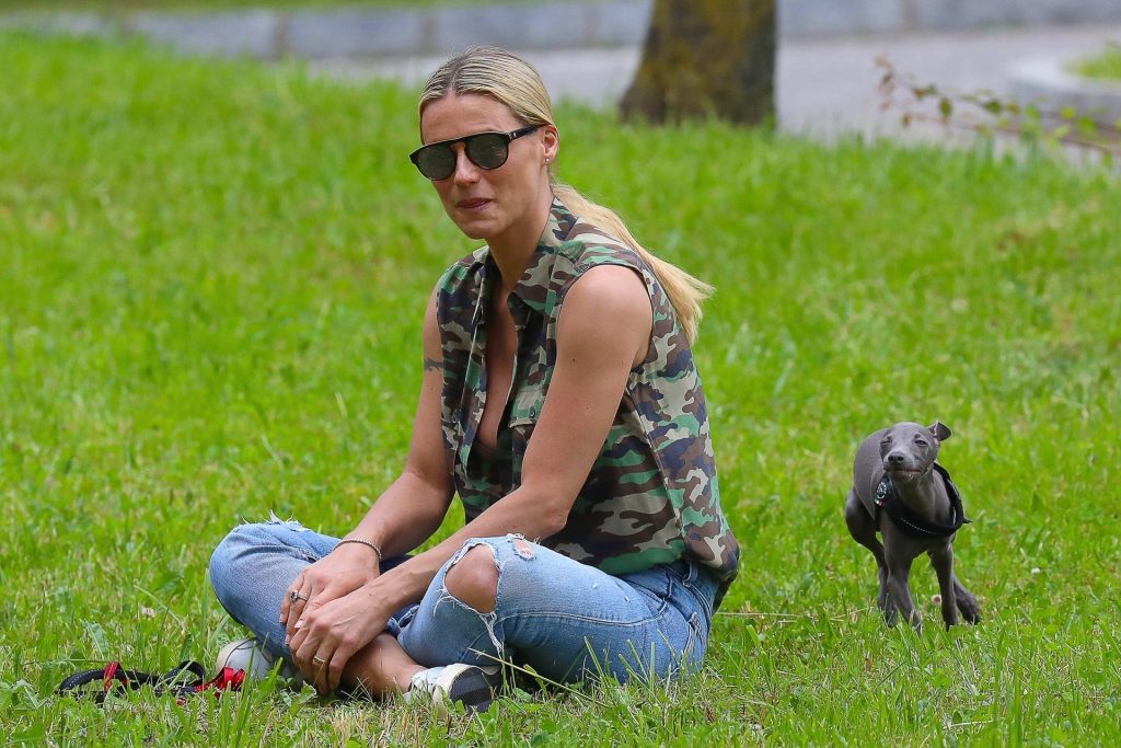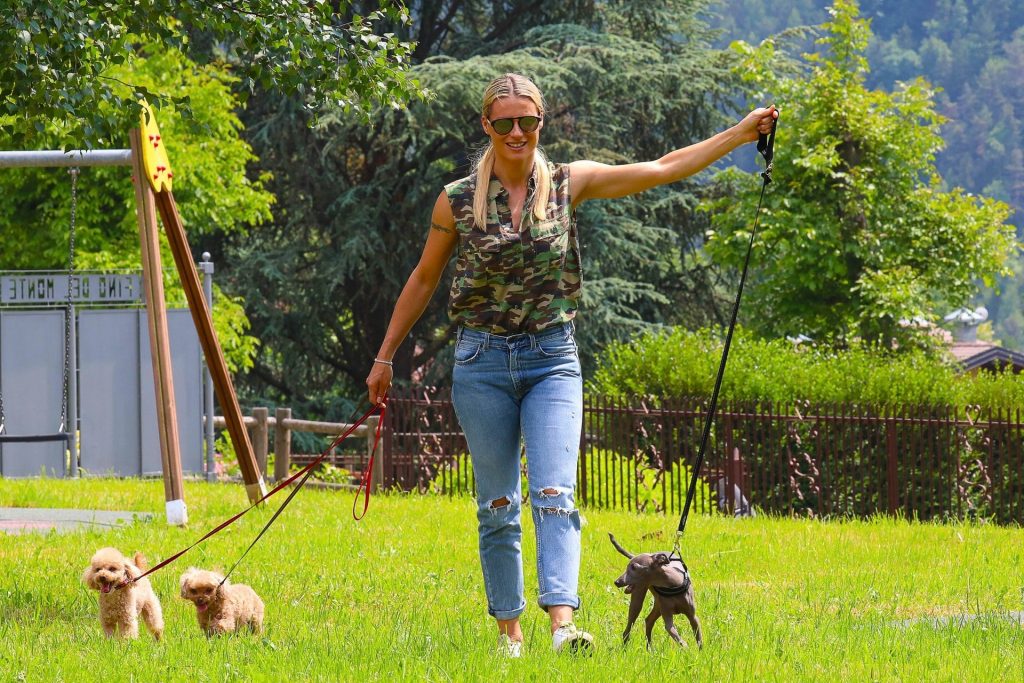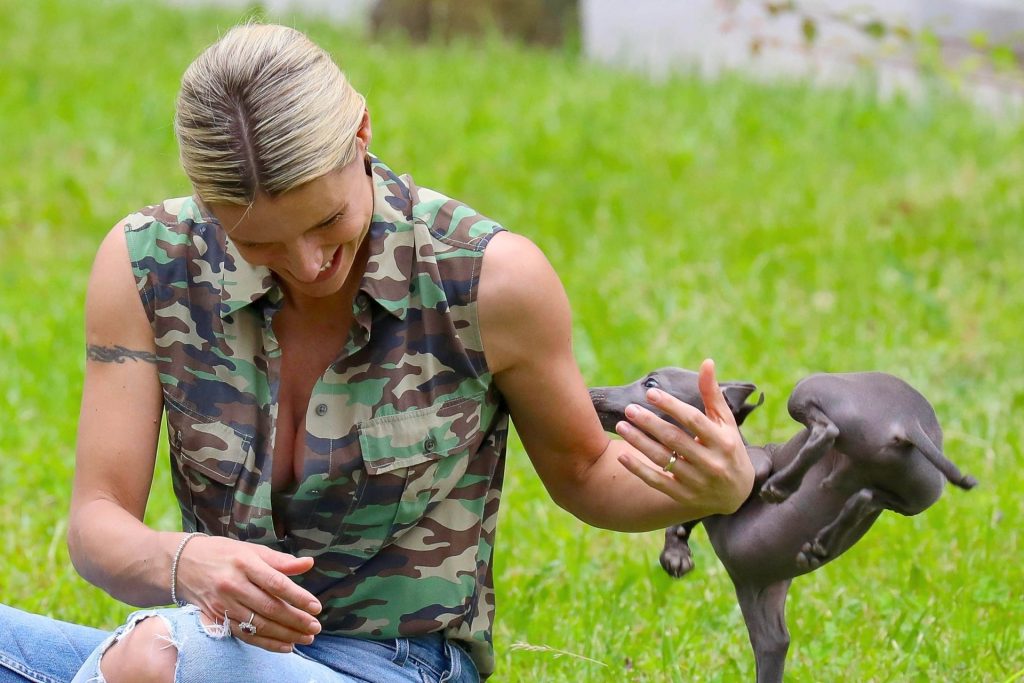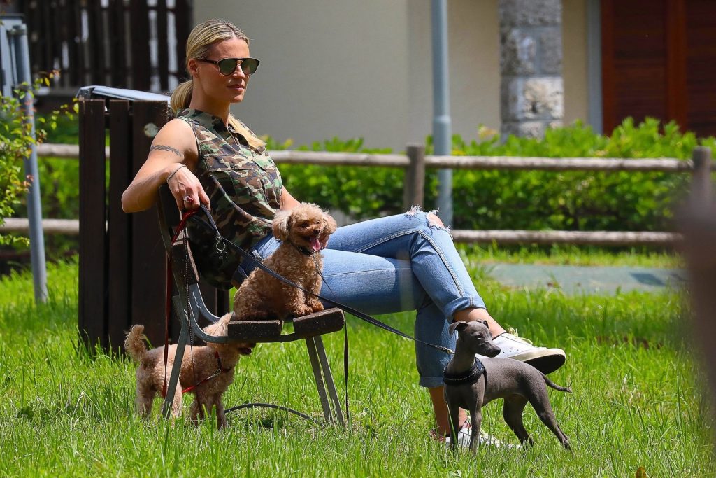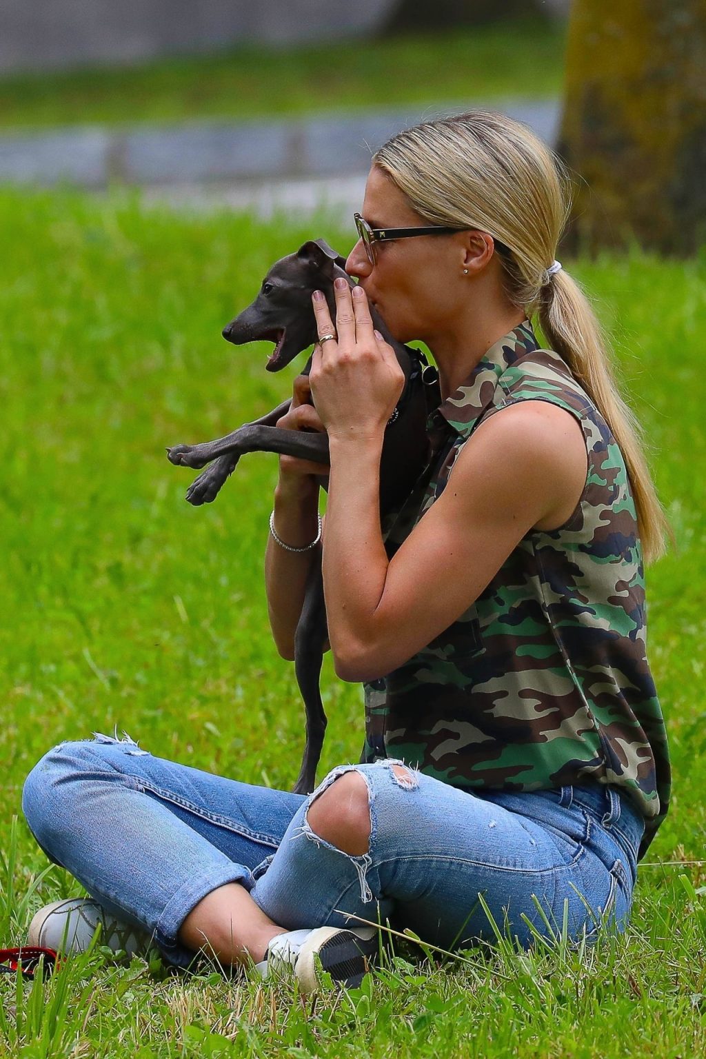 Sexy Michelle Hunziker juega con sus perros en el parque (16 fotos)