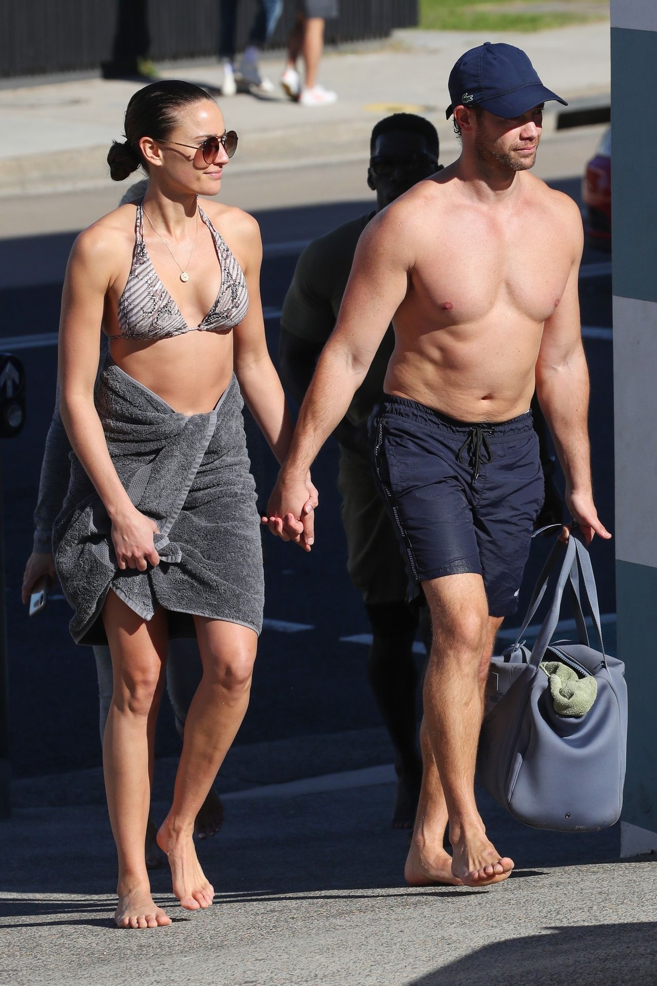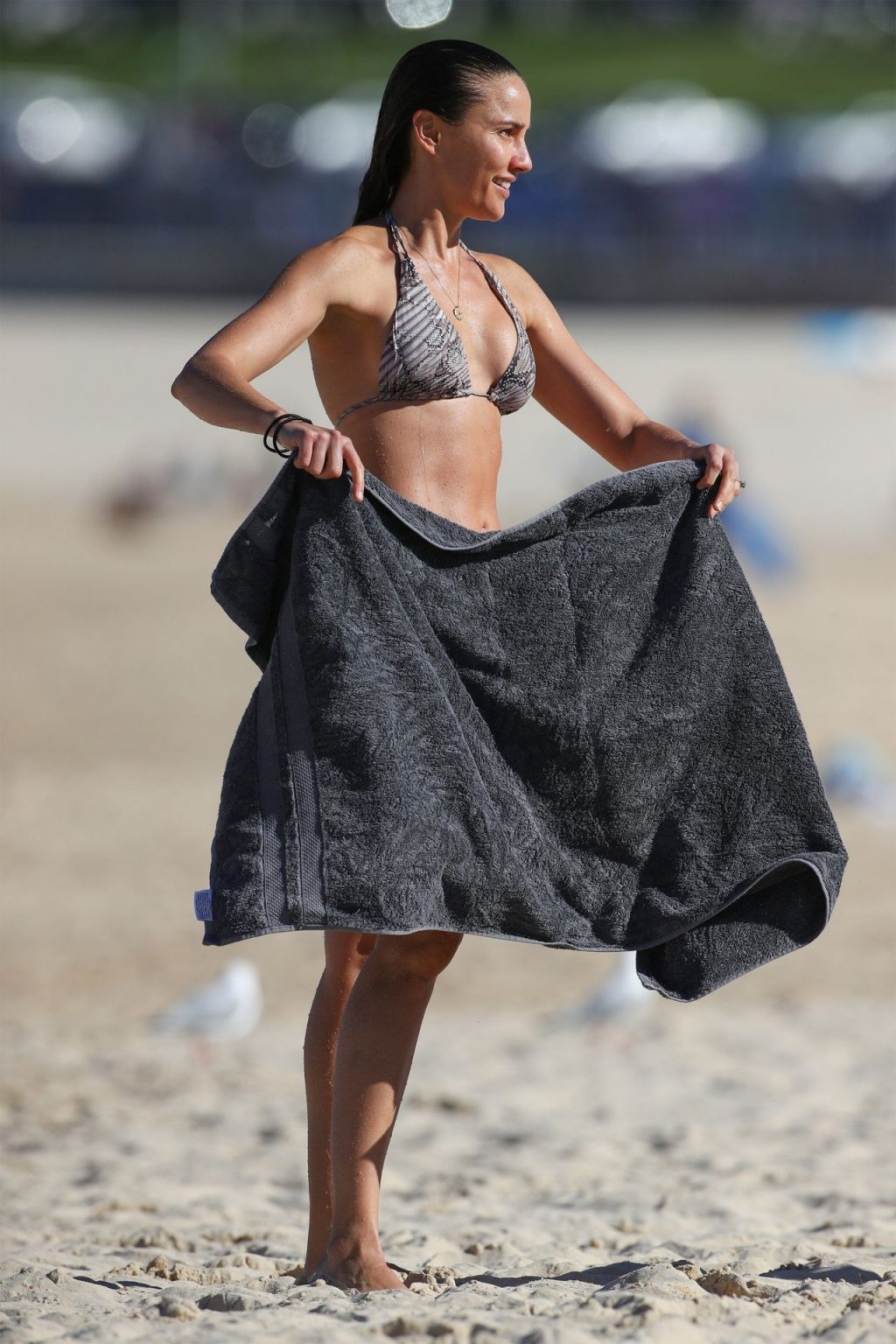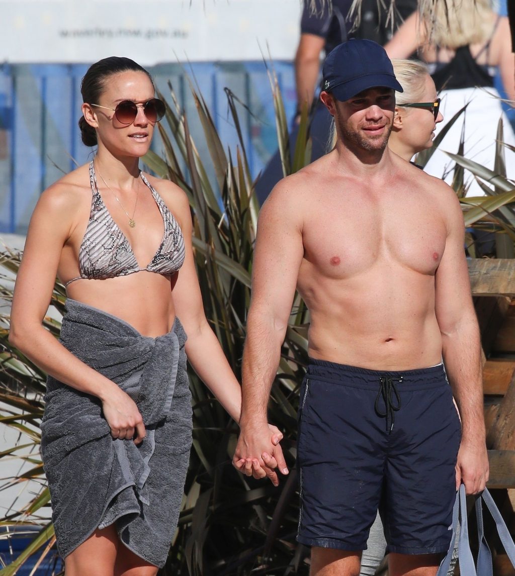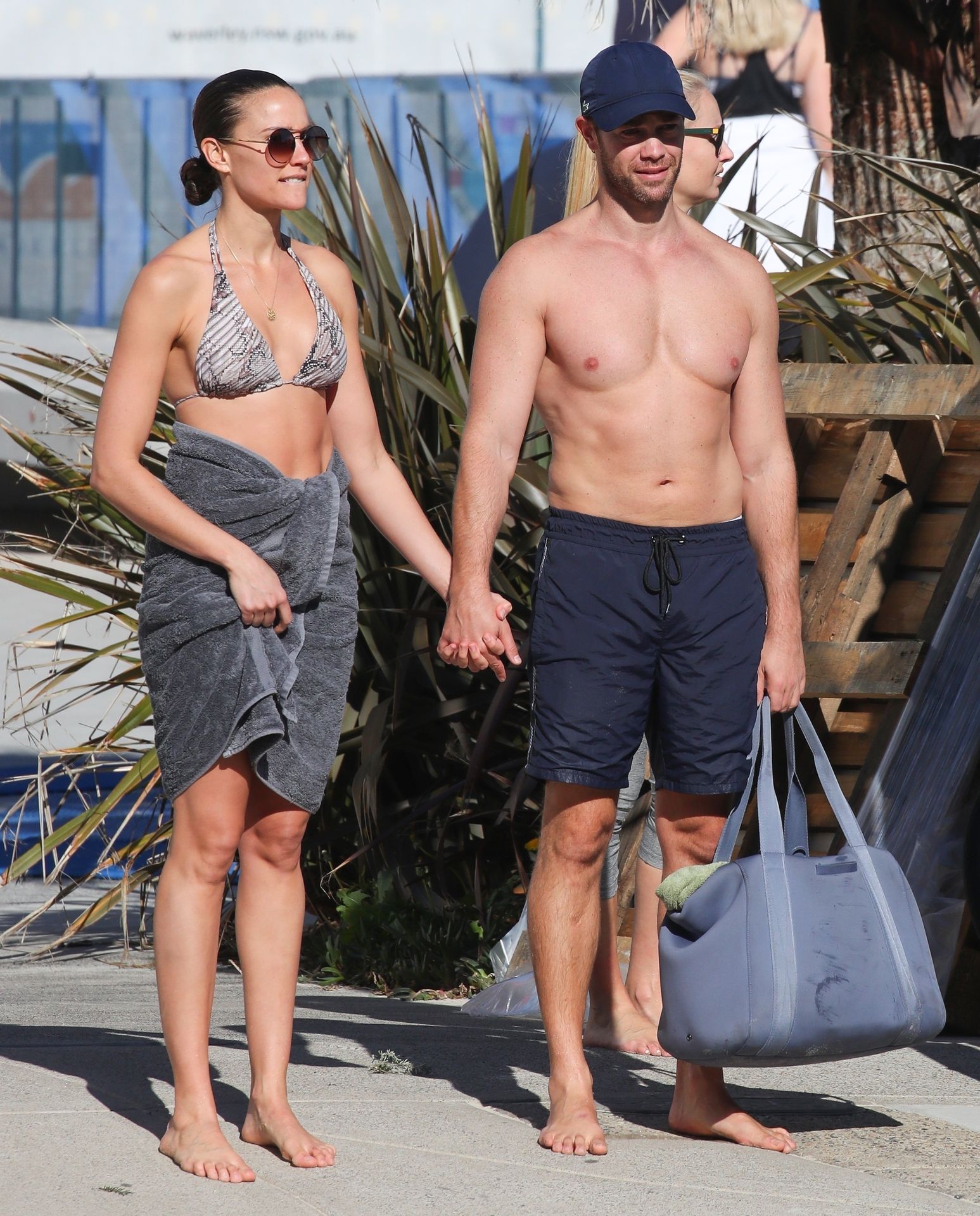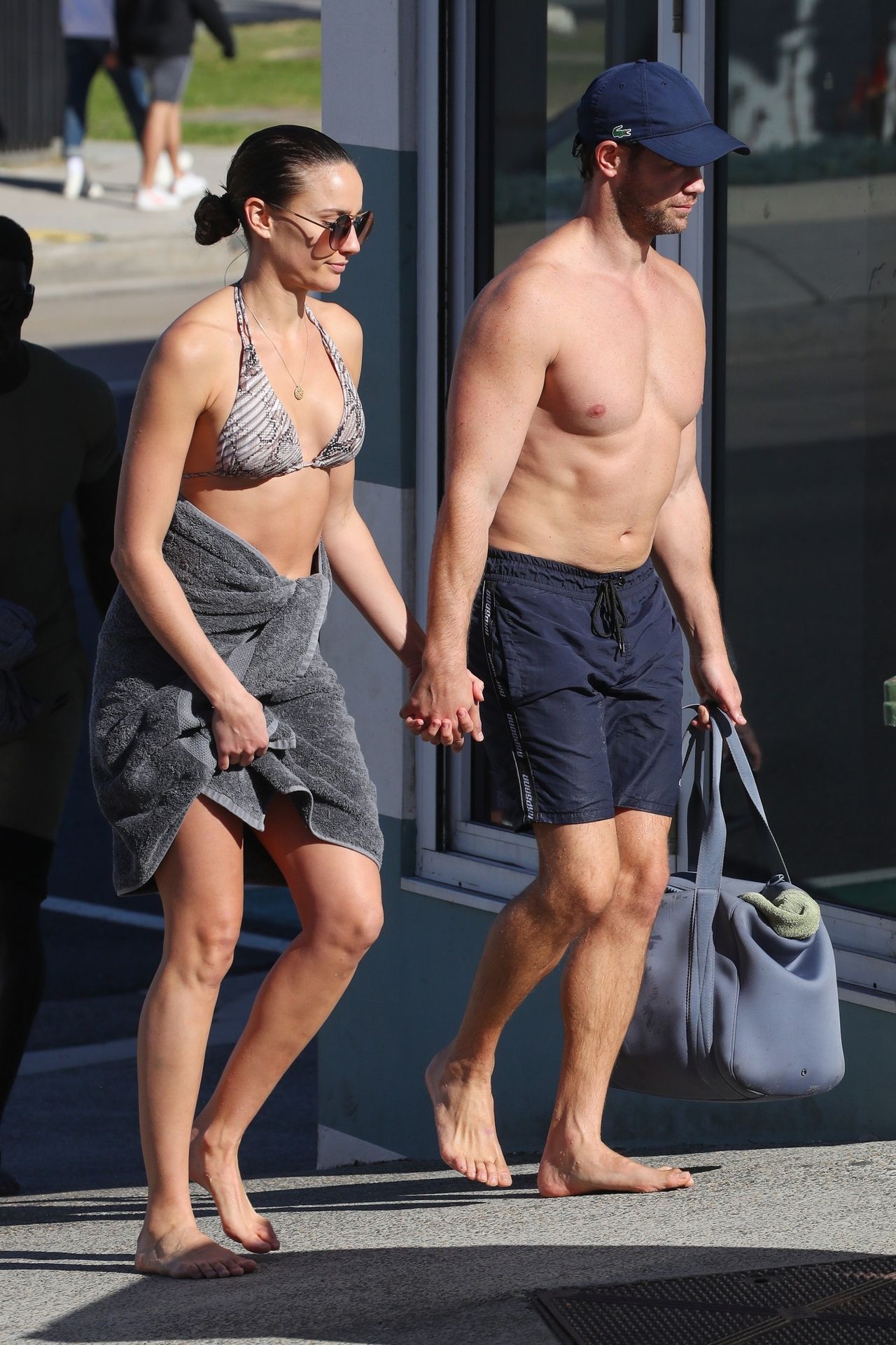 Modelo Rachael Finch es fotografiada en la playa de Bondi con su esposo Michael Minizer, 16/06/2020.