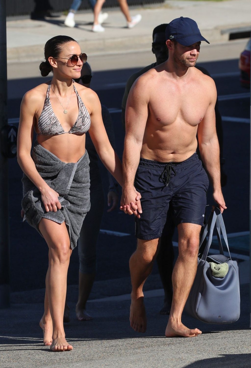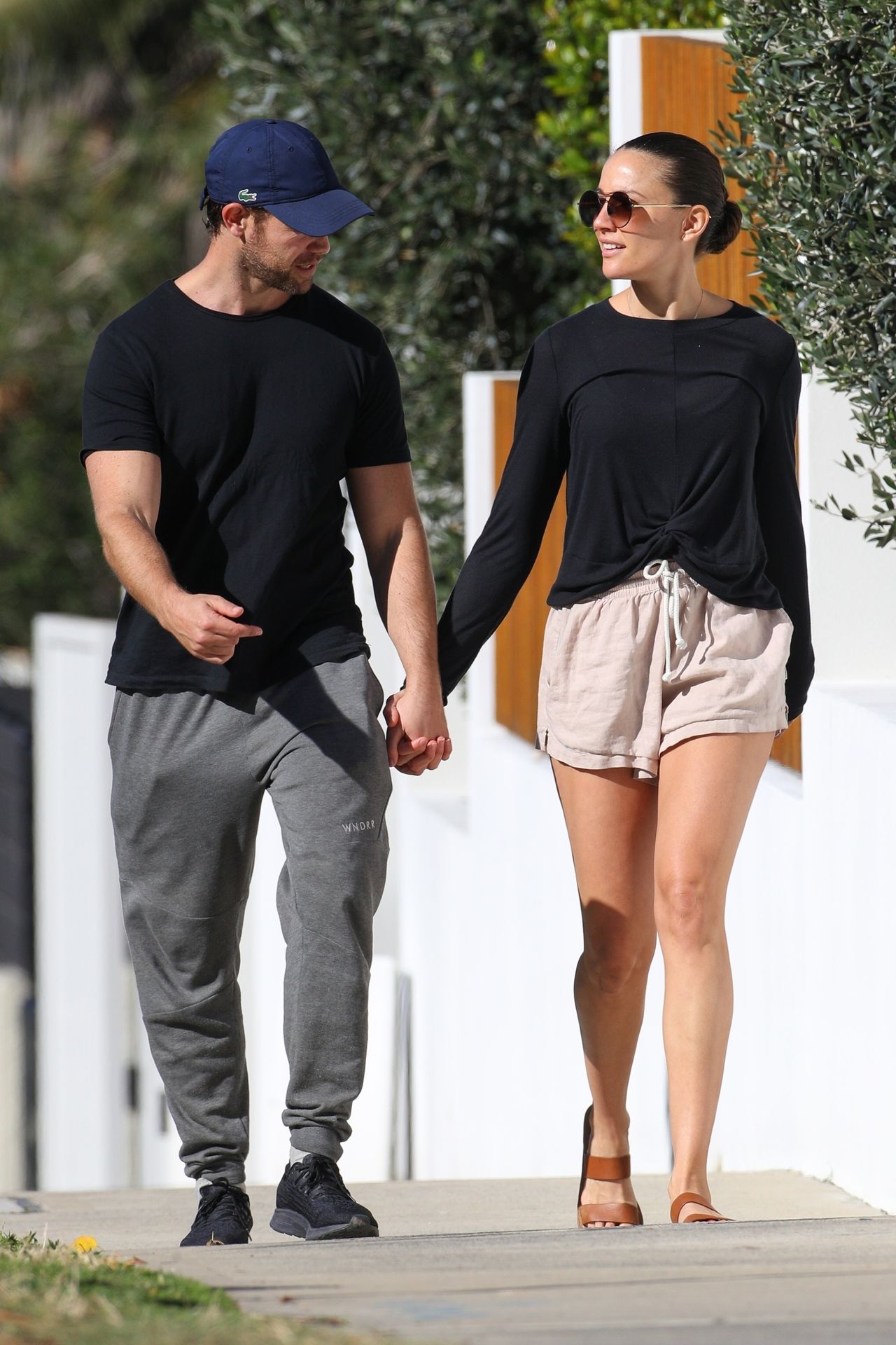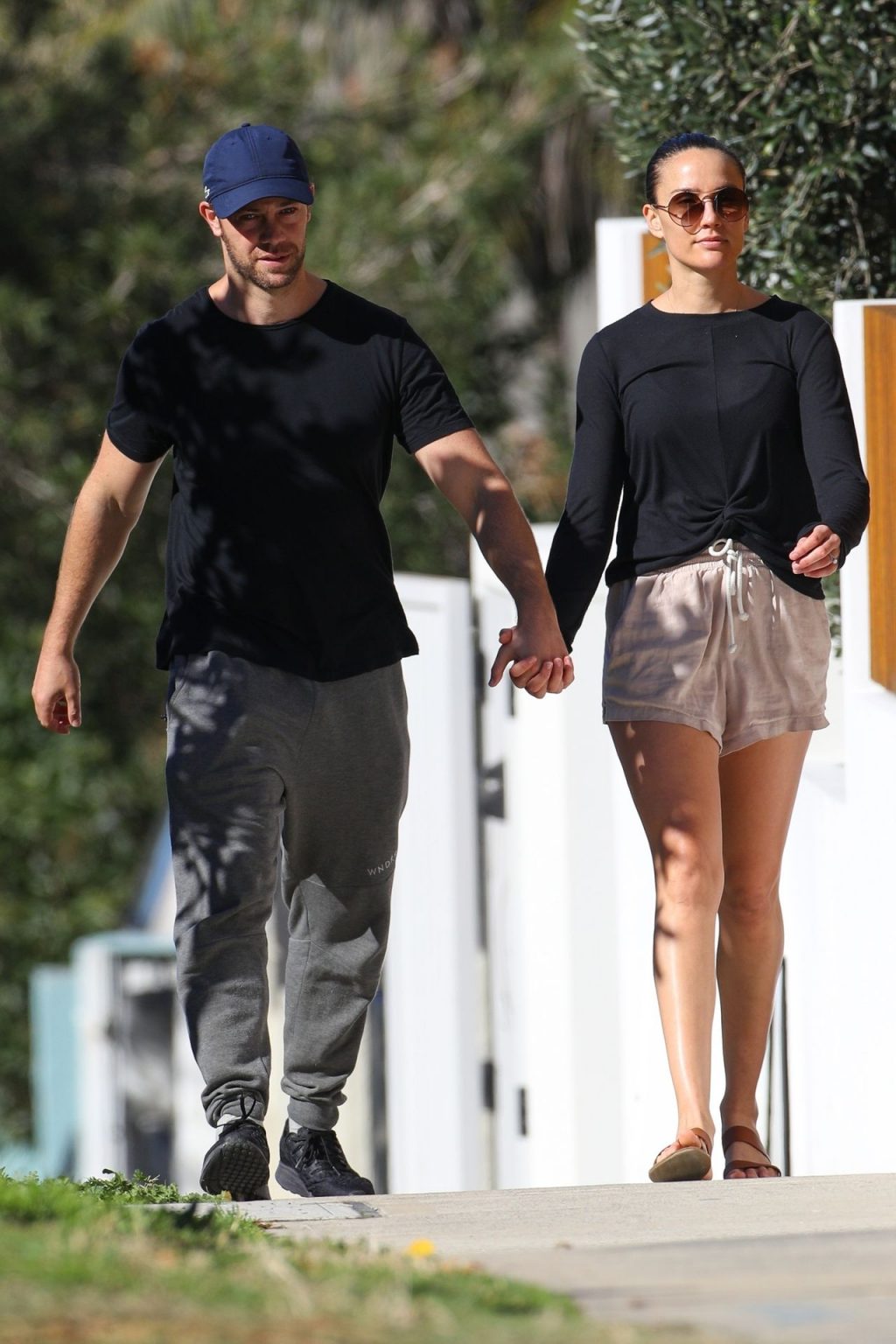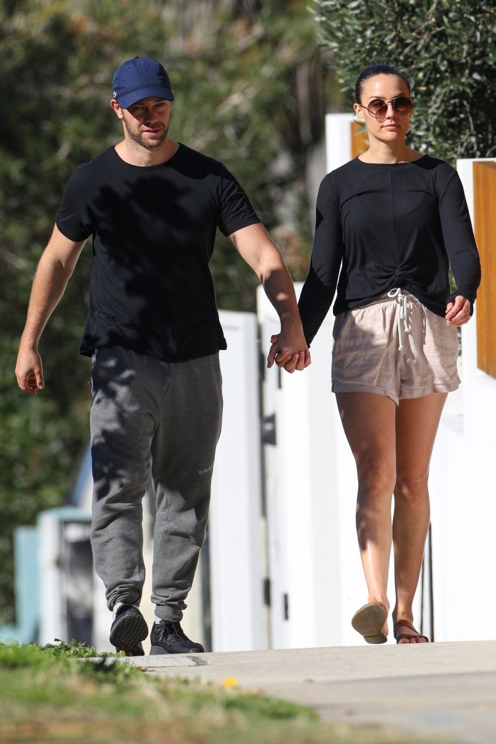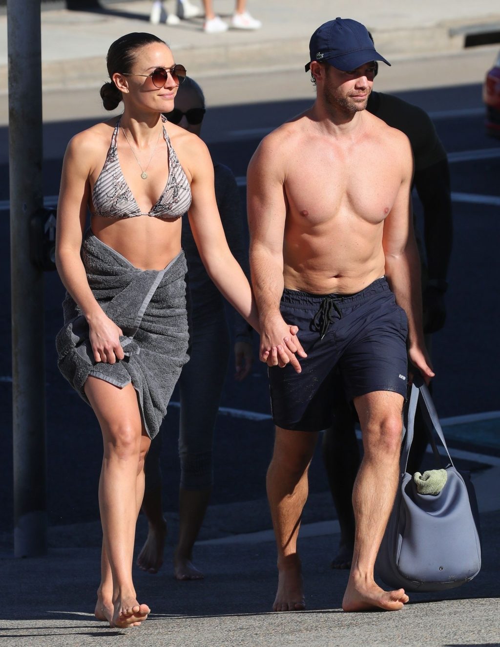 Modelo Rachael Finch es fotografiada en la playa de Bondi con su esposo Michael Minizer, 16/06/2020.