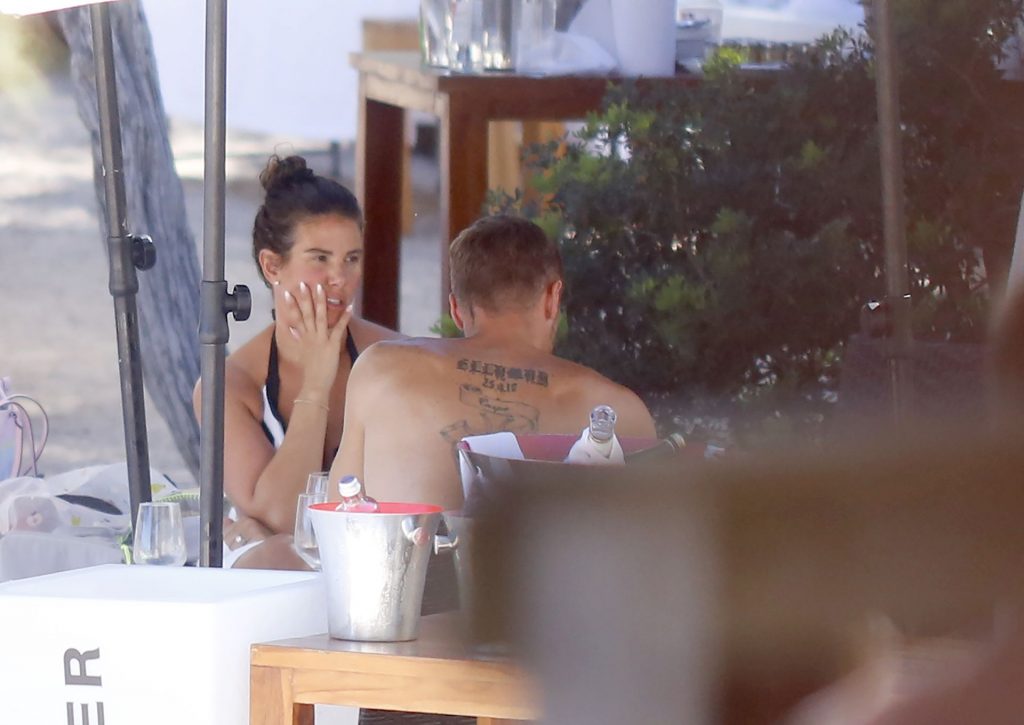 Rebekah está actualmente inmersa en una batalla legal con la también WAG y esposa del excompañero de equipo internacional de Inglaterra de su marido Jamie, Wayne Rooney, después de que Coleen acusara a Rebekah de filtrar historias sobre ella a la prensa. La pareja también fue vista disfrutando de un almuerzo con sus hijos en el Cala Bassa Club.