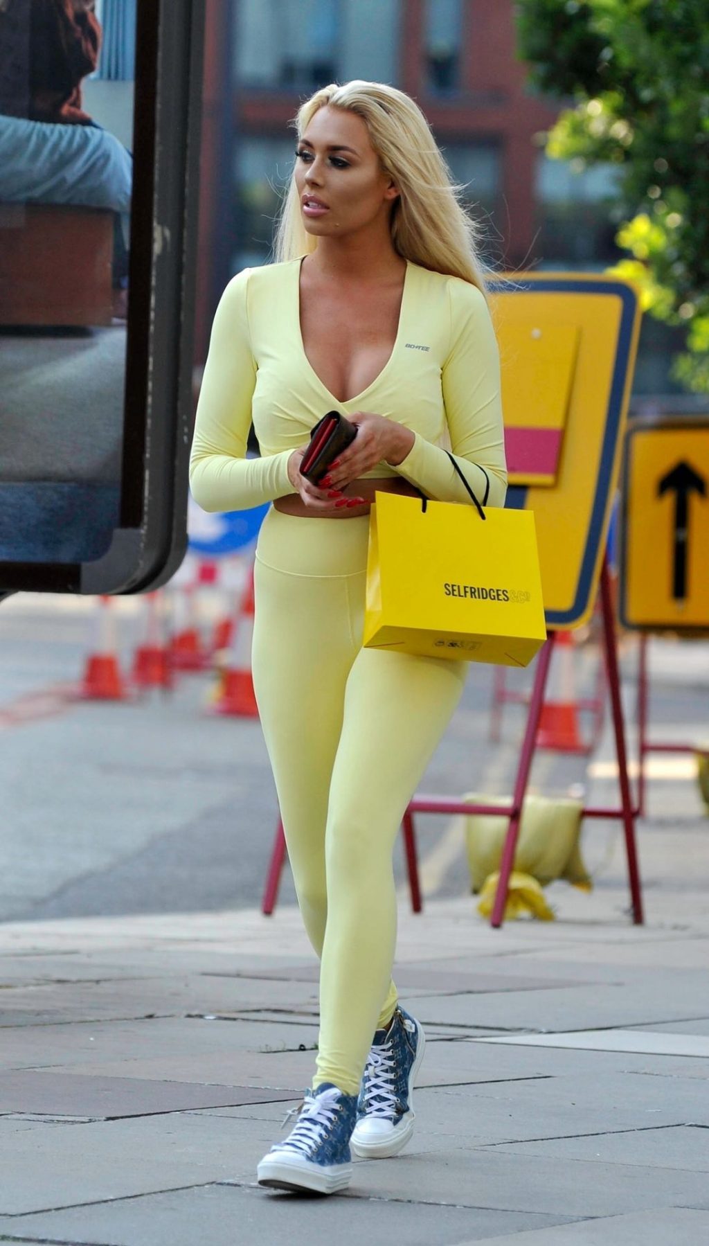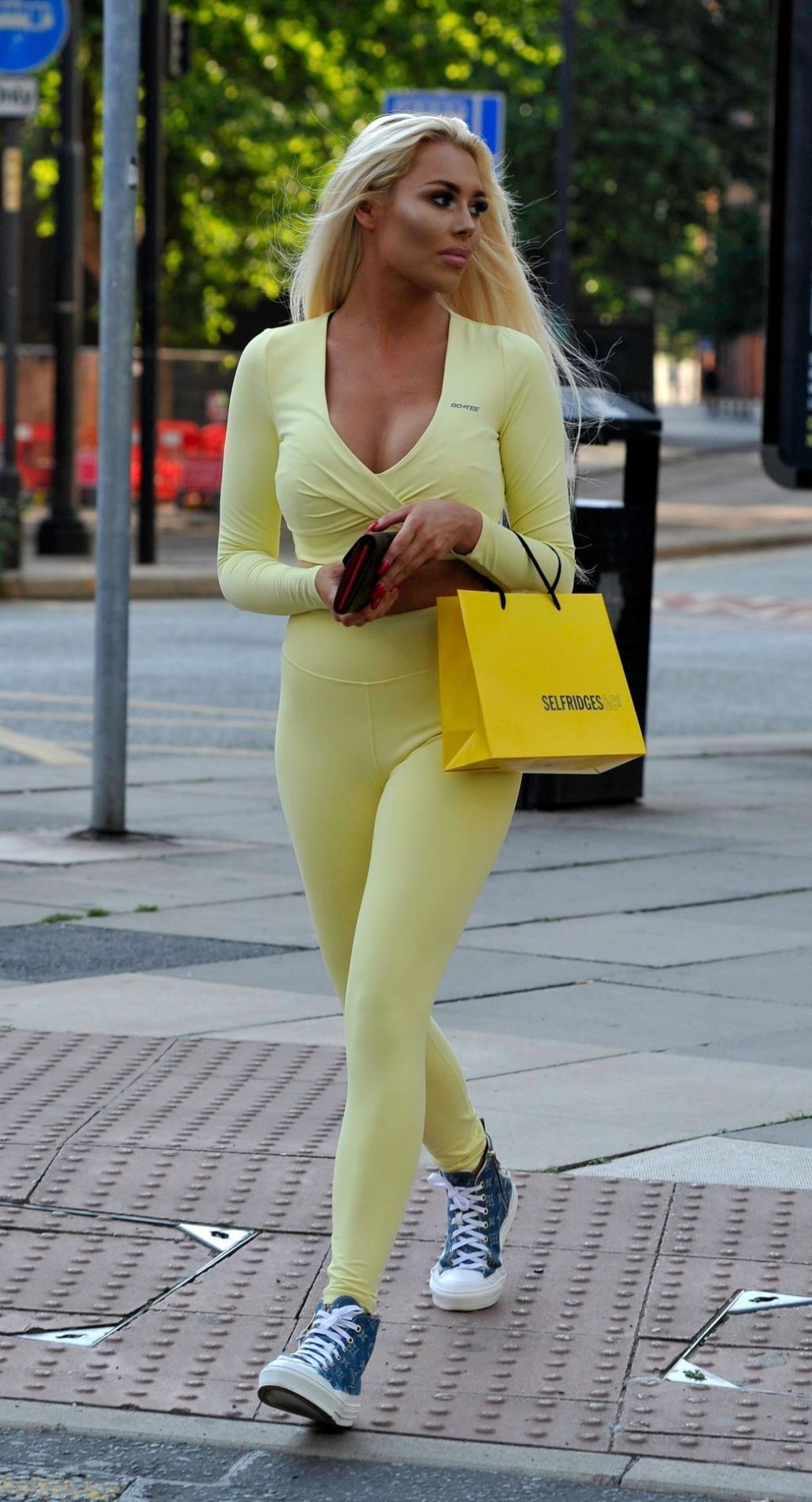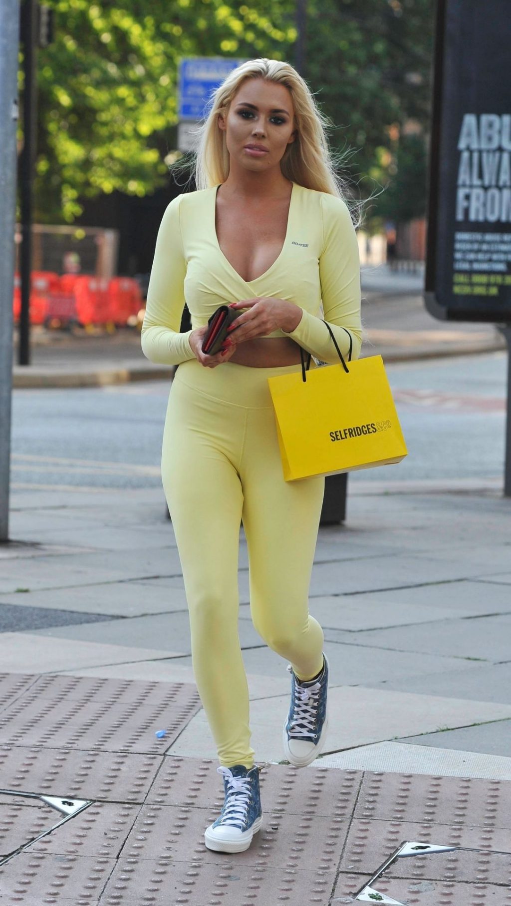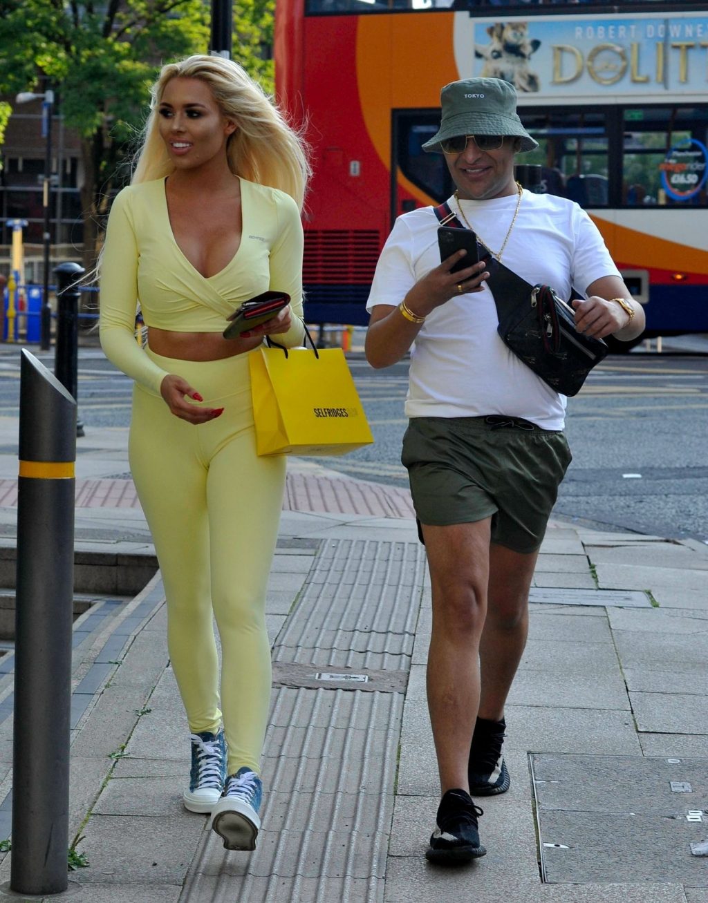 Love Island’s Shannen Reilly McGrath es vista paseando por el centro de la ciudad de Manchester, mientras luce un conjunto amarillo brillante y escotado mientras compra en Selfridges, 24/06/2020.
