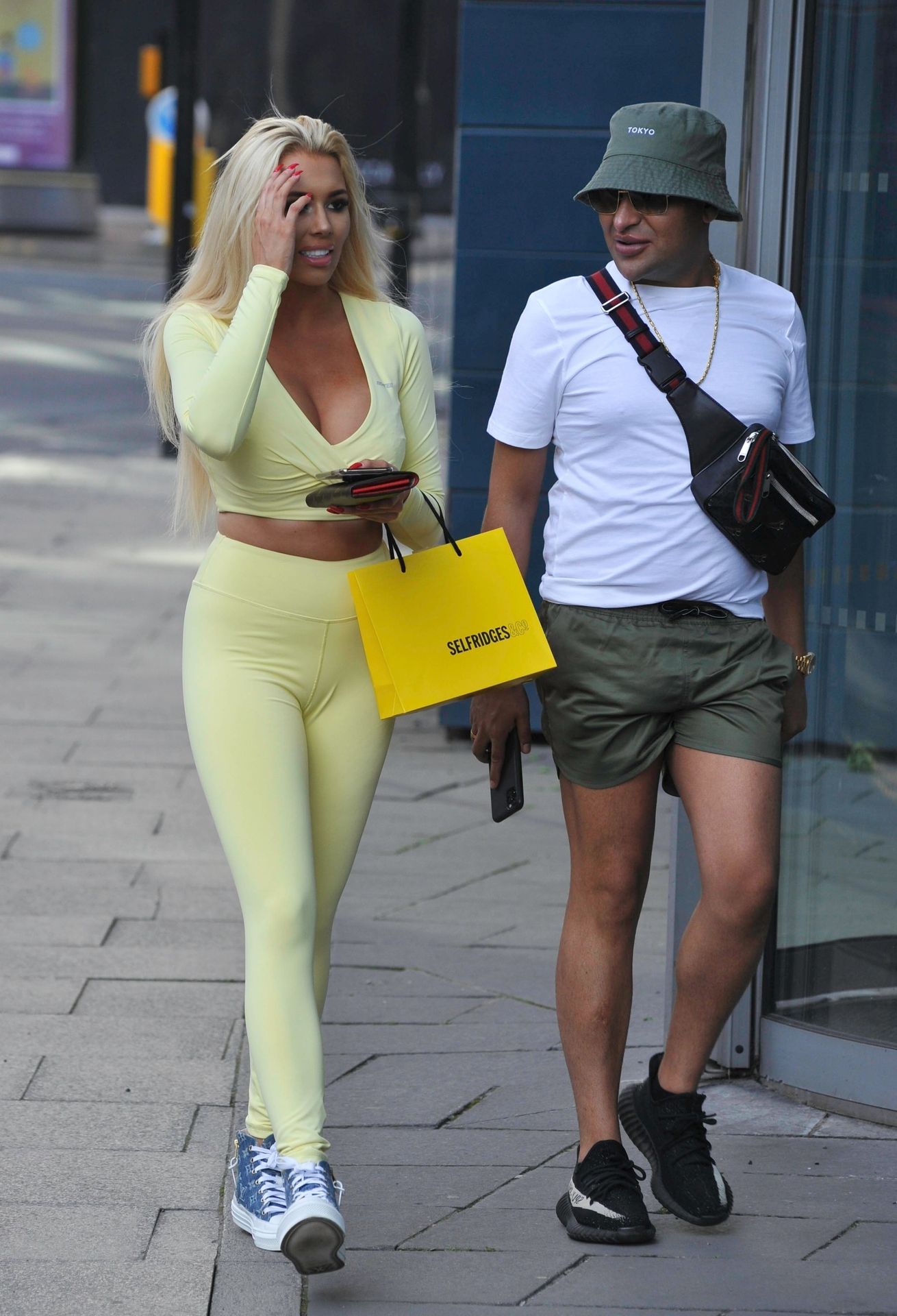 Love Island’s Shannen Reilly McGrath es vista paseando por el centro de la ciudad de Manchester, mientras luce un conjunto amarillo brillante y escotado mientras compra en Selfridges, 24/06/2020.
