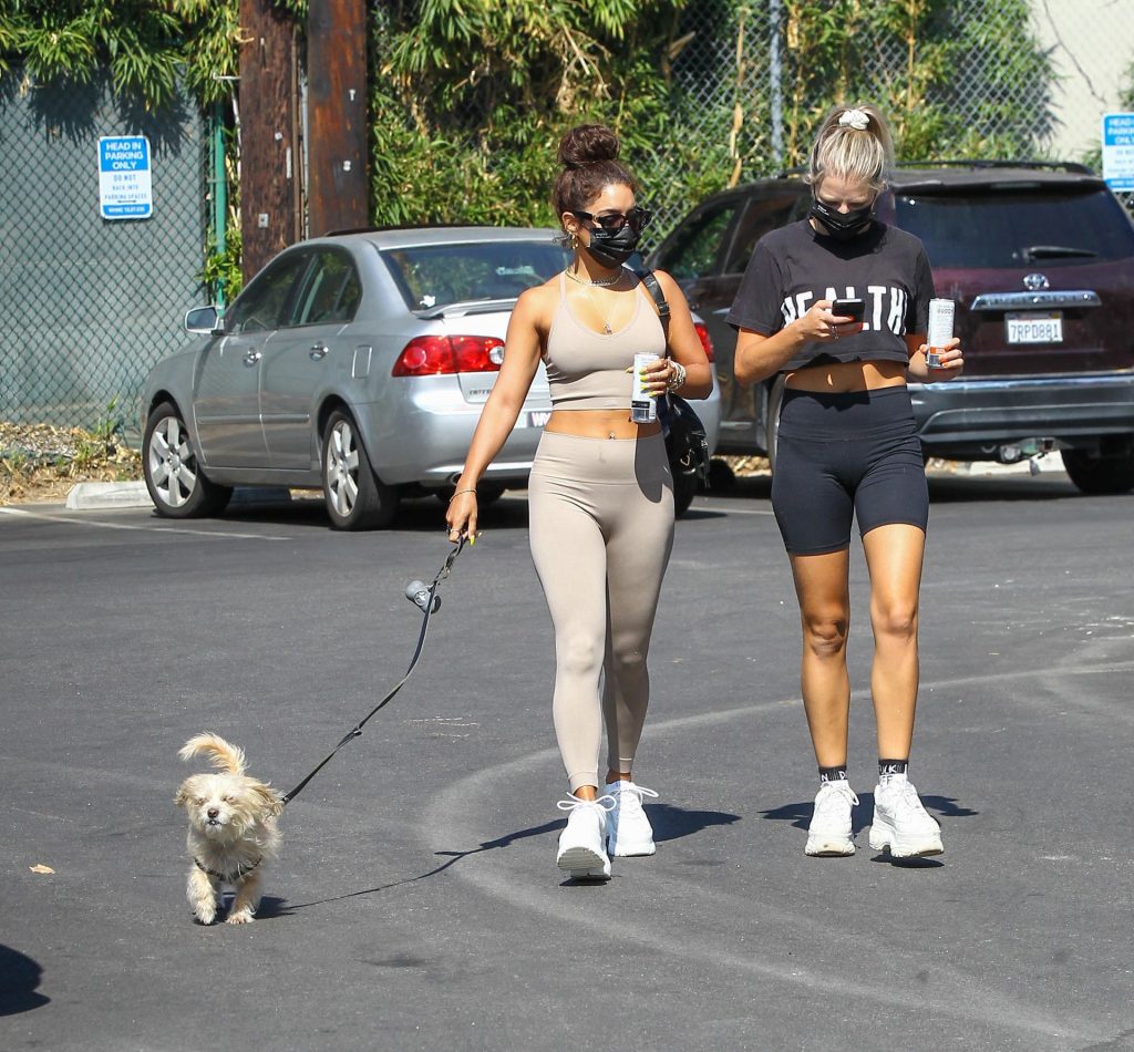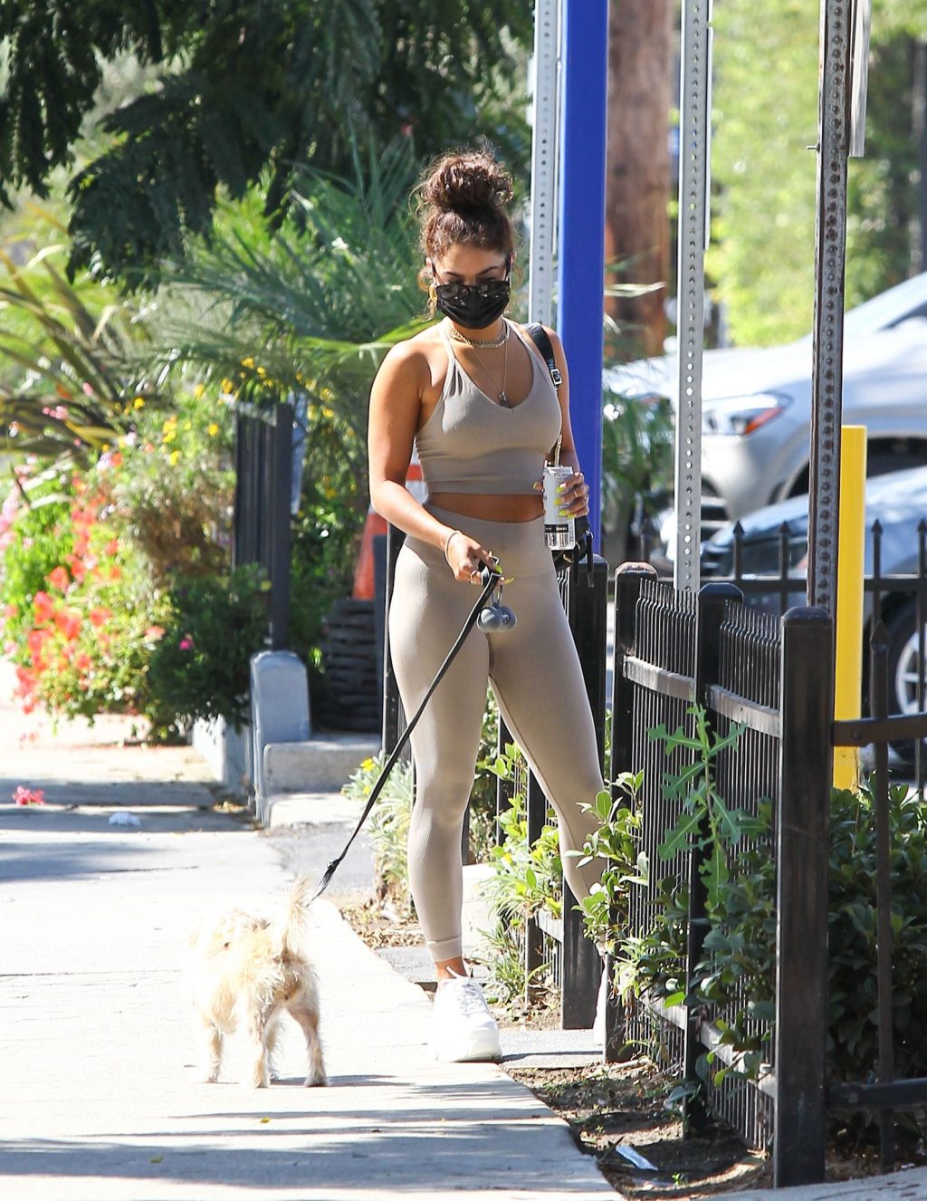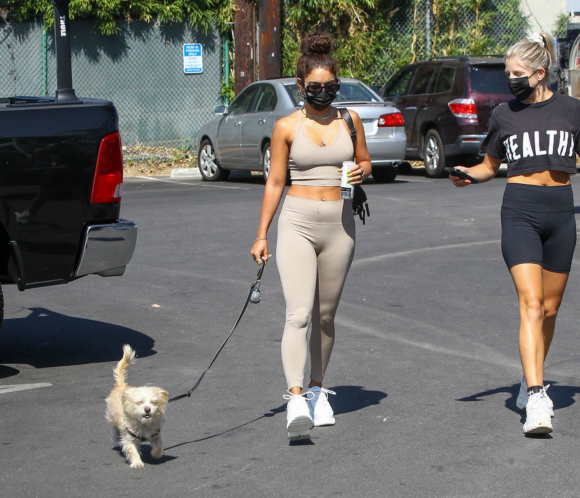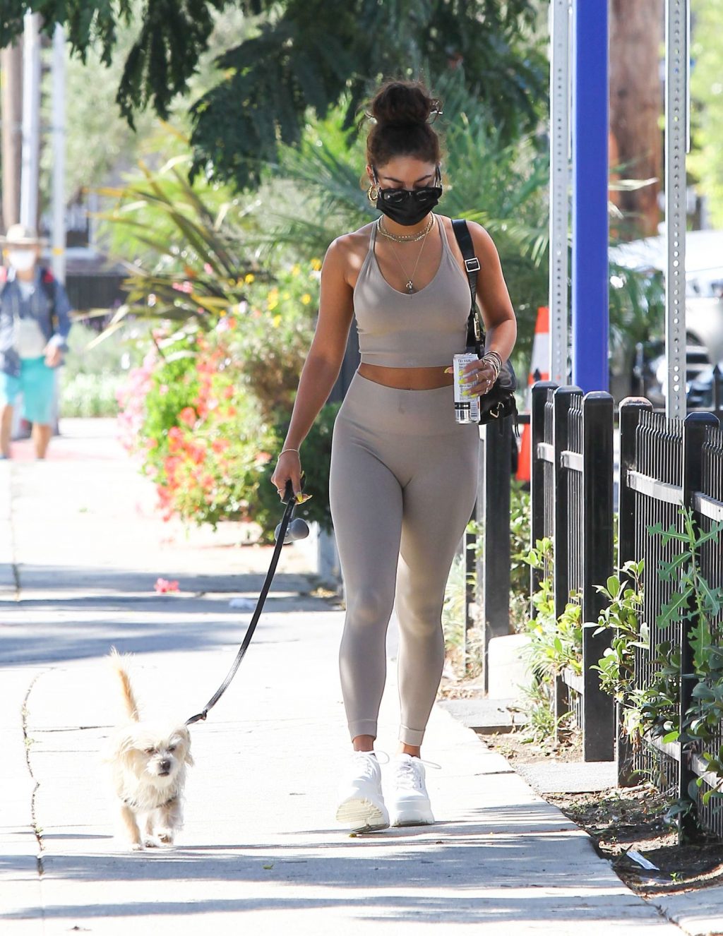 La estrella de The Fappening Vanessa Hudgens fue vista saliendo de un entrenamiento con su cachorro, 26/08/2020.