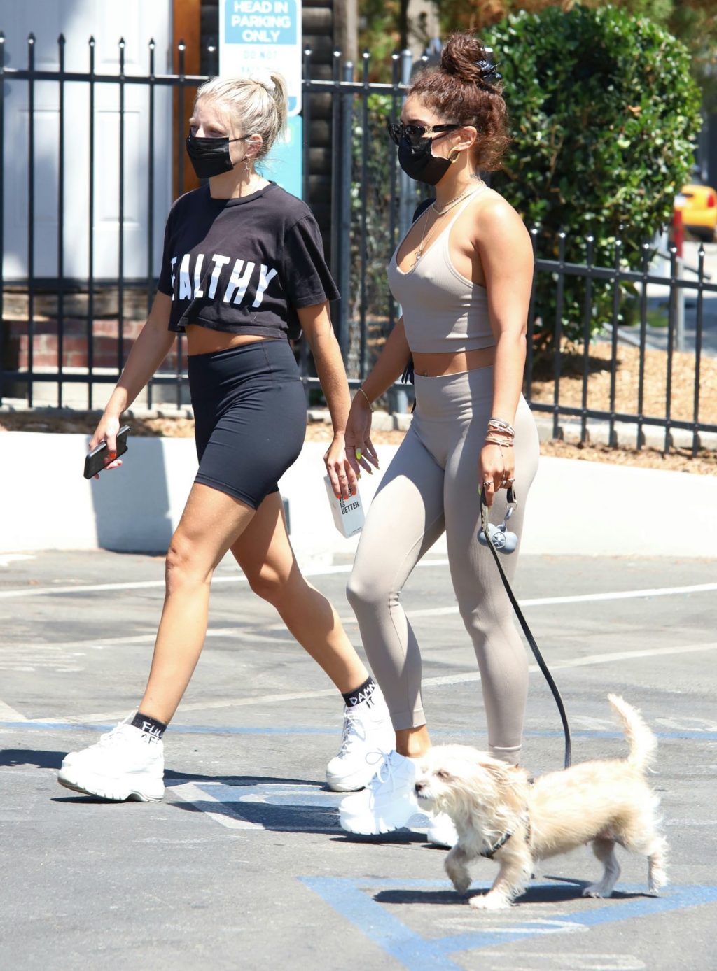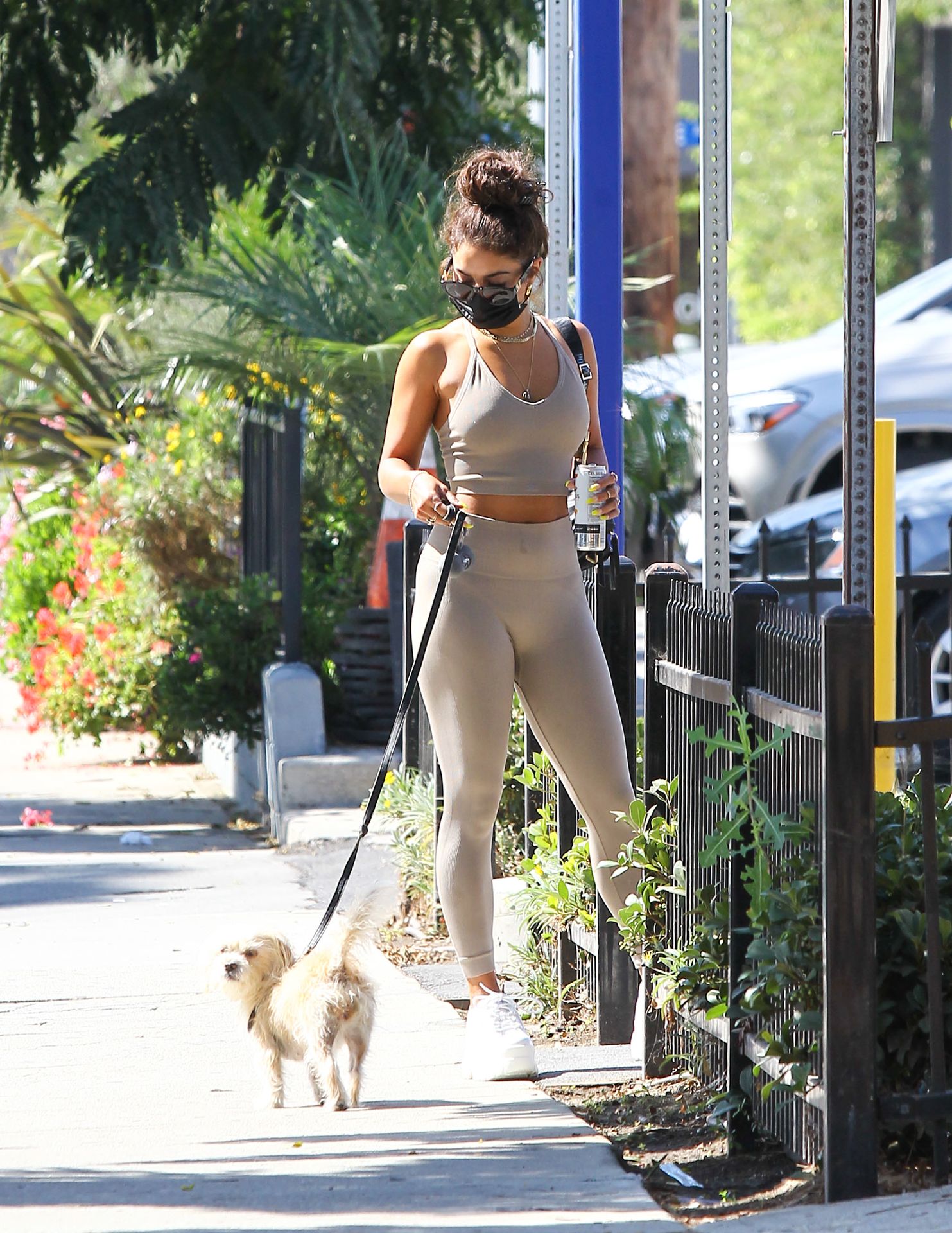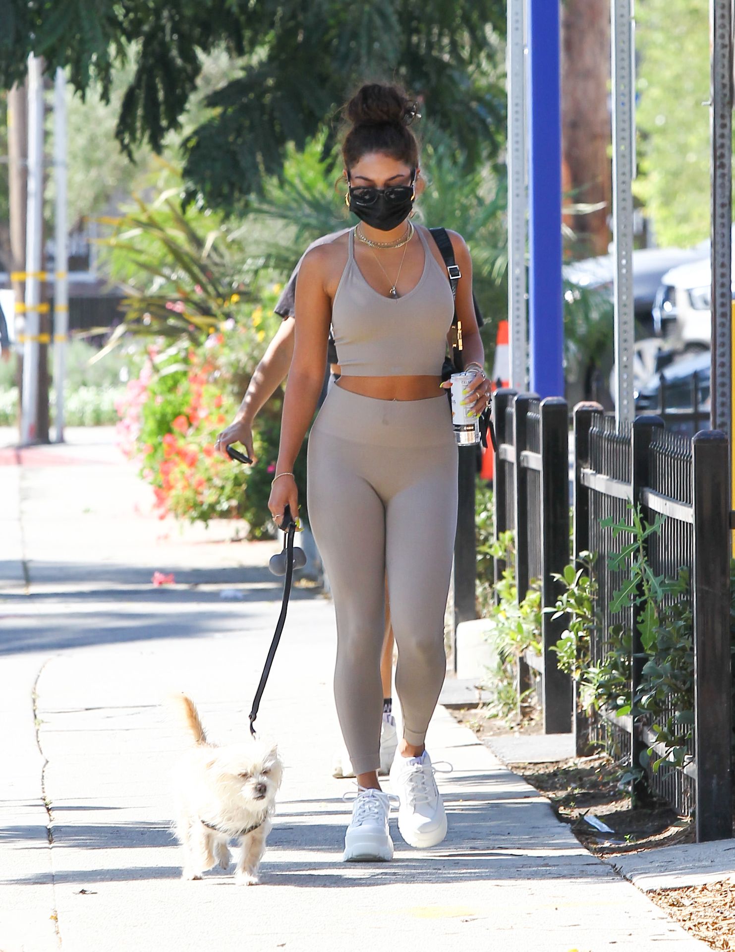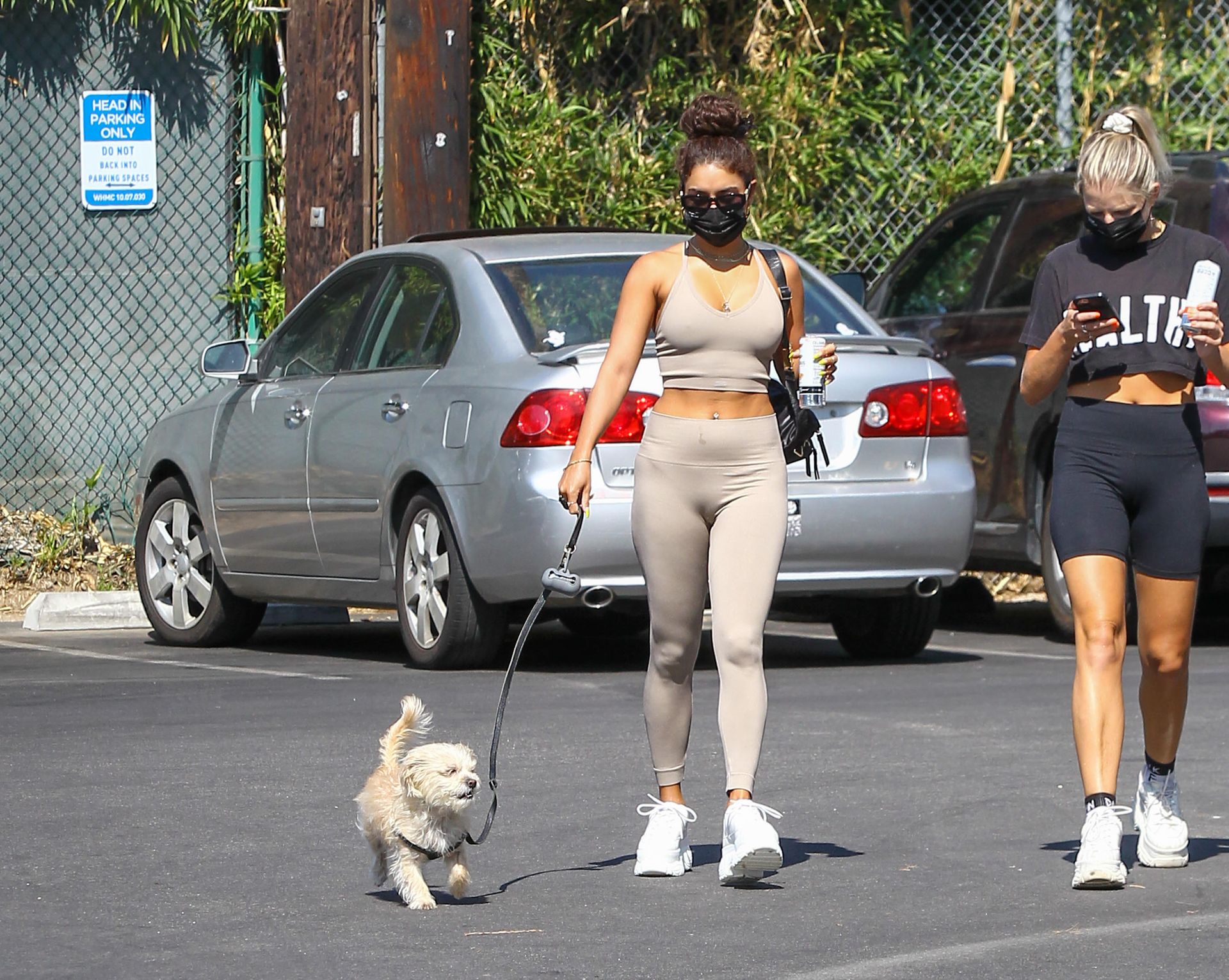 La estrella de The Fappening Vanessa Hudgens fue vista saliendo de un entrenamiento con su cachorro, 26/08/2020.