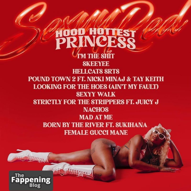 Echa un vistazo a la atrevida colección de fotos de Sexyy Red que muestra sus pechos desnudos, escote generoso sin sostén, atractivo trasero y figura curvilínea tatuada con ropa reveladora.