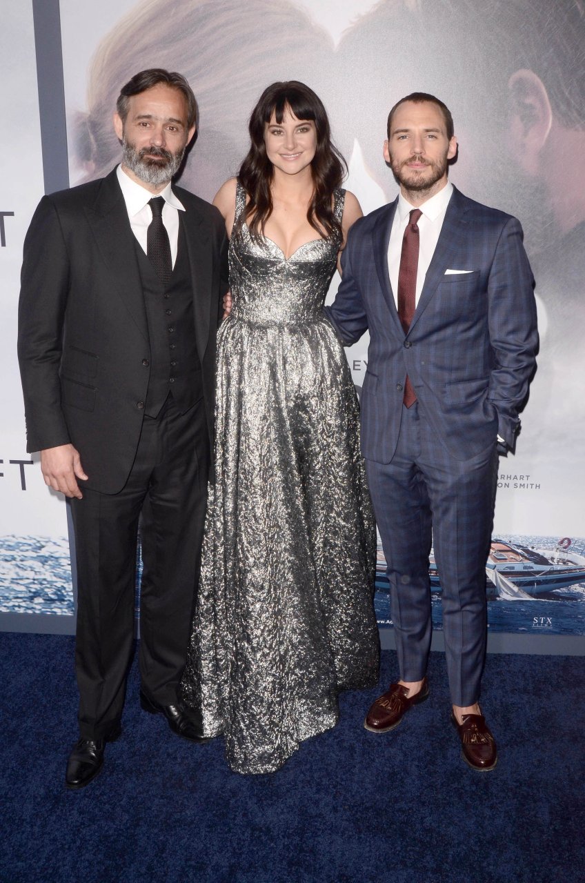 La pareja apareció en el estreno de “Adrift” en Los Ángeles, 24/05/2018. La actriz eligió un vestido plateado con escote, y su novio un elegante traje azul oscuro.