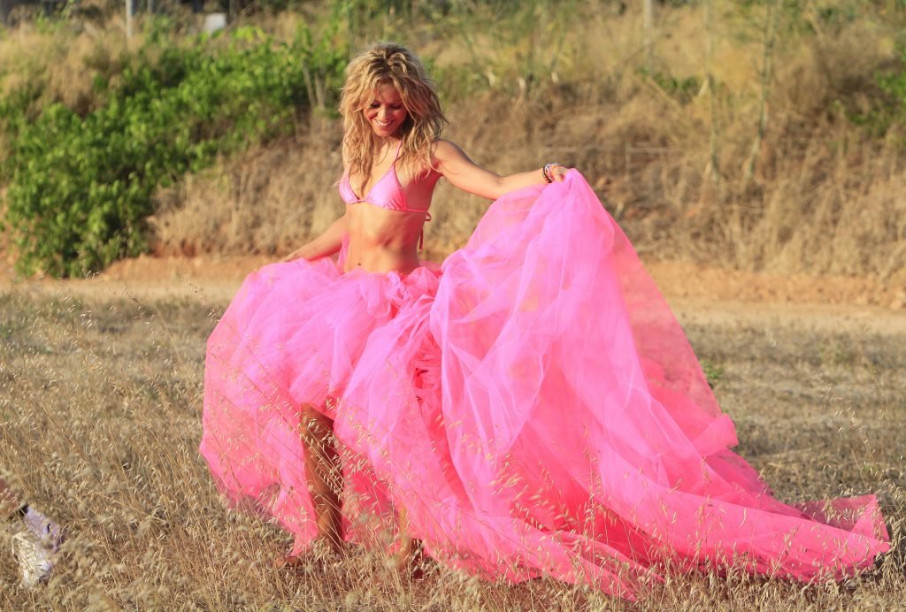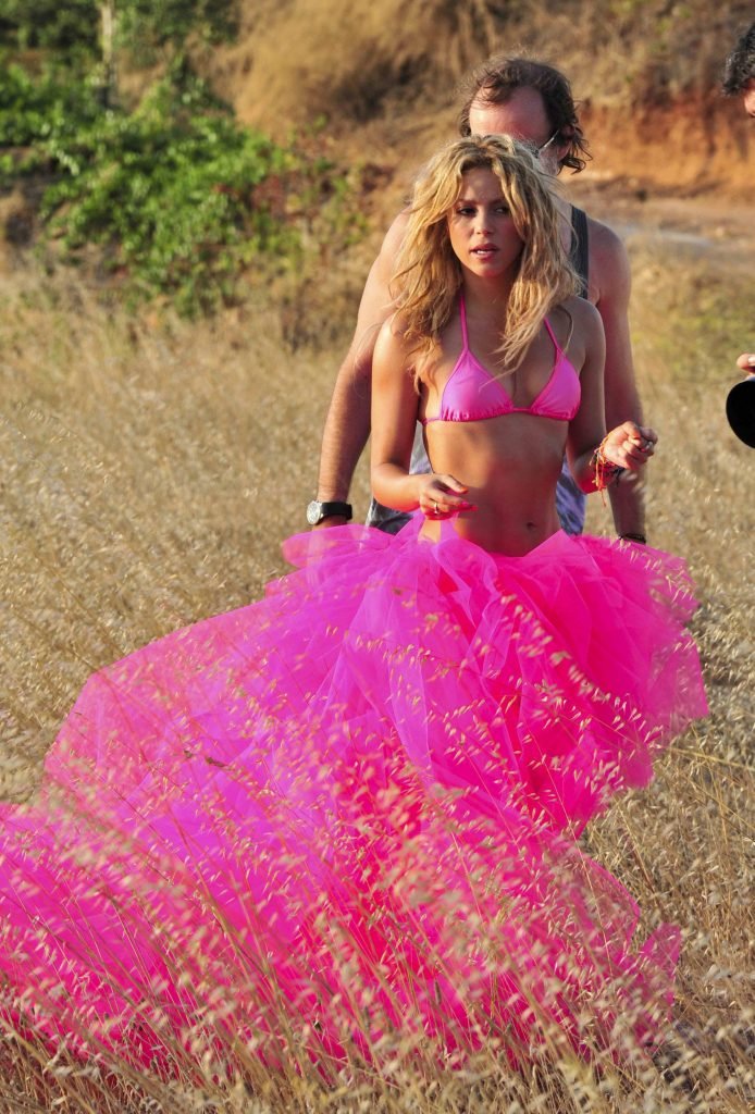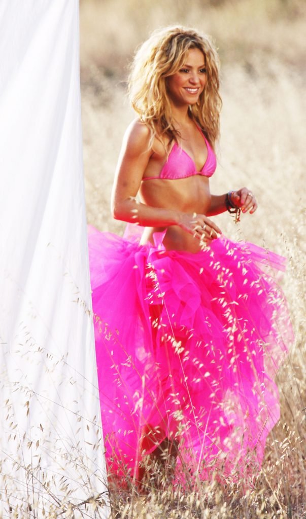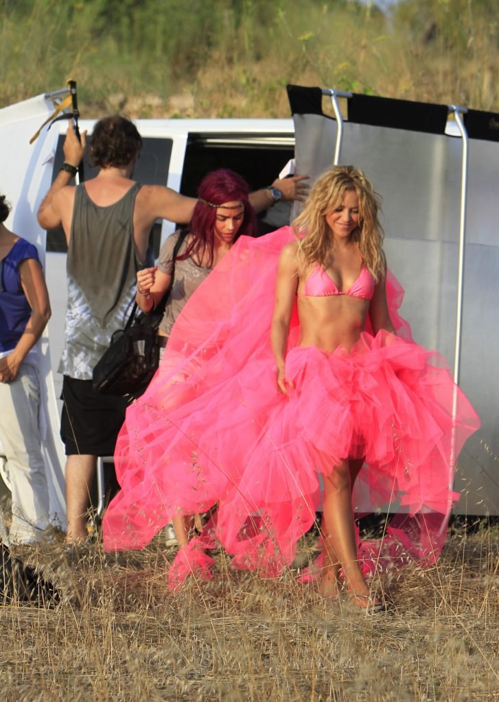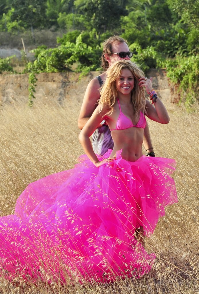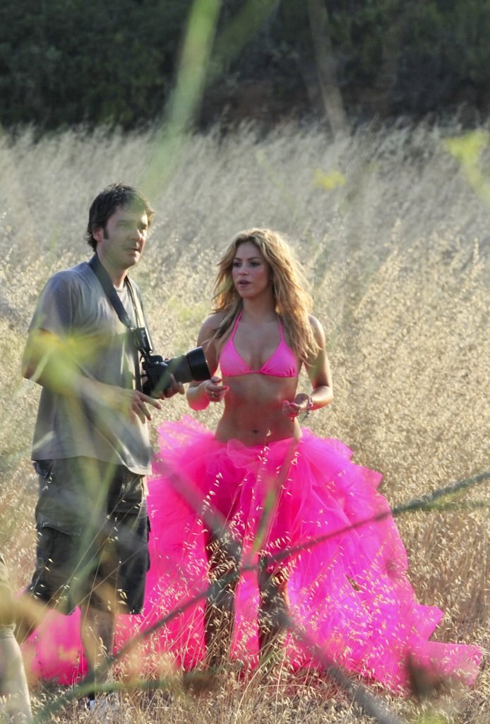 Shakira fotografiada con una falda rosa y un top de bikini durante una sesión de fotos sexy en Ibiza, España, 22/07/2010. Shakira Isabel Mebarak Ripoll es una cantante, compositora, bailarina y productora discográfica colombiana. Nacida el 2 de febrero de 1977.