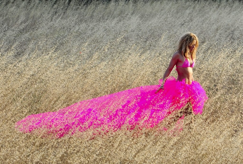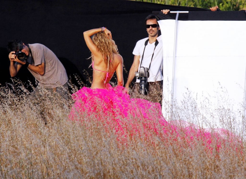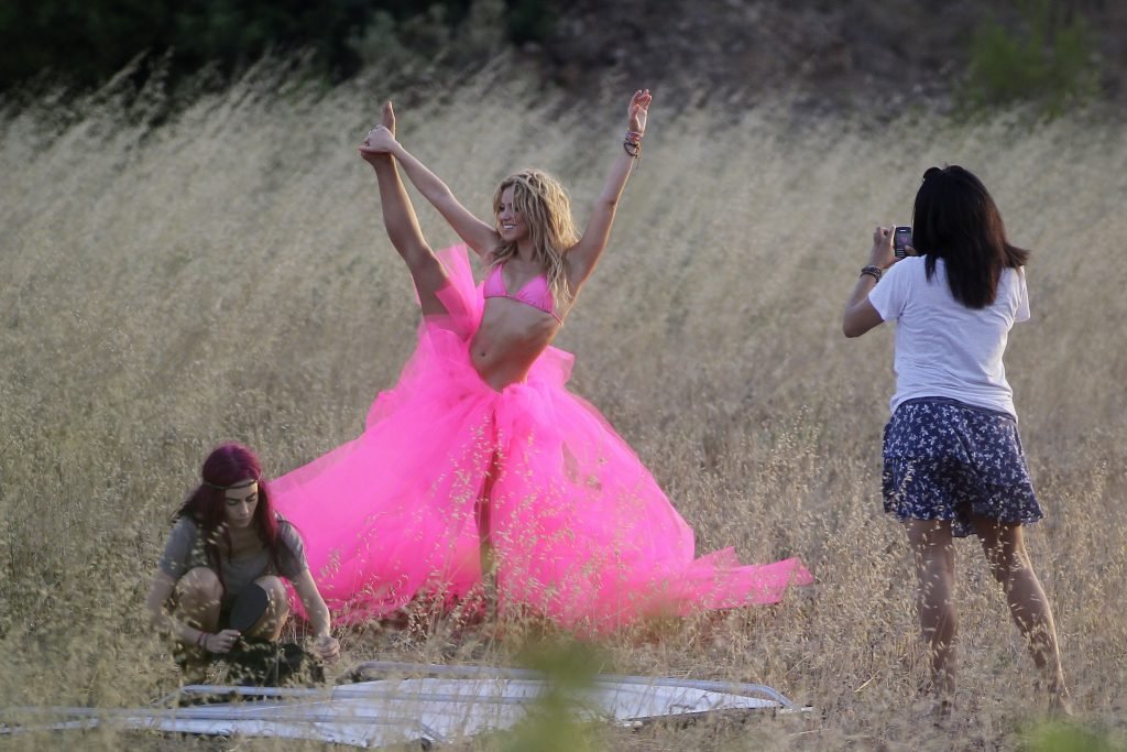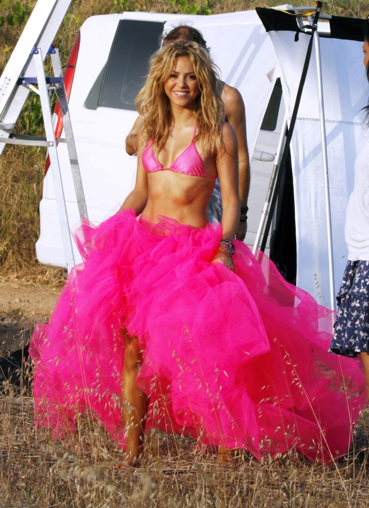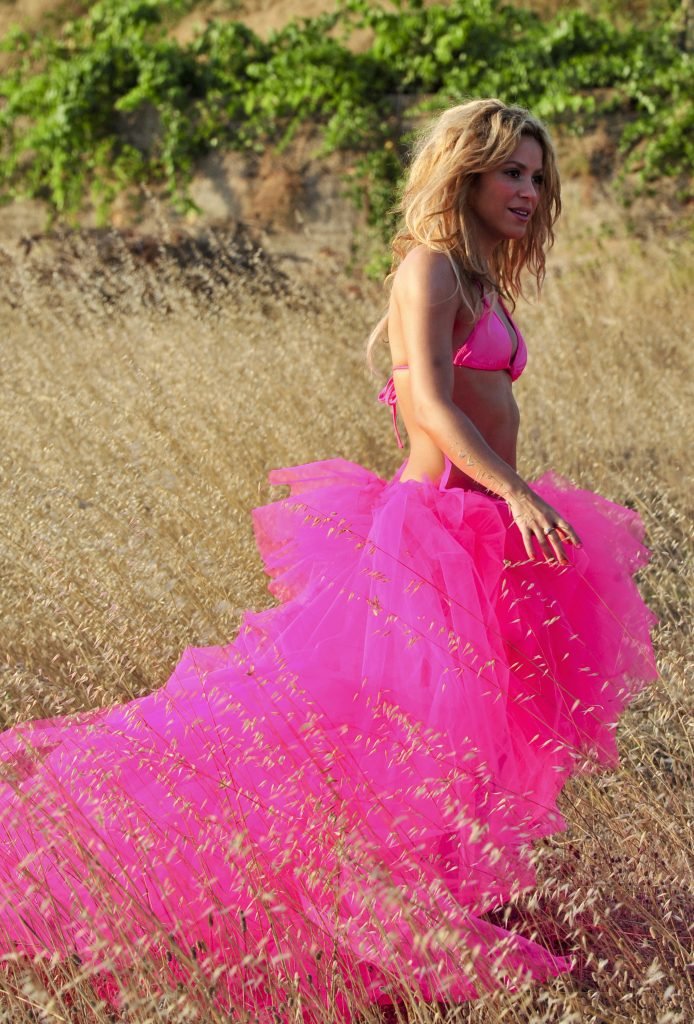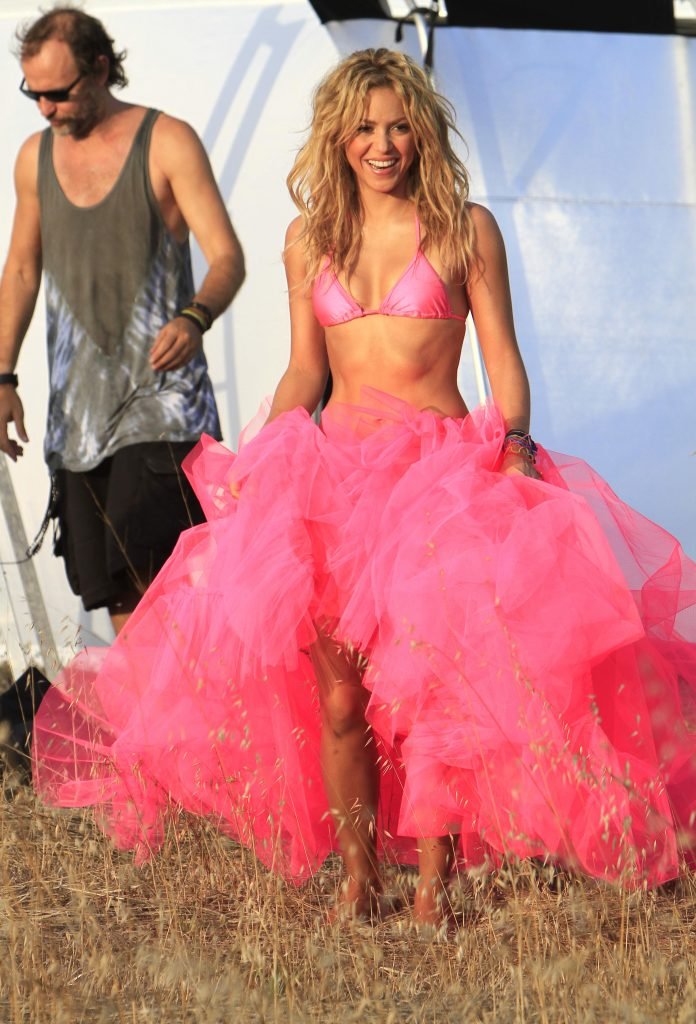 Shakira fotografiada con una falda rosa y un top de bikini durante una sesión de fotos sexy en Ibiza, España, 22/07/2010. Shakira Isabel Mebarak Ripoll es una cantante, compositora, bailarina y productora discográfica colombiana. Nacida el 2 de febrero de 1977.