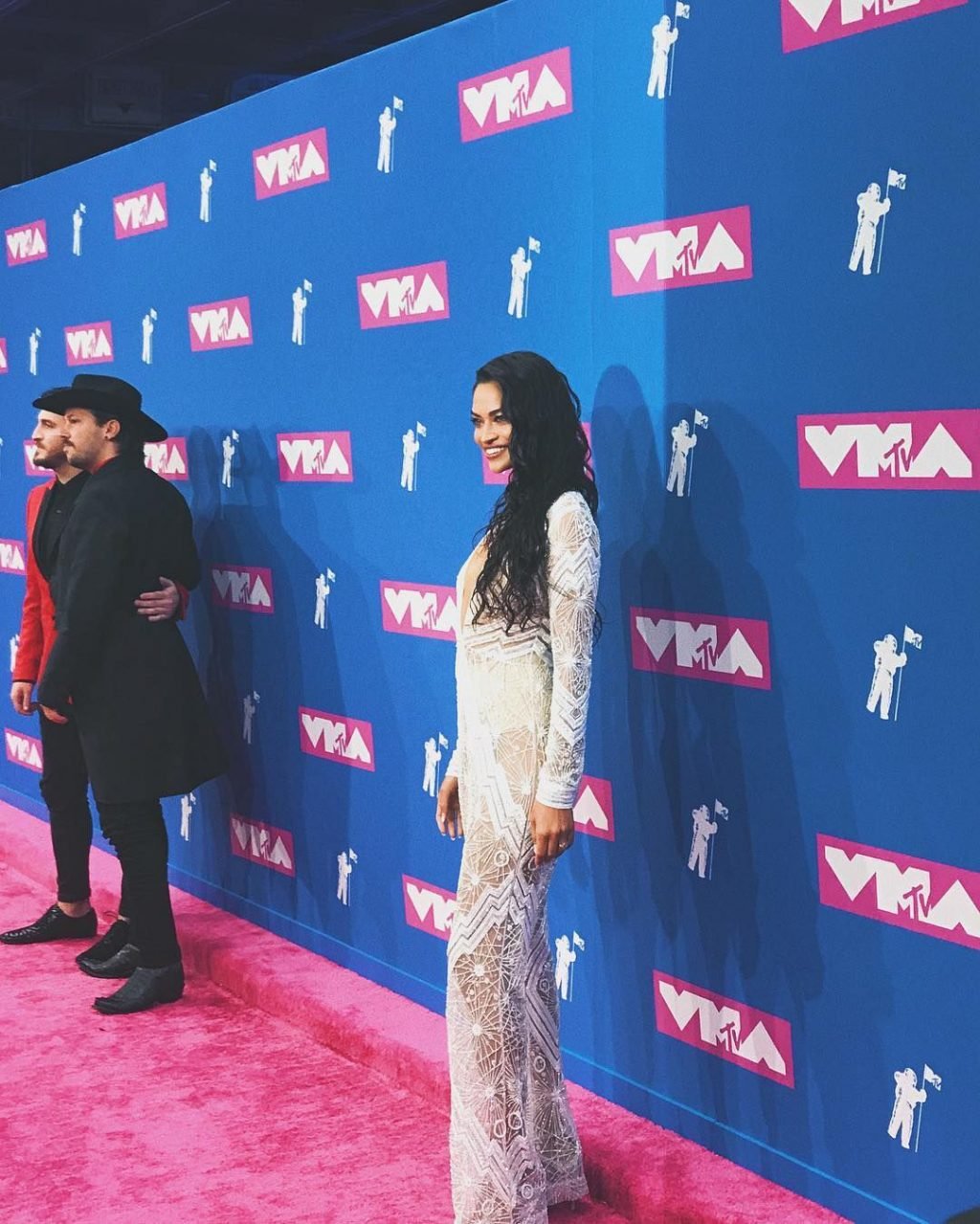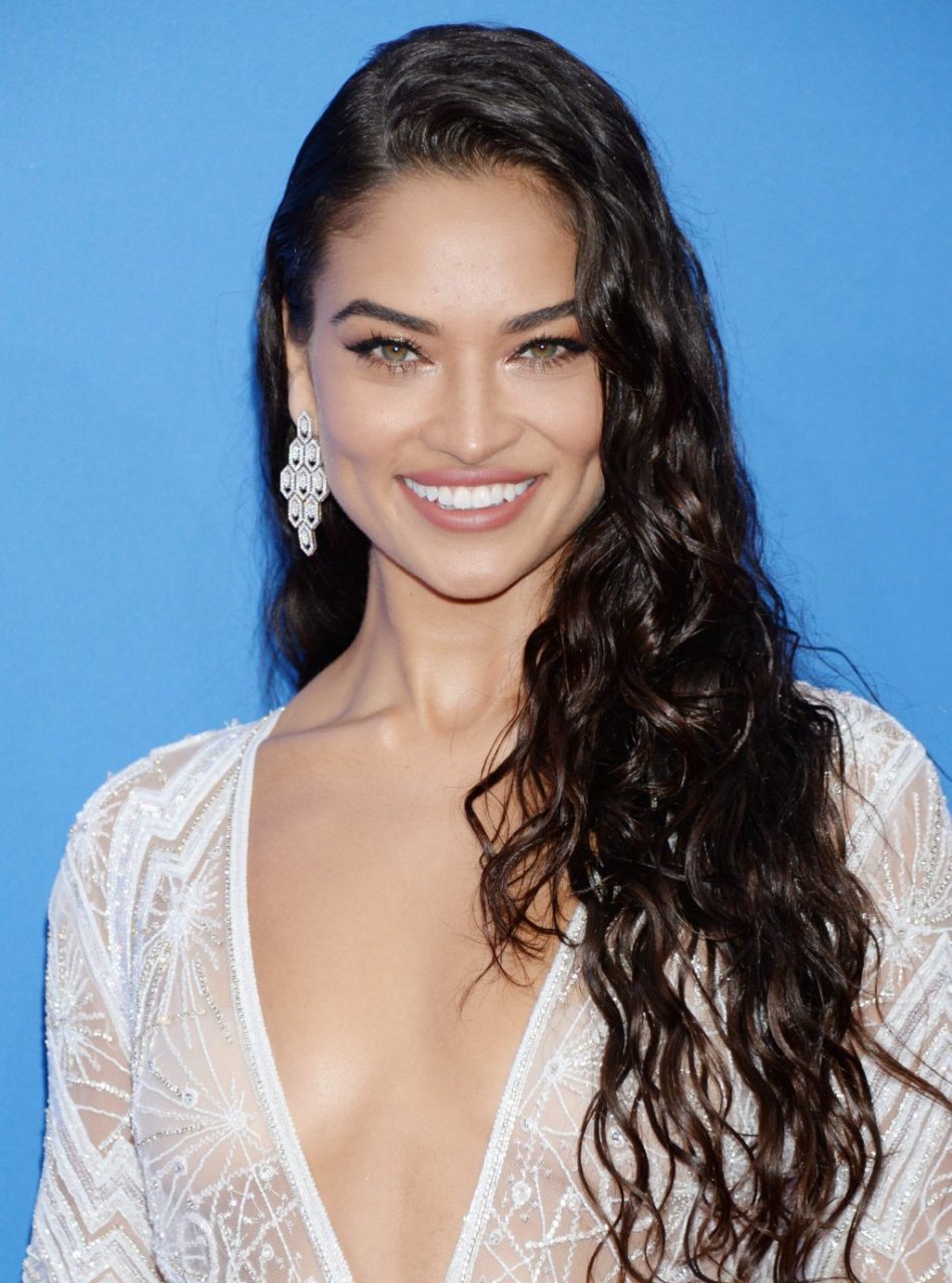 Shanina Shaik sin sostén asiste a los MTV Video Music Awards 2018 en la ciudad de Nueva York, 20/08/2018. La modelo de 27 años llevaba un vestido blanco transparente sin sujetador.