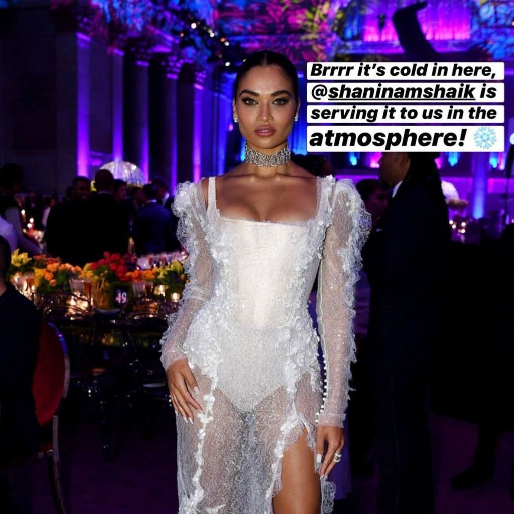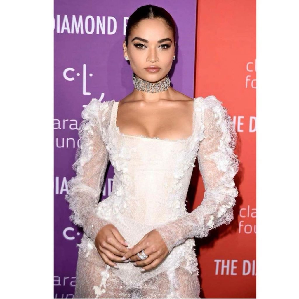 Shanina Shaik asiste al 5º Baile Anual de Diamantes en beneficio de la Fundación Clara Lionel en Cipriani Wall Street en la ciudad de Nueva York, 12/09/2019. Esta vez, la modelo de 28 años mostró su bonito escote vistiendo el vestido “Ángel” de Ulyana Sergeenko.