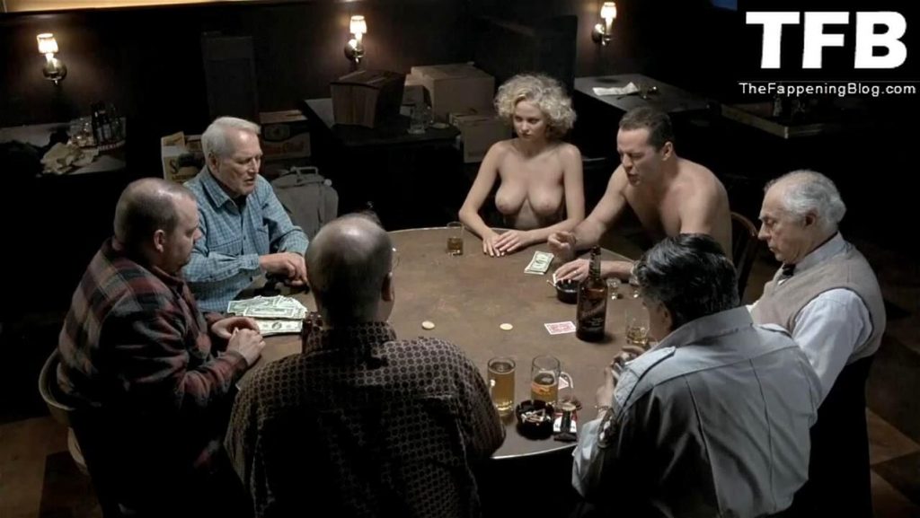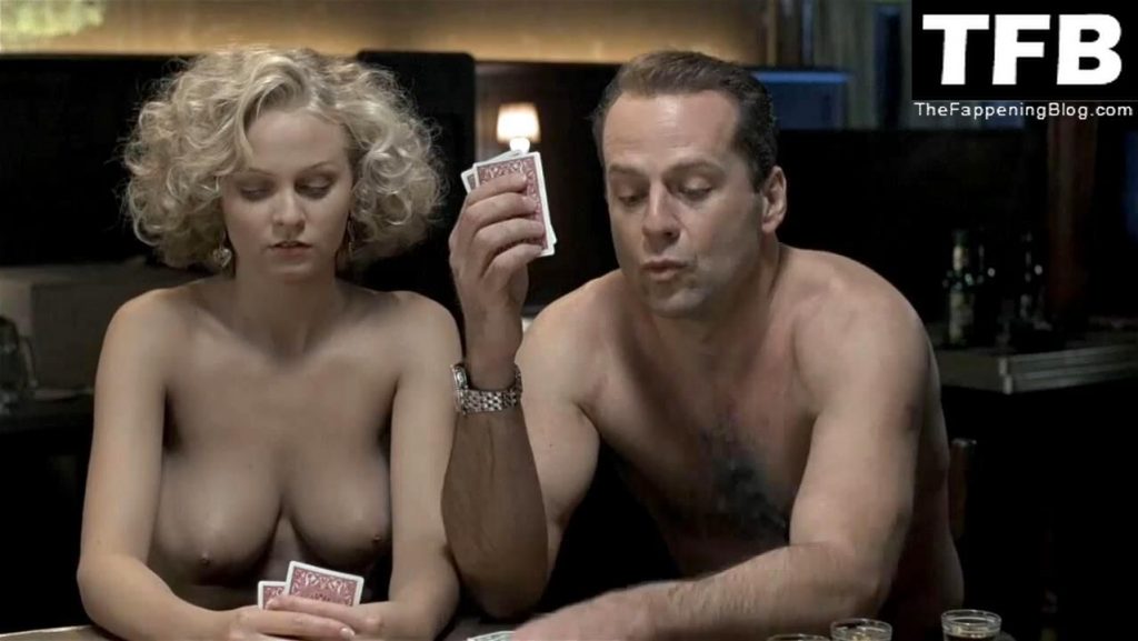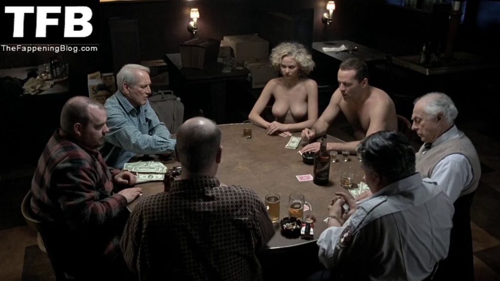 Shannah Laumeister está sentada sin camiseta en una mesa de cartas dándonos una buena vista de sus bonitos pechos mientras se sienta junto a Bruce Willis y juegan al póker desnudos.