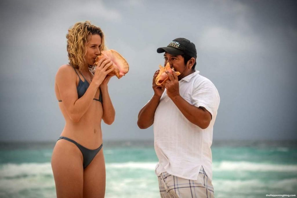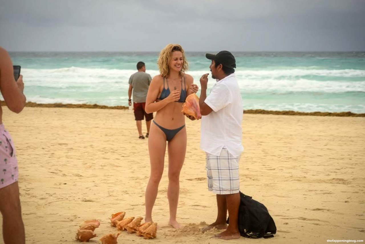 Here are Shantel VanSanten’s hot bikini candid pics, taken while she was filming the commercial. She tried to spend a romantic weekend in Mexico with her boyfriend. The man is 46 years old American actor Victor Webster, and he looks great indeed. Shantel wore a gray bikini until her man covered her with a towel. Unfortunately, we can’t see her tits or pussy here, but good ass cheeks are here!