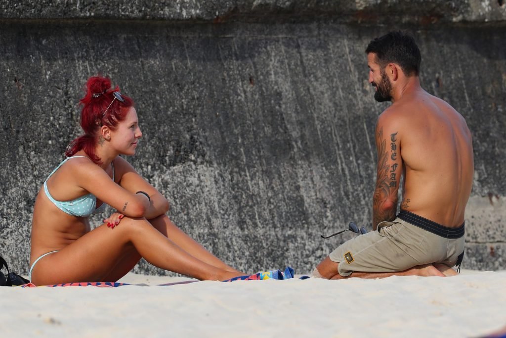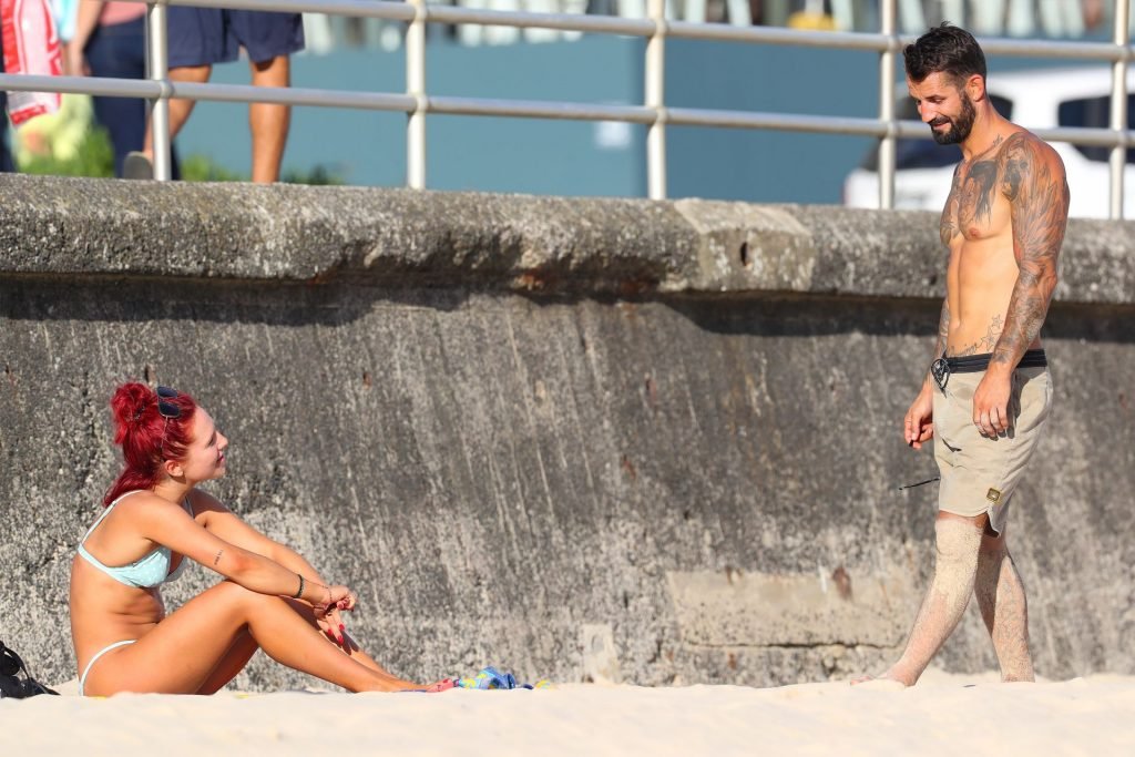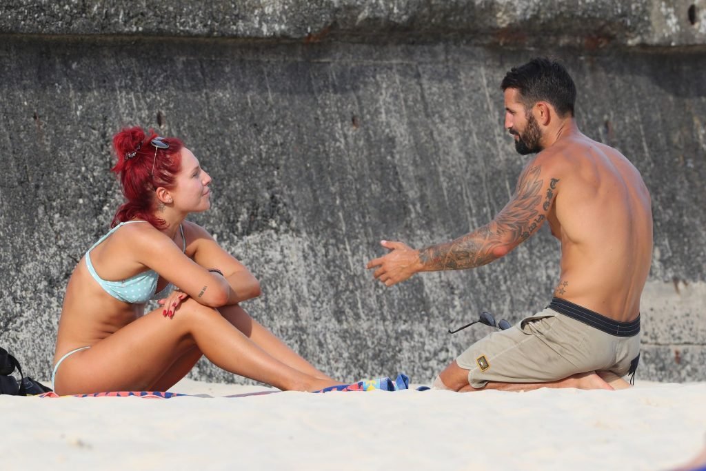 El juez de “Dancing with the Stars” Sharna Burgess fue fotografiada en la playa Bondi conversando con un hombre misterioso, 13/03/2019.
