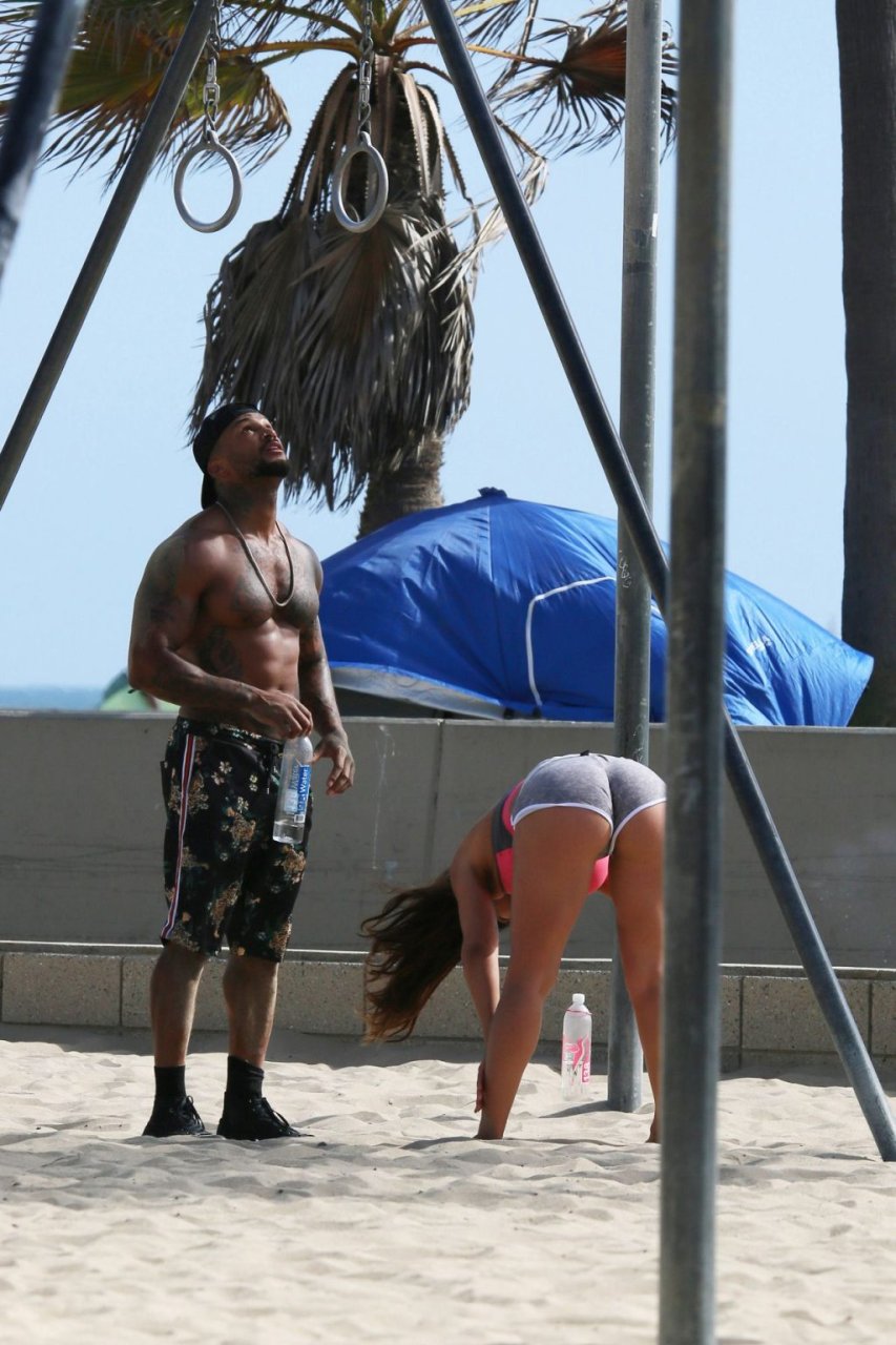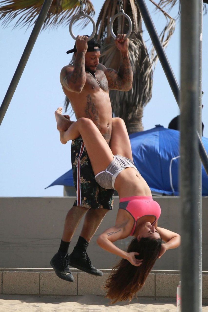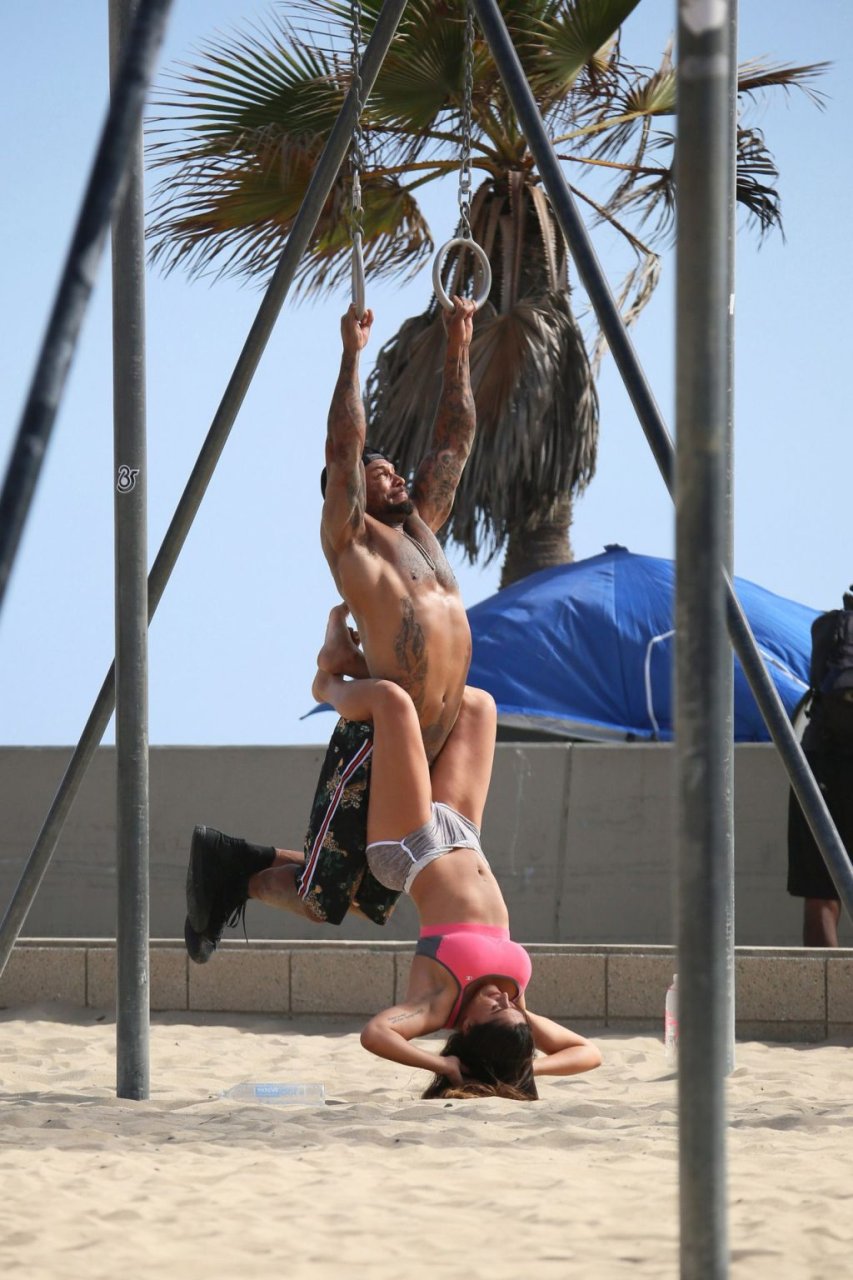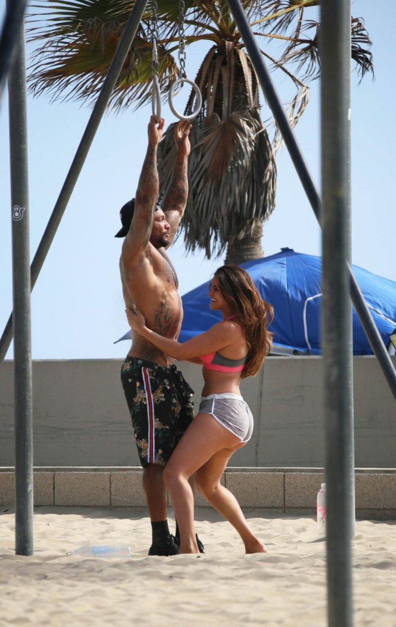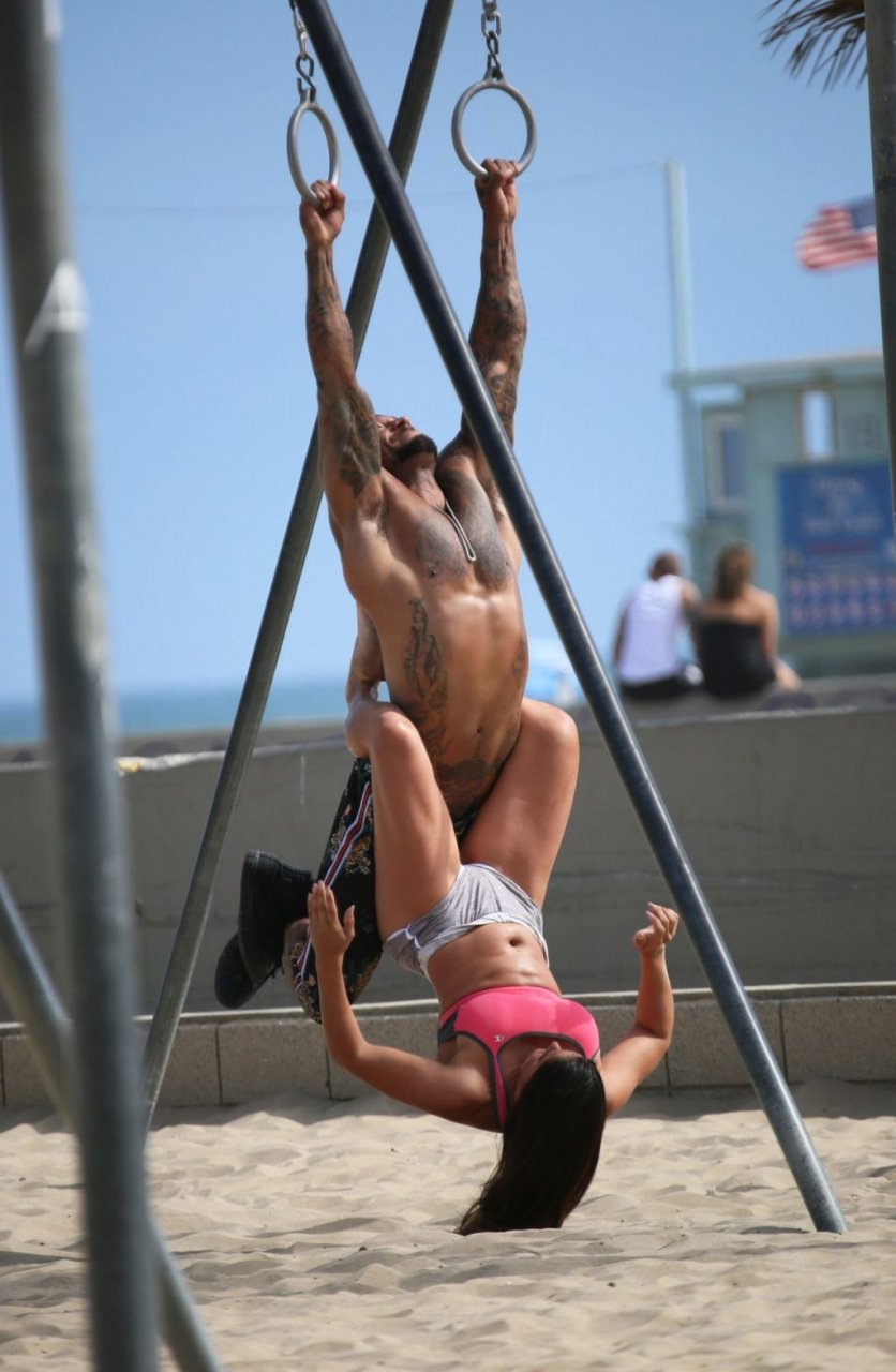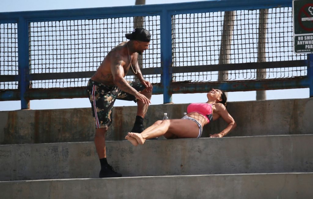 La ex esposa de Lorenzo Lamas, la actriz y estrella de reality TV de 32 años Shawna Craig, se acerca peligrosamente al ex de Kelly Brook, David McIntosh, durante un entrenamiento atrevido en Muscle Beach en Venice Beach, 13/06/2018.