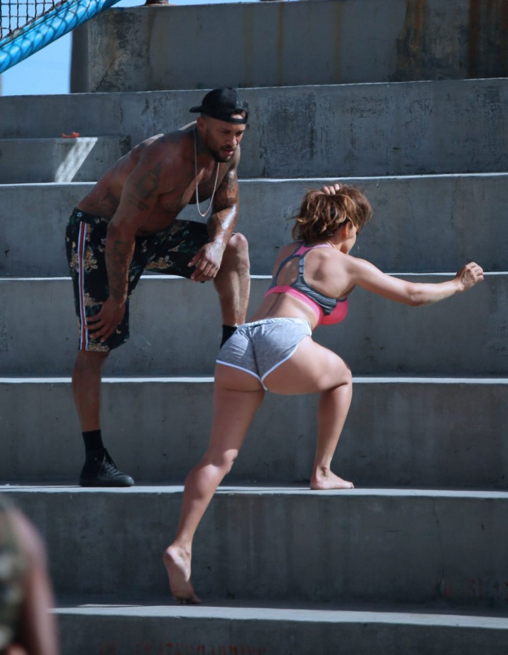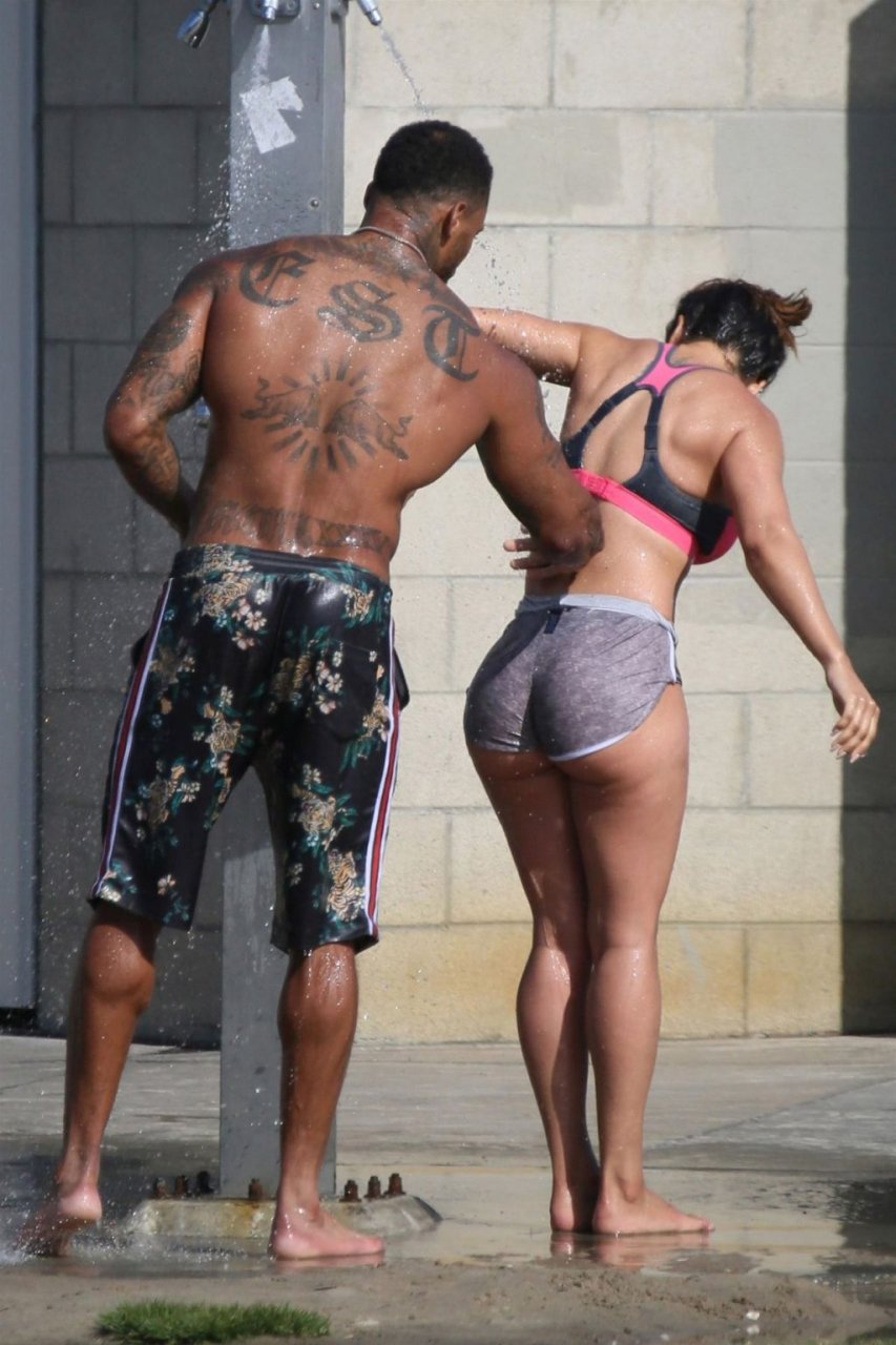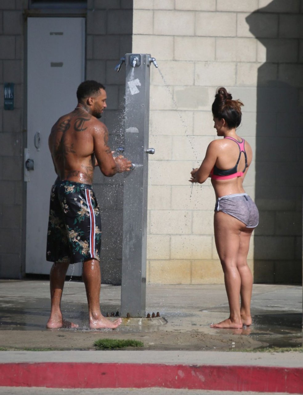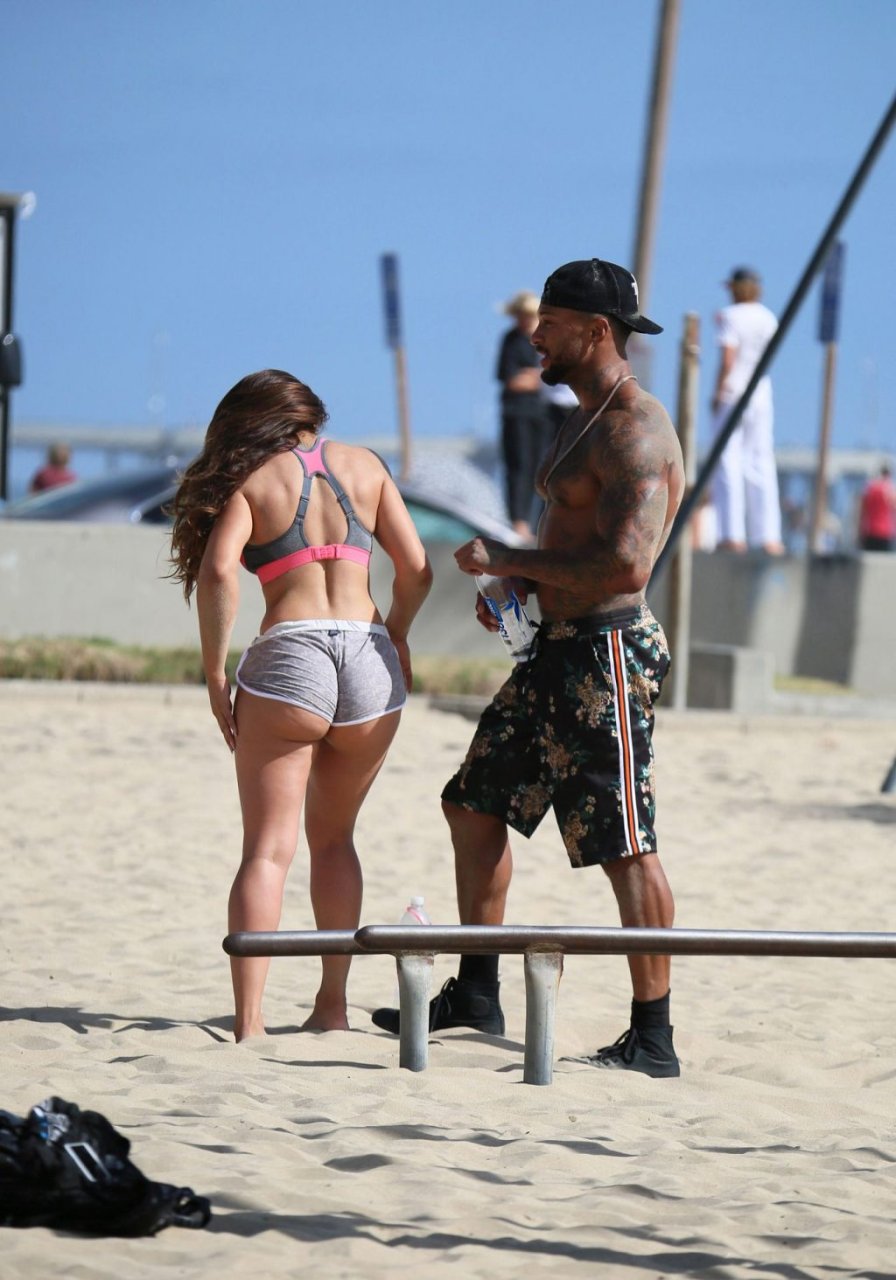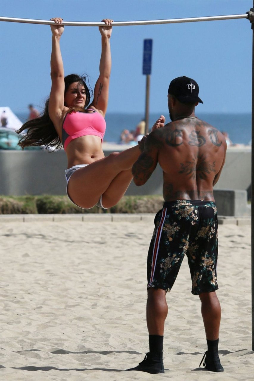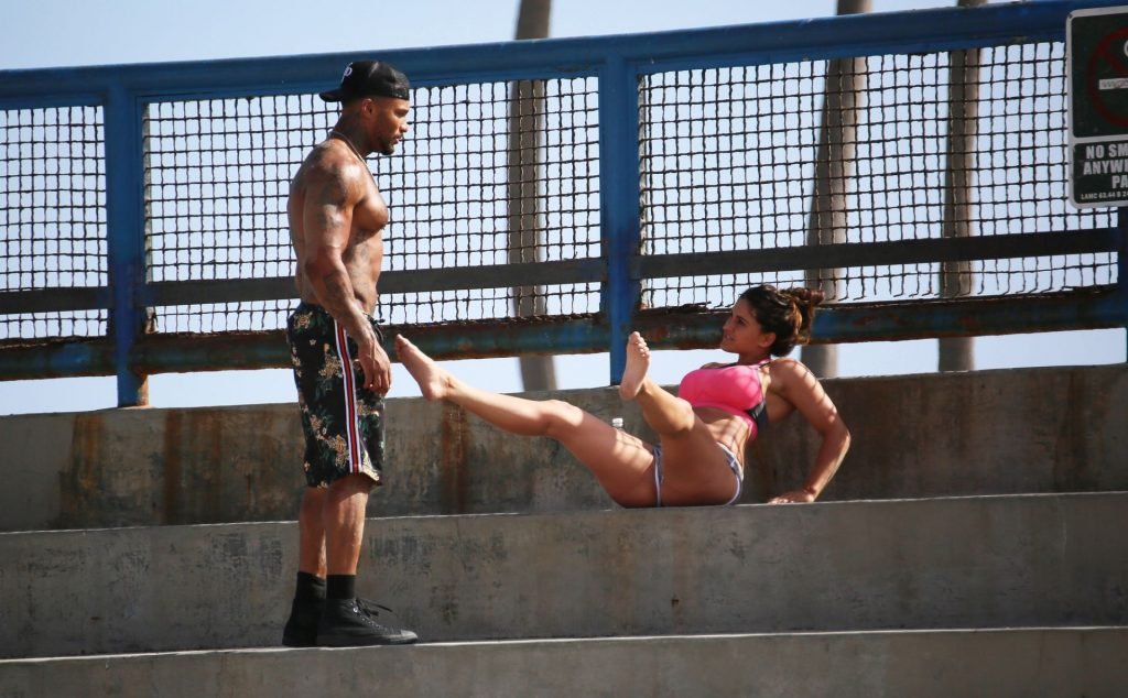La ex esposa de Lorenzo Lamas, la actriz y estrella de reality TV de 32 años Shawna Craig, se acerca peligrosamente al ex de Kelly Brook, David McIntosh, durante un entrenamiento atrevido en Muscle Beach en Venice Beach, 13/06/2018.