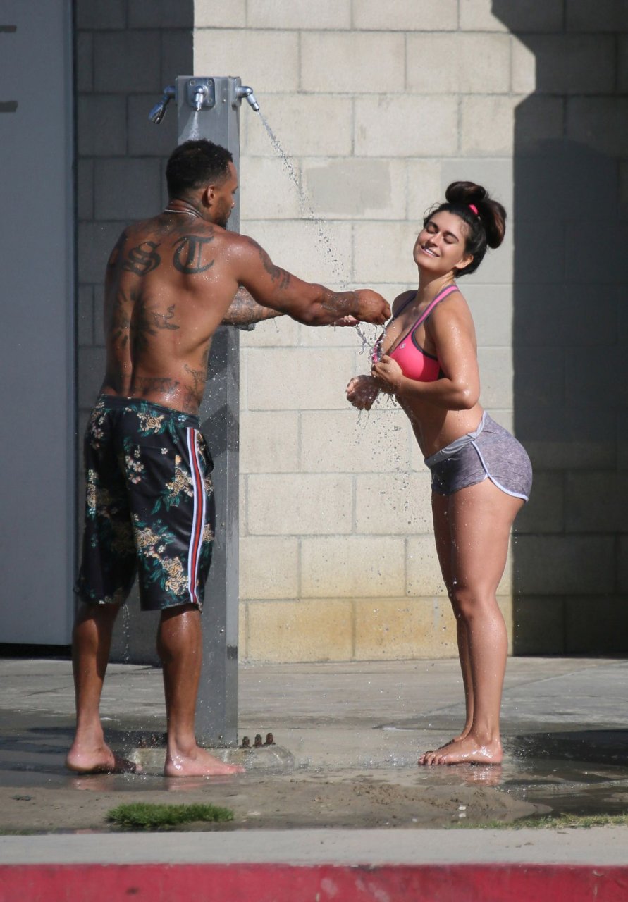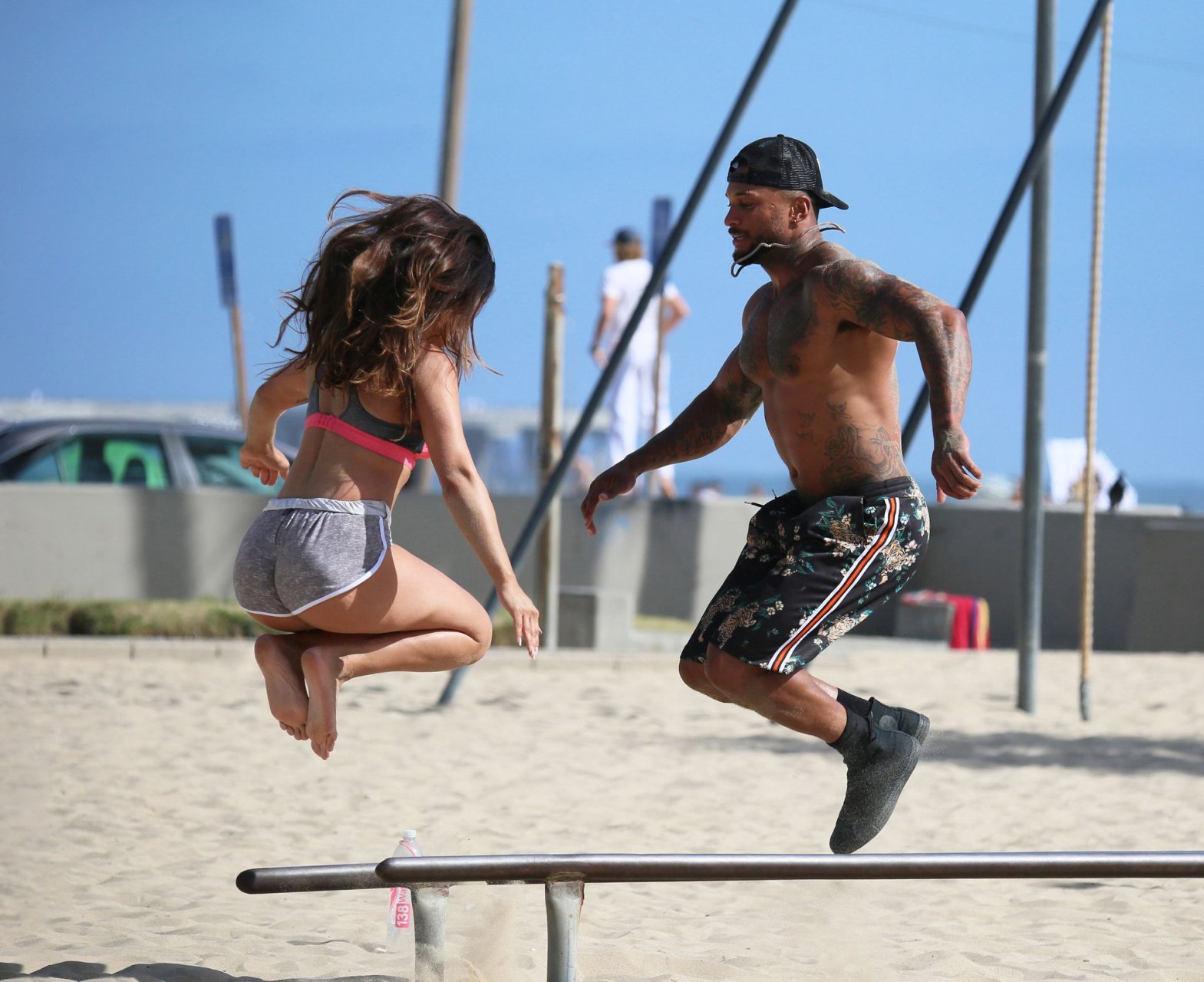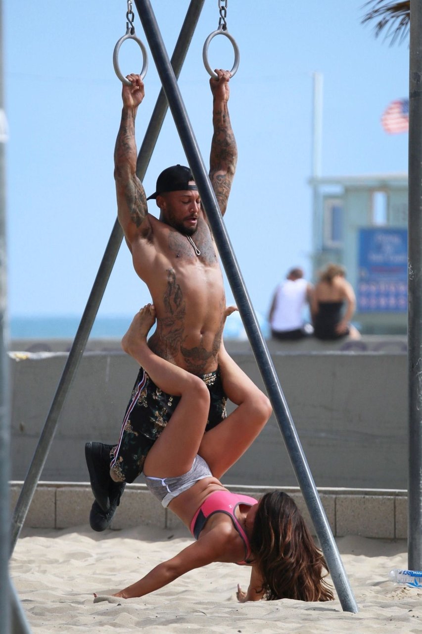La ex esposa de Lorenzo Lamas, la actriz y estrella de reality TV de 32 años Shawna Craig, se acerca peligrosamente al ex de Kelly Brook, David McIntosh, durante un entrenamiento atrevido en Muscle Beach en Venice Beach, 13/06/2018.
