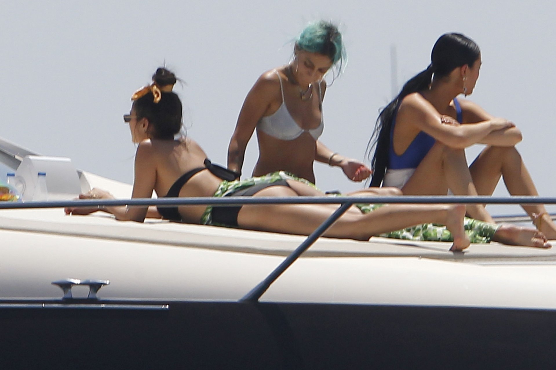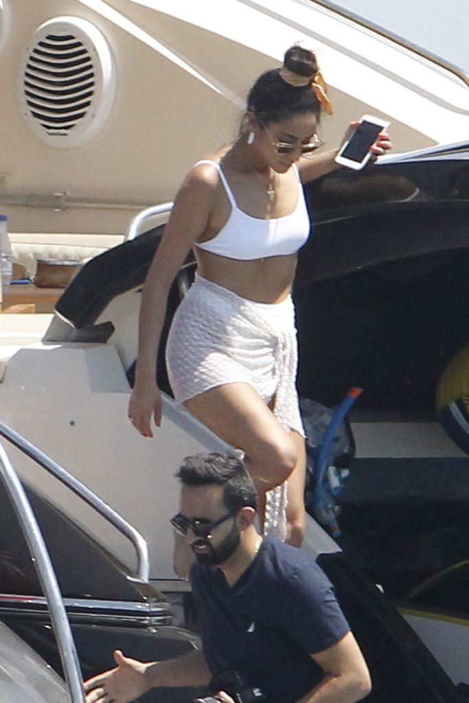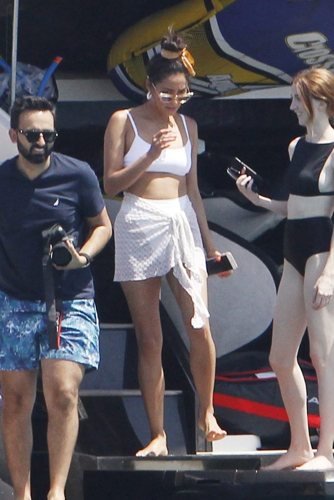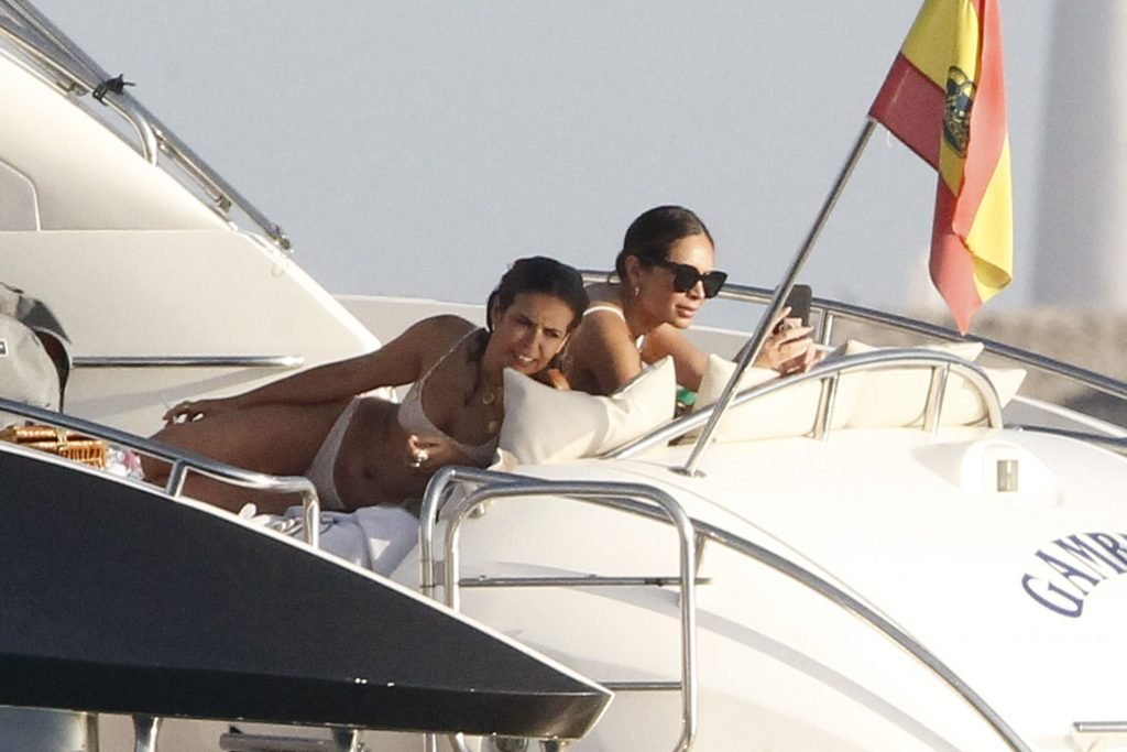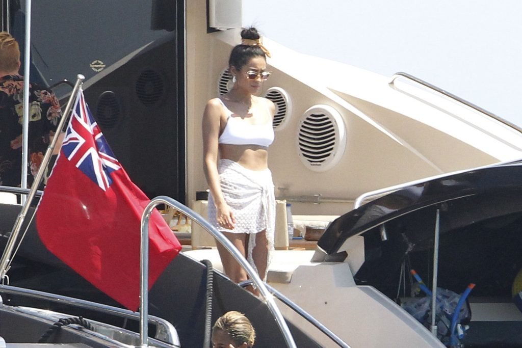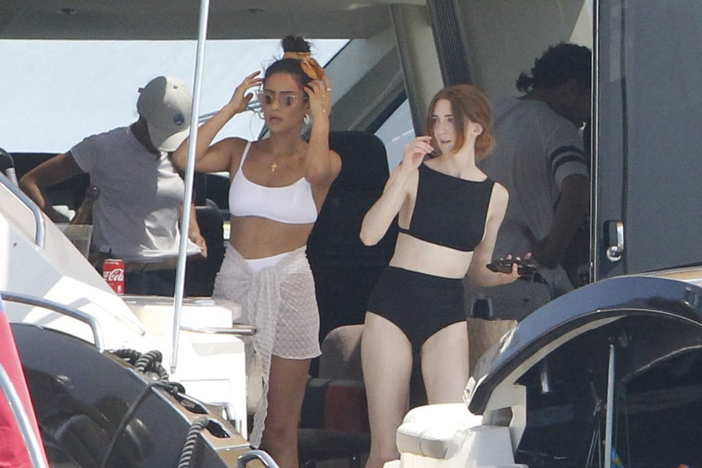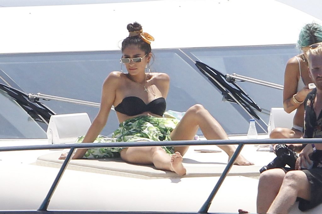 La estrella de Pretty Little Liars Shay Mitchell disfruta de un paseo en barco a Formentera junto con sus amigos, incluyendo a las modelos Elsa Hosk, Olivia Culpo y otros en Formentera, Ibiza, 26/06/2018.