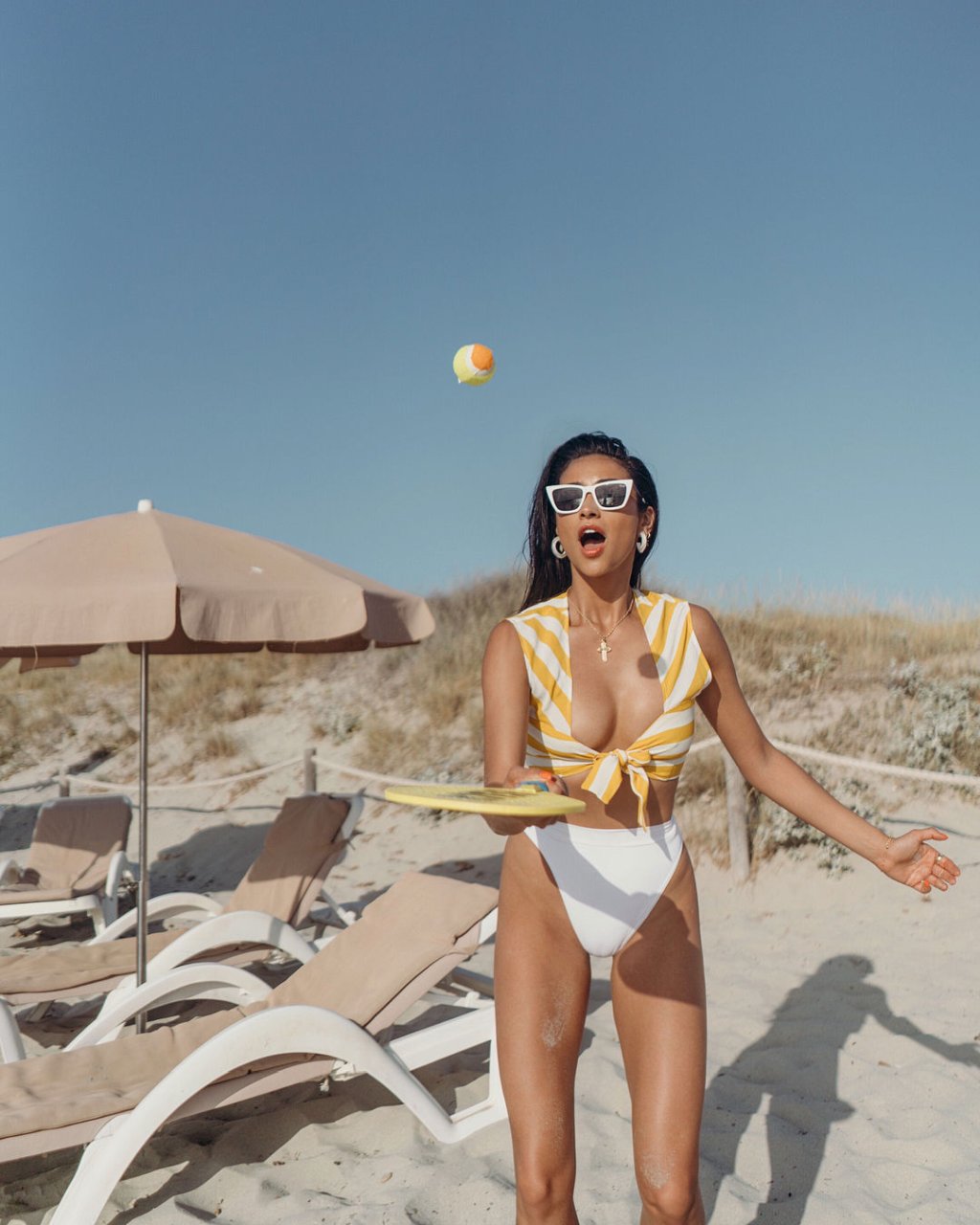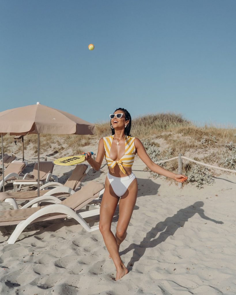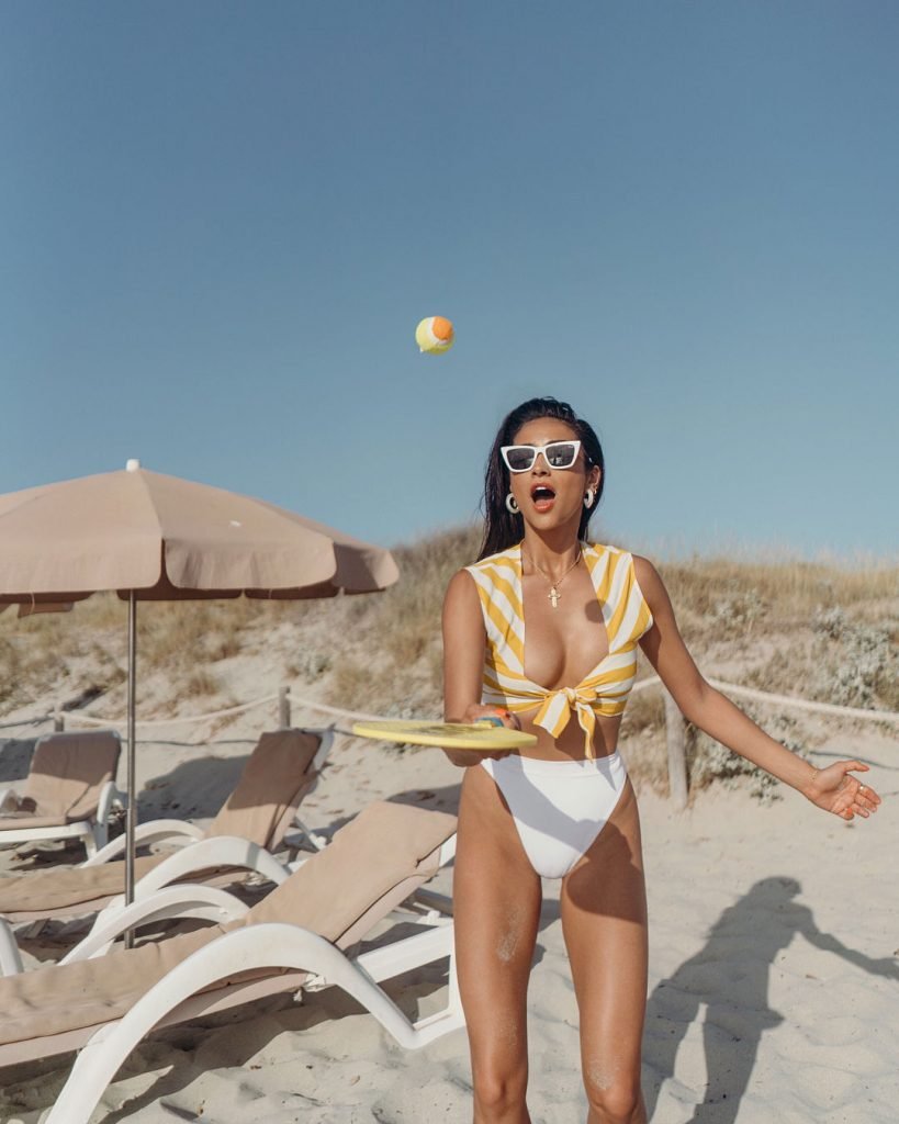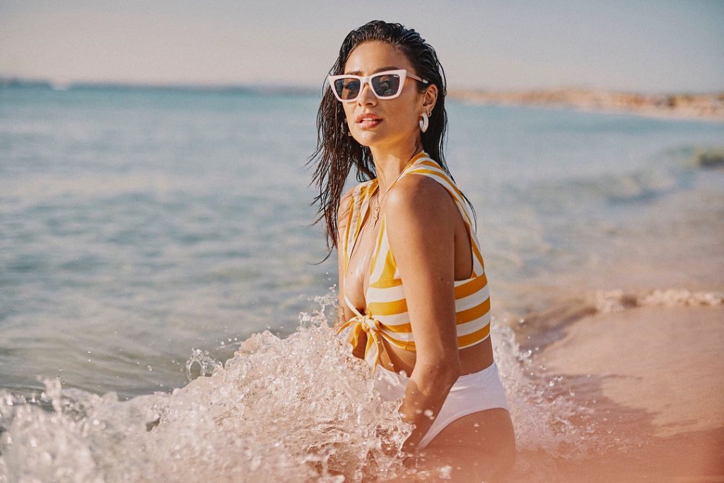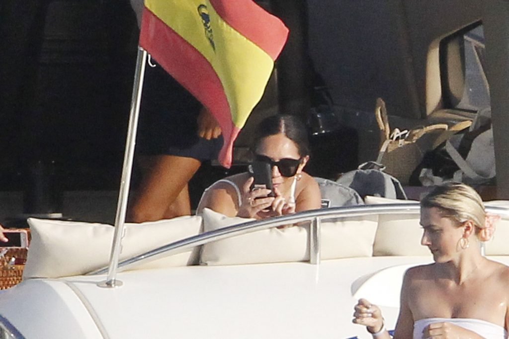 La estrella de Pretty Little Liars Shay Mitchell disfruta de un paseo en barco a Formentera junto con sus amigos, incluyendo a las modelos Elsa Hosk, Olivia Culpo y otros en Formentera, Ibiza, 26/06/2018.
