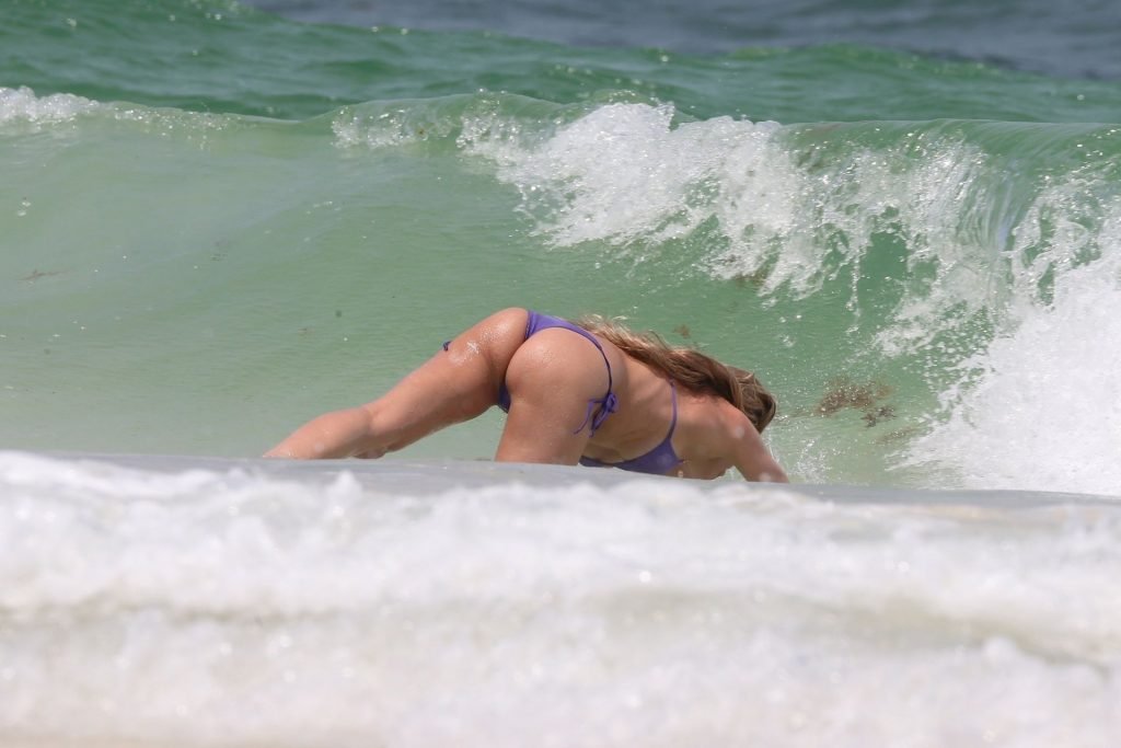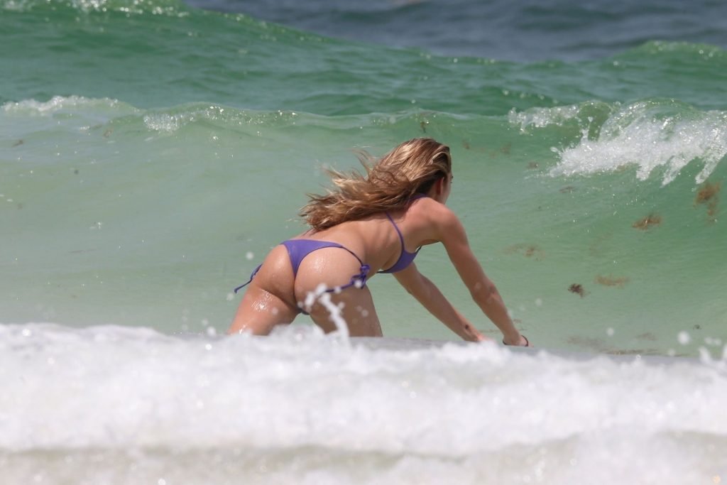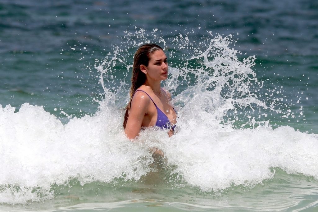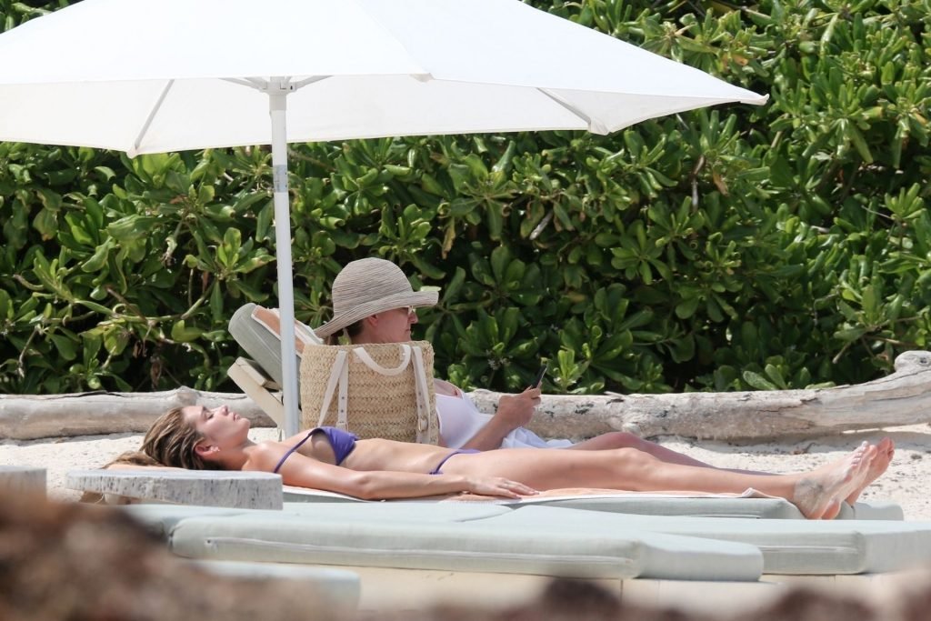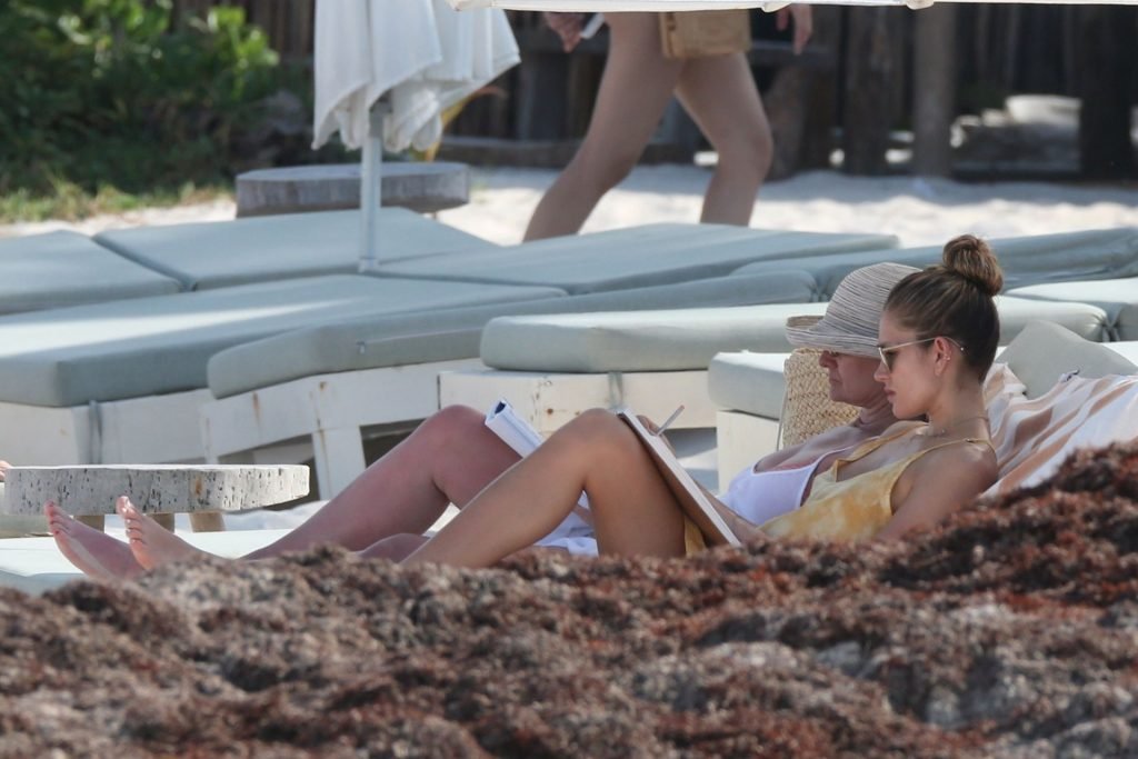 Modelo recién soltera Shayna Taylor toma el sol con un bikini morado mientras disfruta de un tiempo libre en la playa de Tulum con su madre, 17/05/2019. Shayna y Ryan Seacrest se separaron recientemente después de casi 3 años juntos.