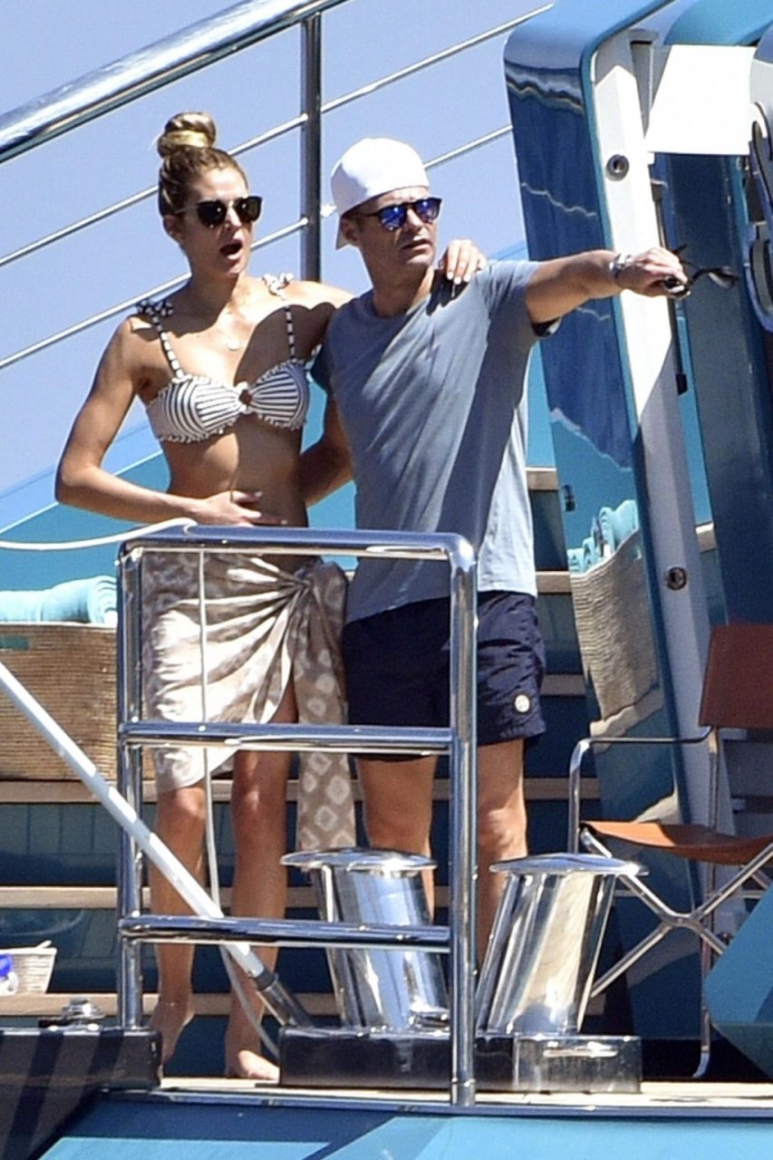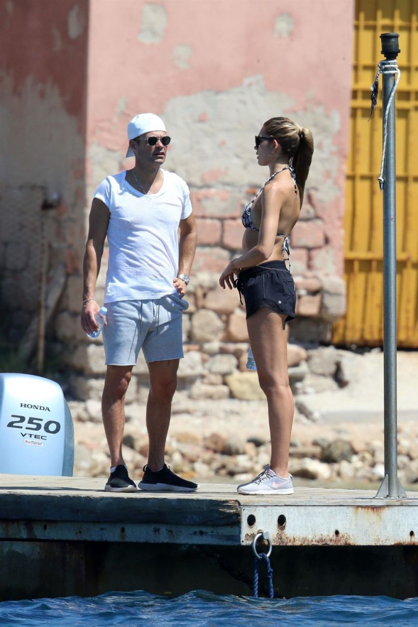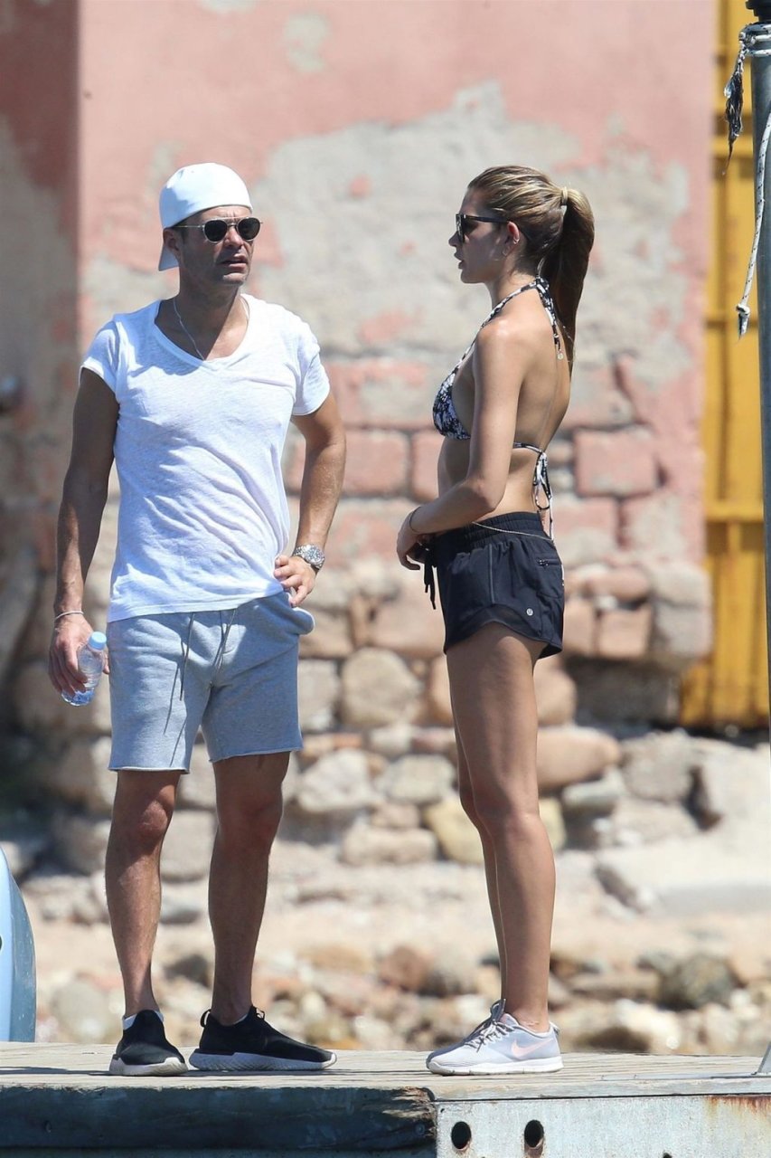 Ryan Seacrest y su novia Shayna Taylor fueron fotografiados disfrutando de sus vacaciones de verano en Positano, Italia con amigos, 21/08/2019. La pareja se separó a principios de este año después de tres años juntos y parece que han retomado justo donde lo dejaron.