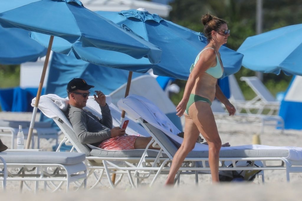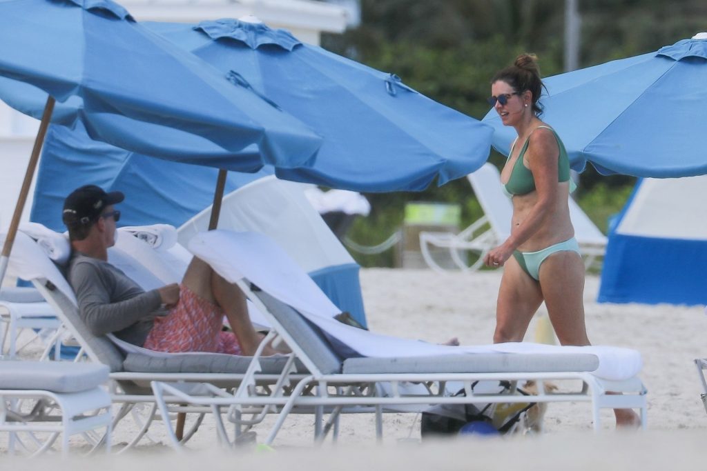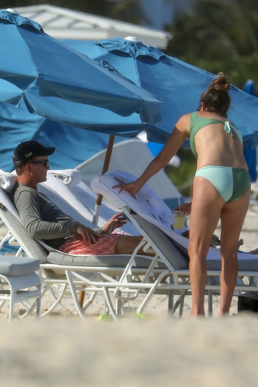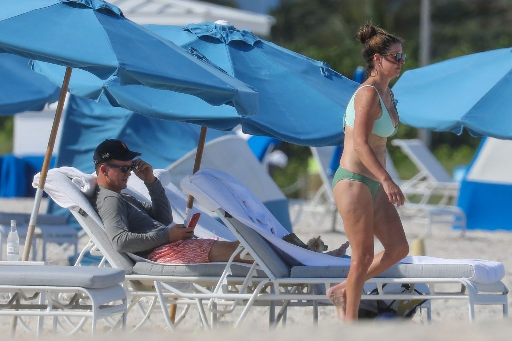 Retirado estrella de la NFL Peyton Manning y su esposa Ashley Thompson disfrutan de un tiempo de descanso mientras vacacionan en Miami, 13/10/2020.