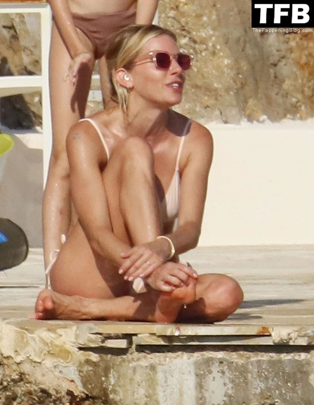 La actriz británica Sienna Miller disfruta del cálido sol francés y luce genial en su sexy bikini, vista con su hija Marlowe de vacaciones en St Tropez, 20/07/2022.