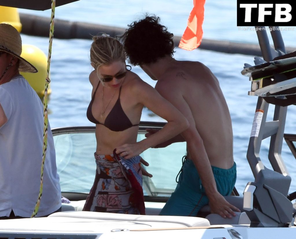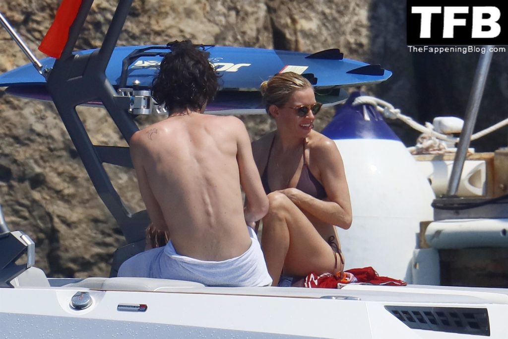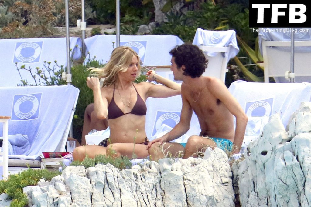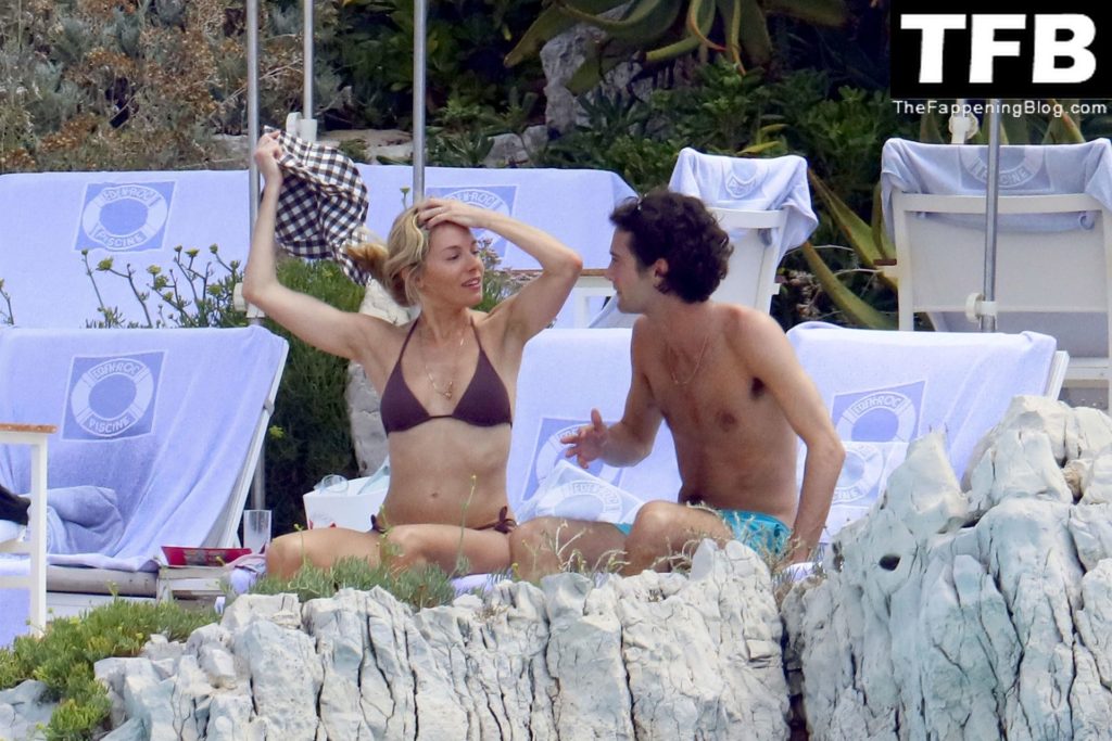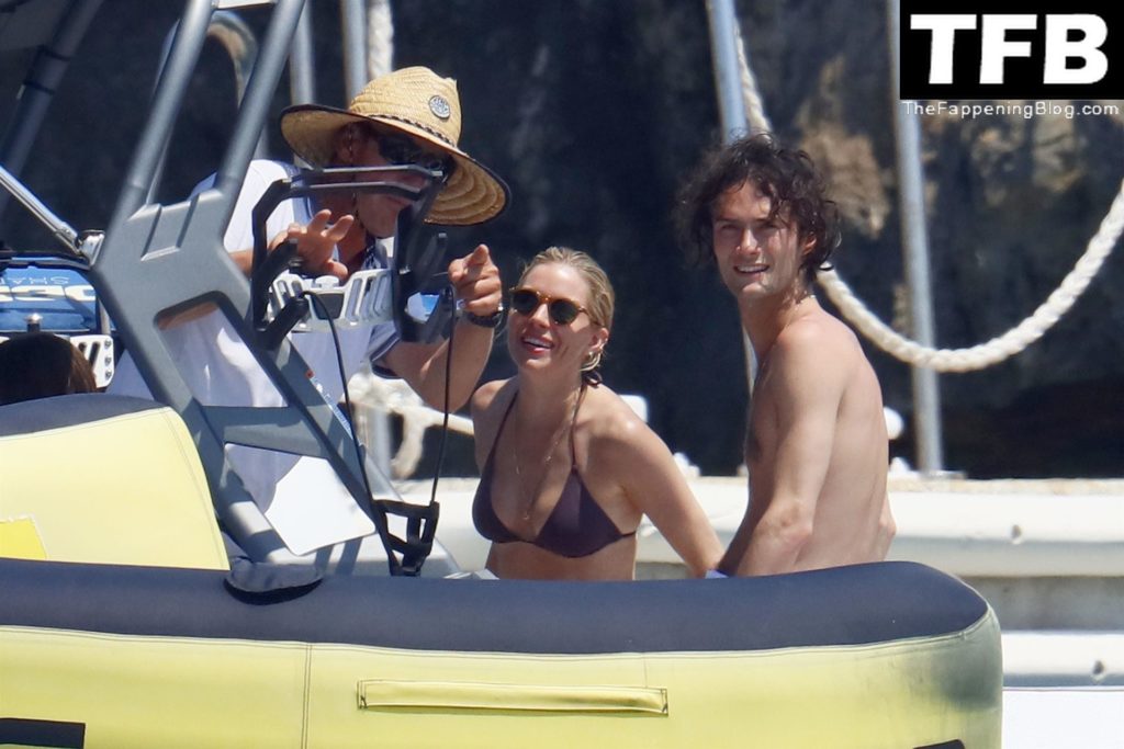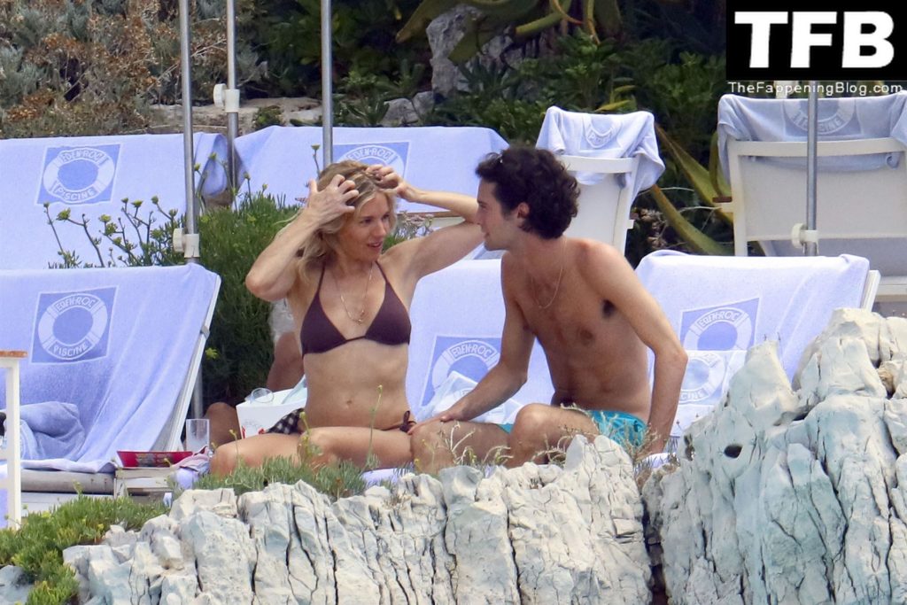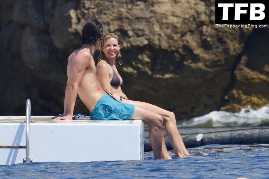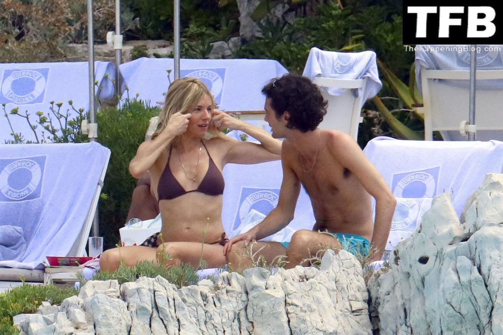 La actriz británica Sienna Miller muestra su sexy físico con un pequeño bikini ajustado junto a su novio Oli Green mientras disfrutan del sol en sus vacaciones en el sur de Francia con la hija de Sienna, Marlowe Sturridge, 21/07/2022.