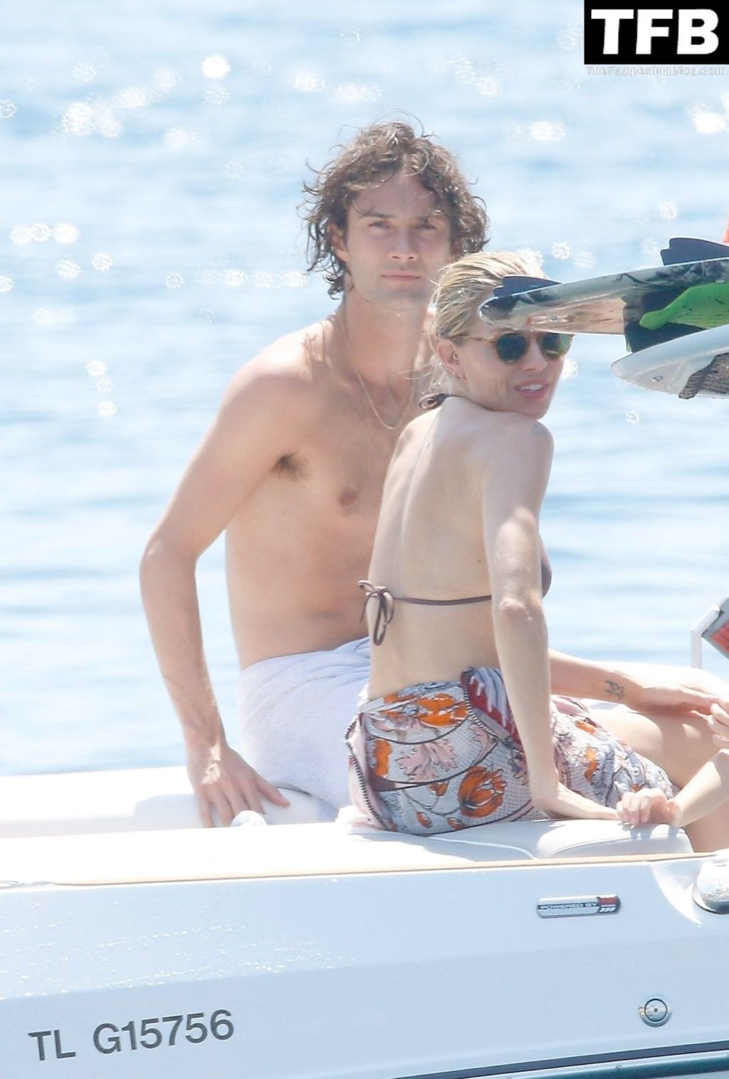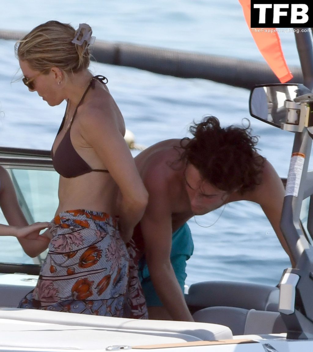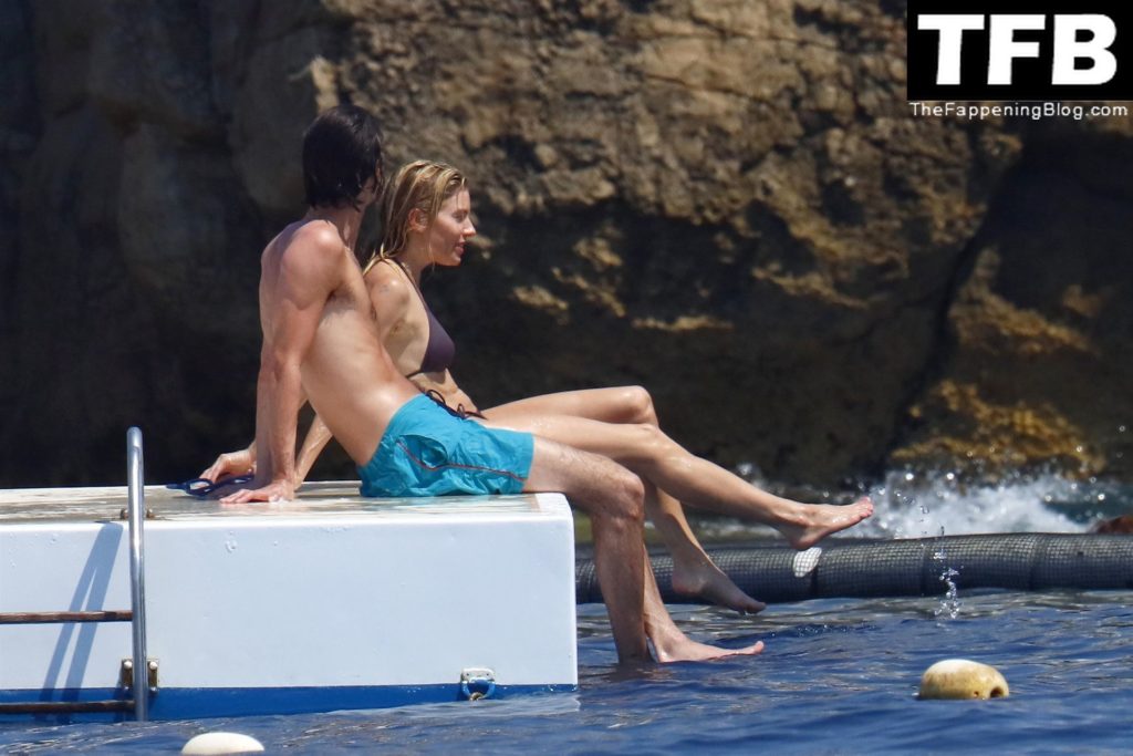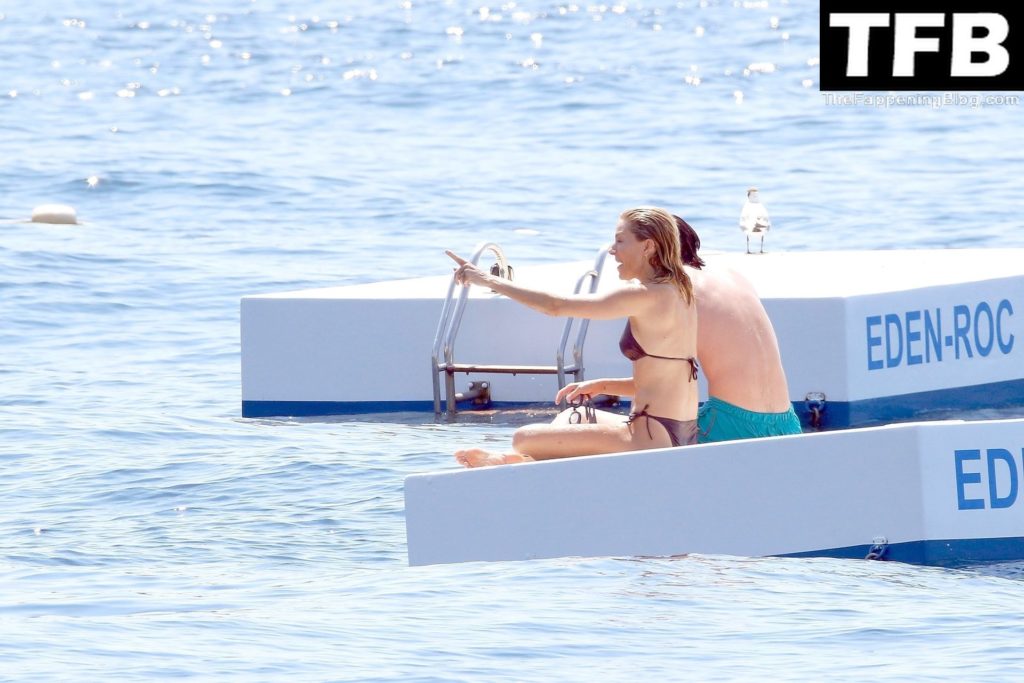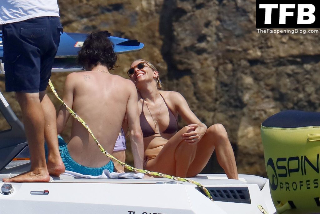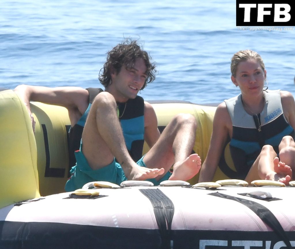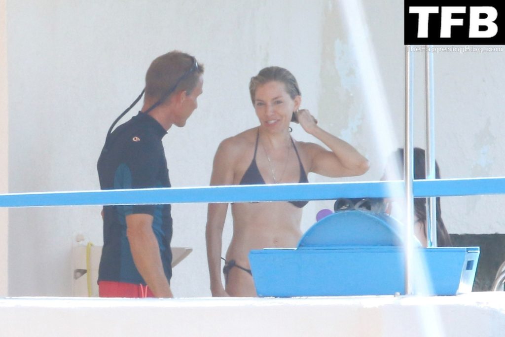 La actriz británica Sienna Miller muestra su sexy físico con un pequeño bikini ajustado junto a su novio Oli Green mientras disfrutan del sol en sus vacaciones en el sur de Francia con la hija de Sienna, Marlowe Sturridge, 21/07/2022.