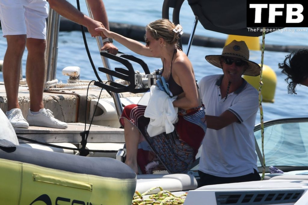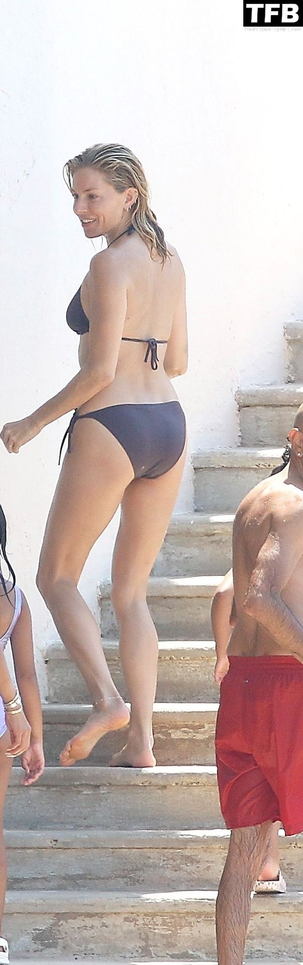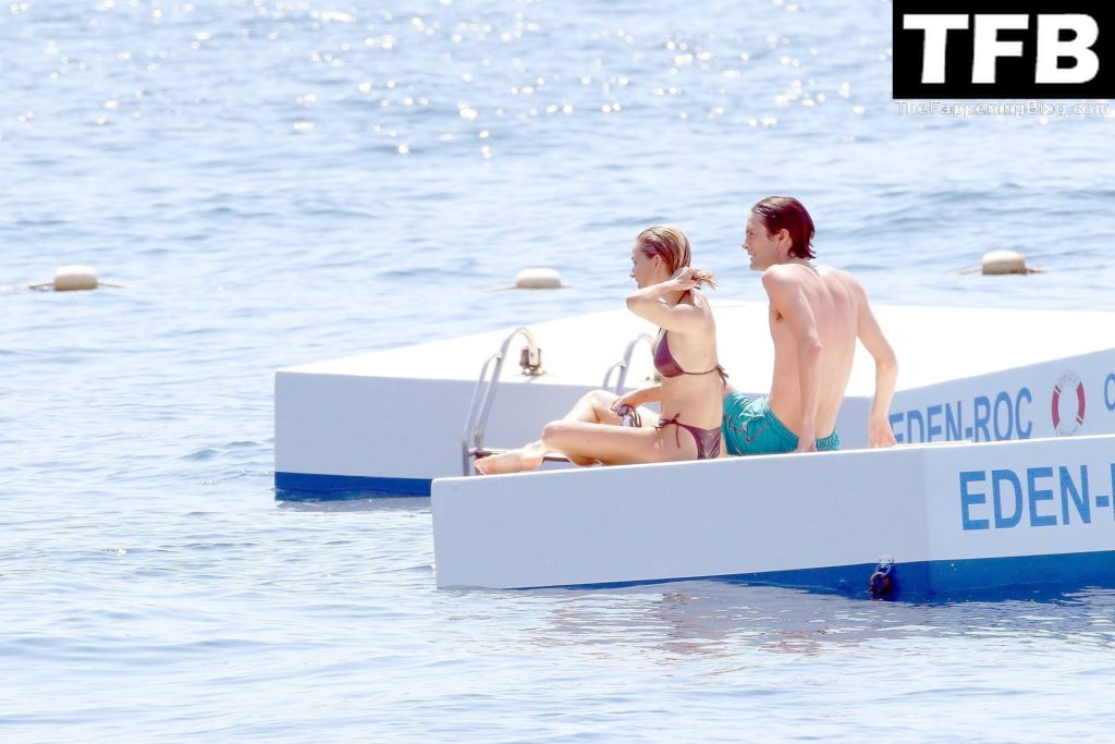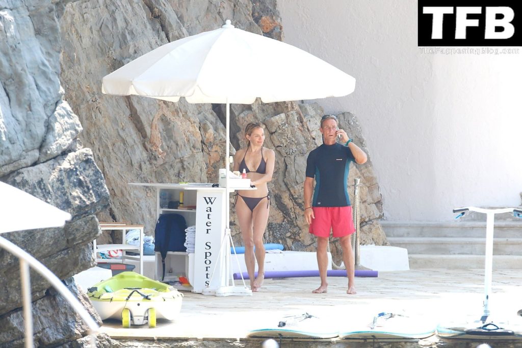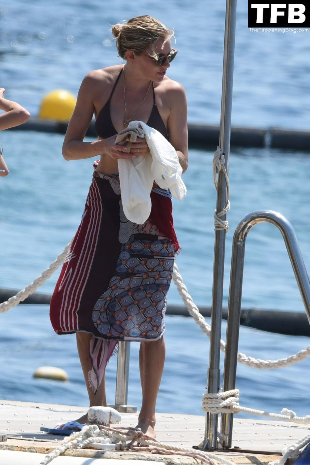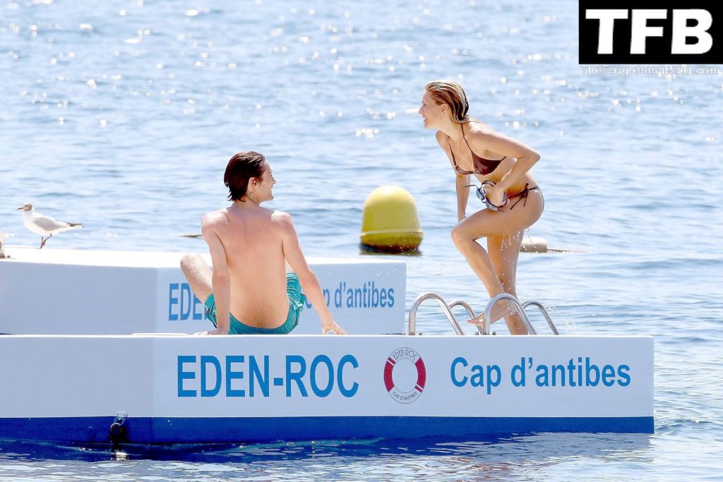 La actriz británica Sienna Miller muestra su sexy físico con un pequeño bikini ajustado junto a su novio Oli Green mientras disfrutan del sol en sus vacaciones en el sur de Francia con la hija de Sienna, Marlowe Sturridge, 21/07/2022.