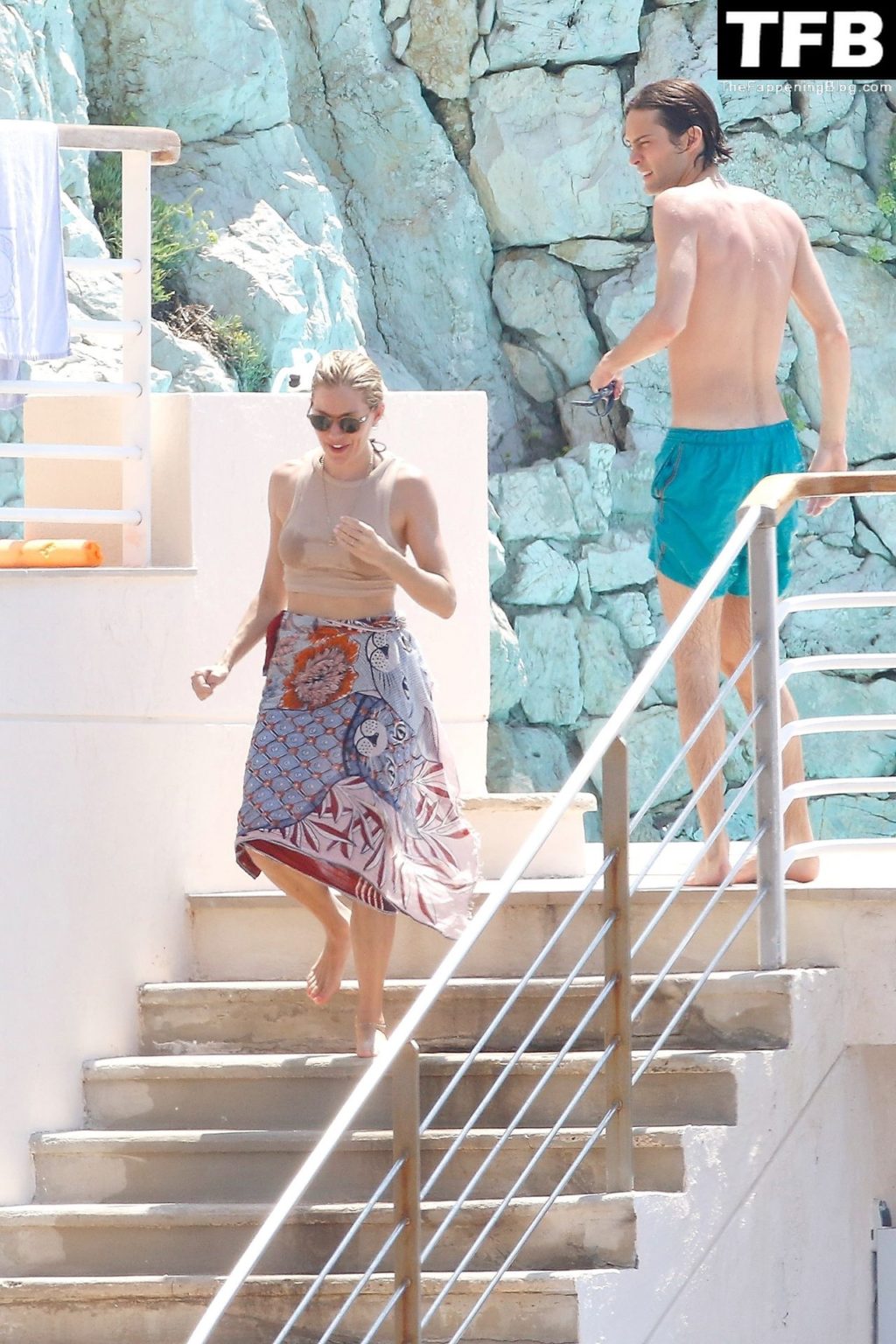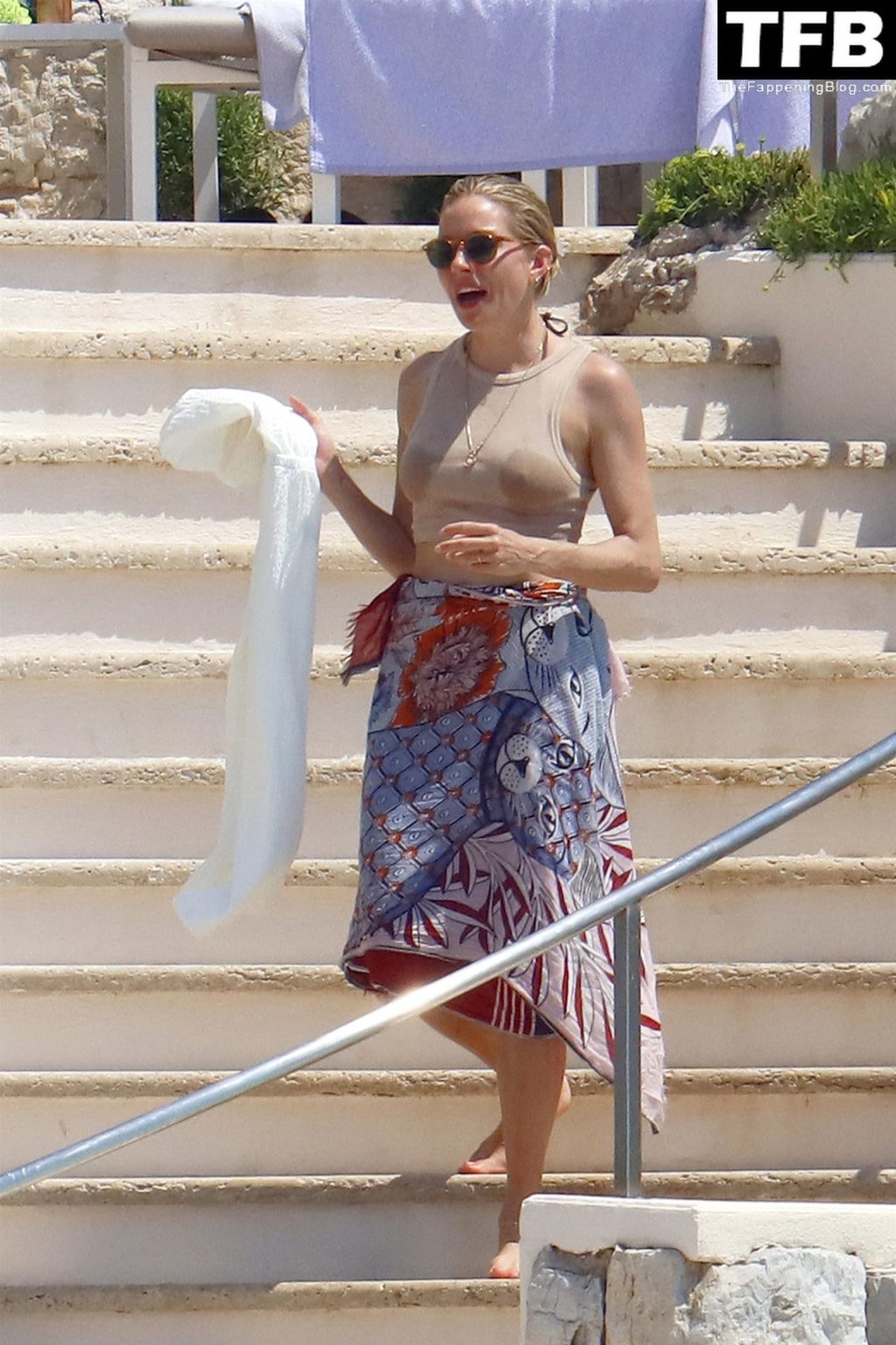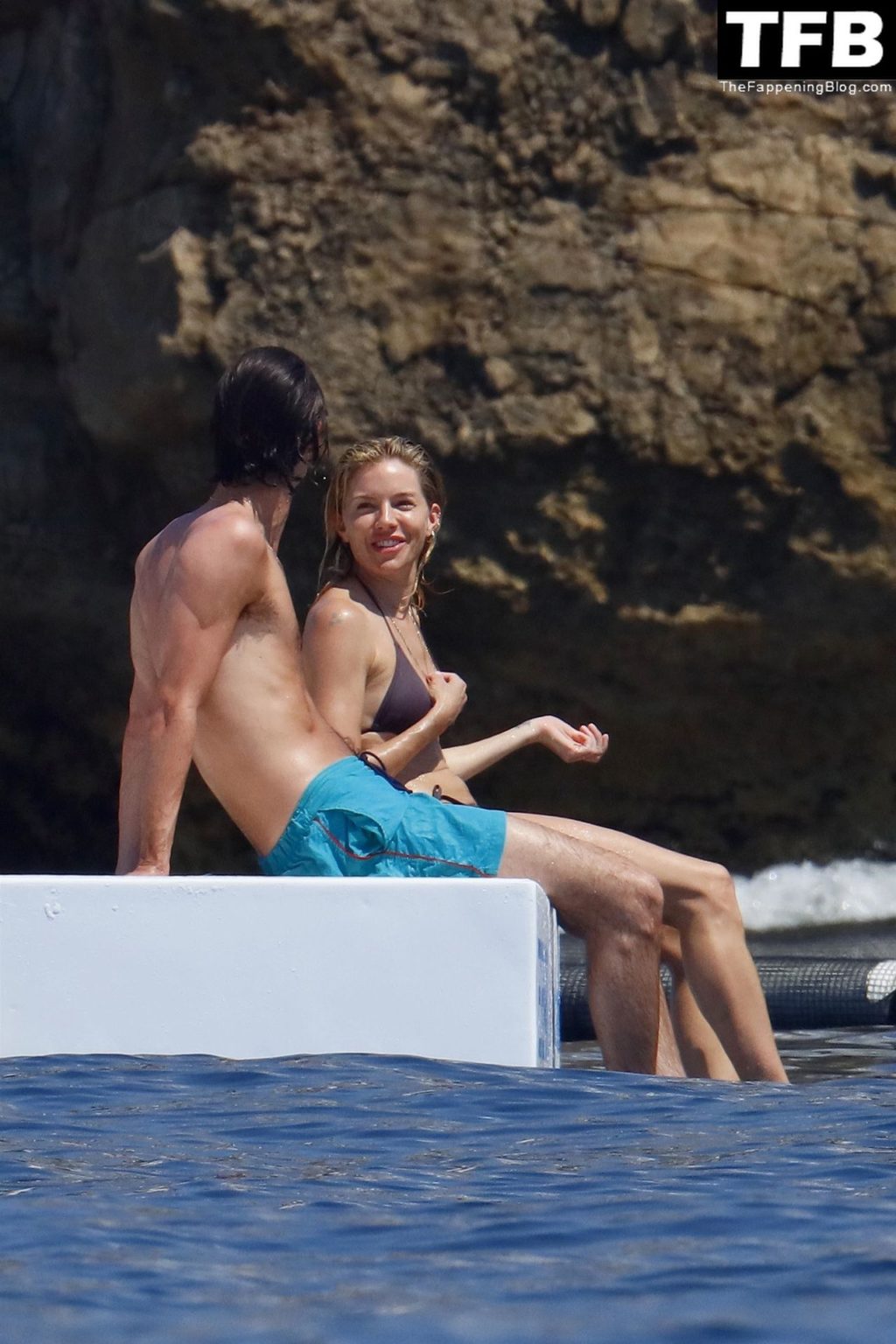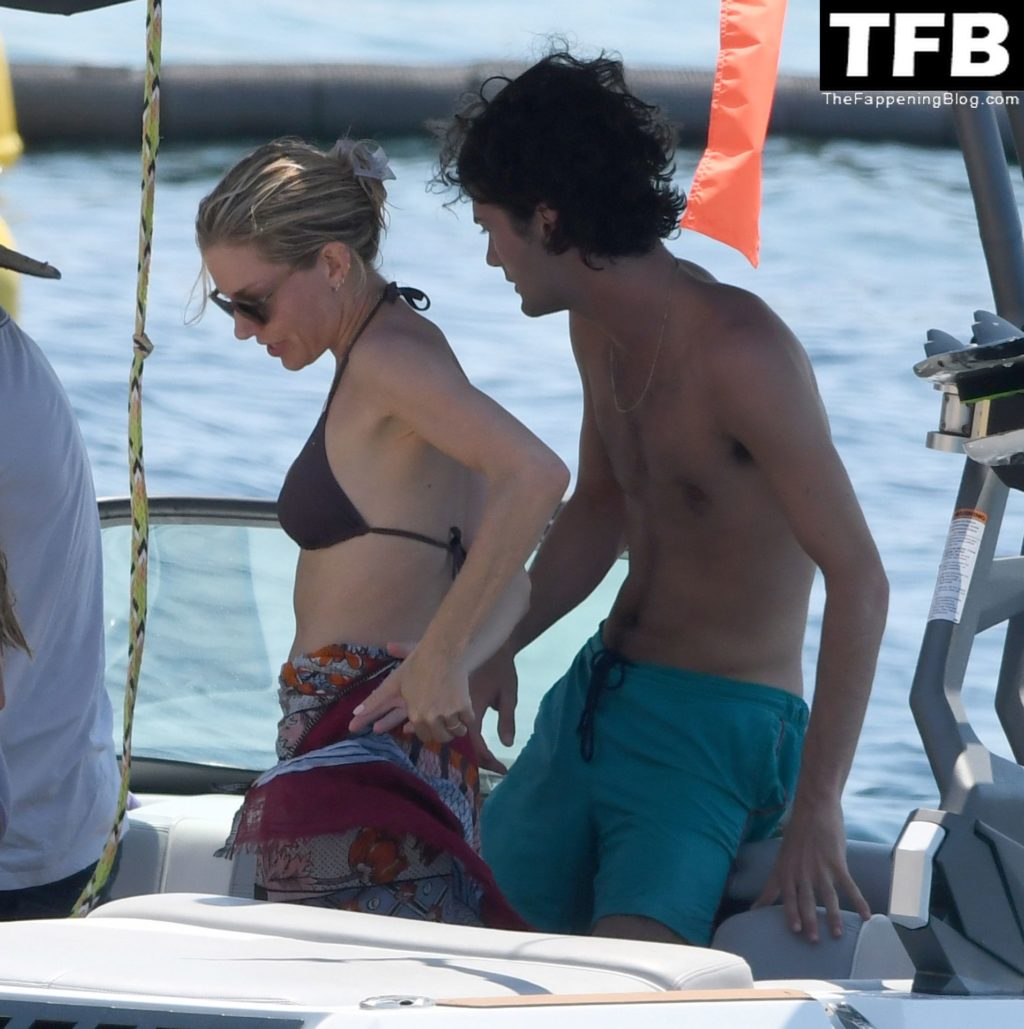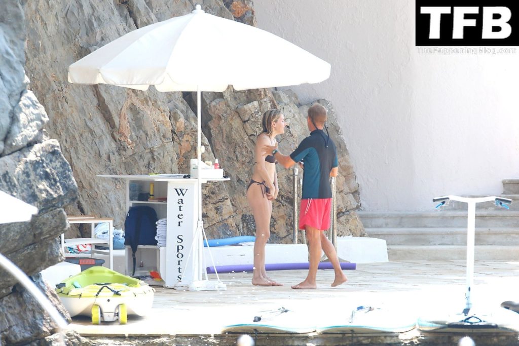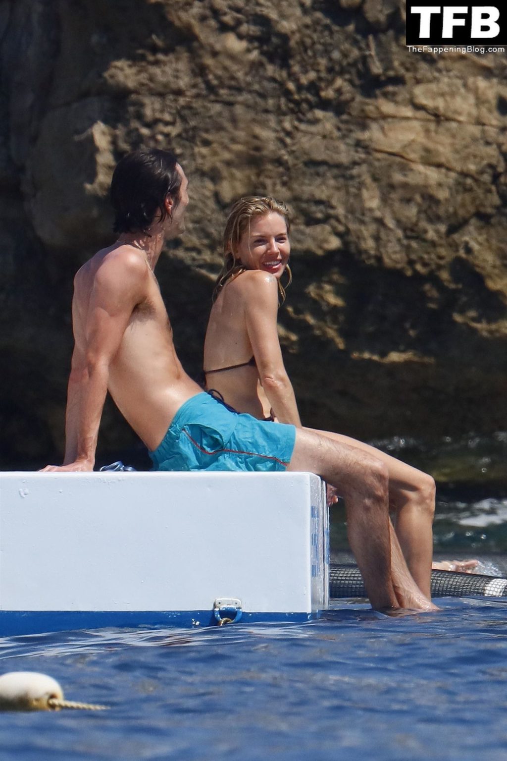 La actriz británica Sienna Miller muestra su sexy físico con un pequeño bikini ajustado junto a su novio Oli Green mientras disfrutan del sol en sus vacaciones en el sur de Francia con la hija de Sienna, Marlowe Sturridge, 21/07/2022.