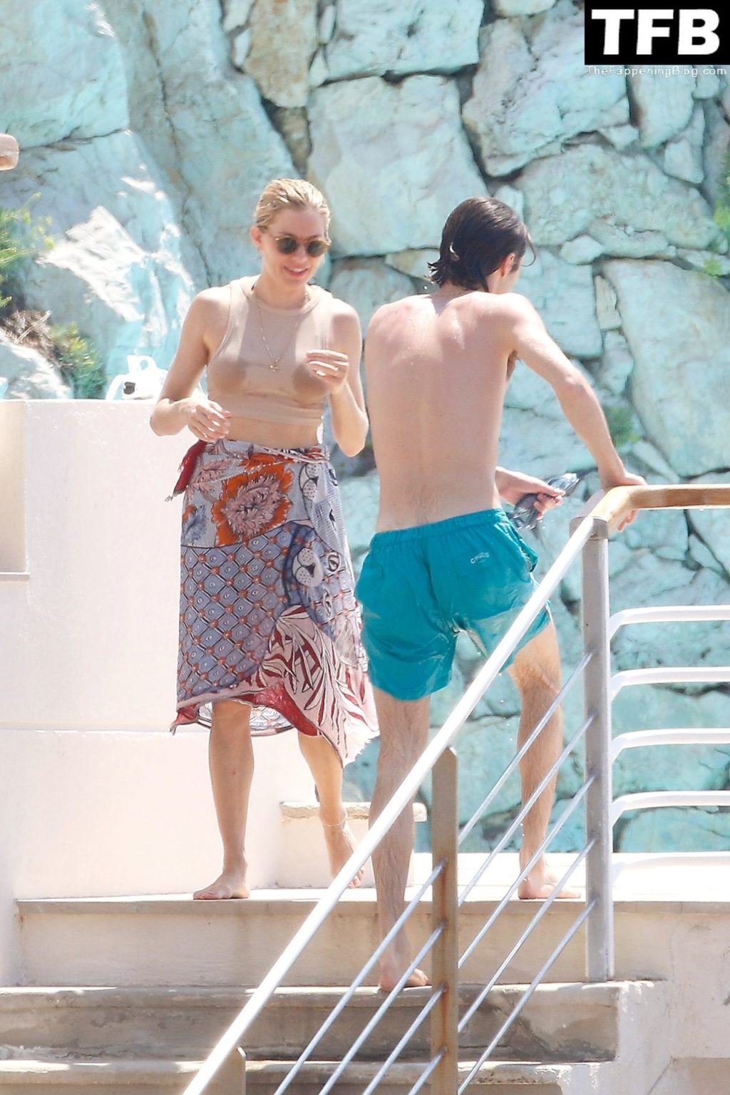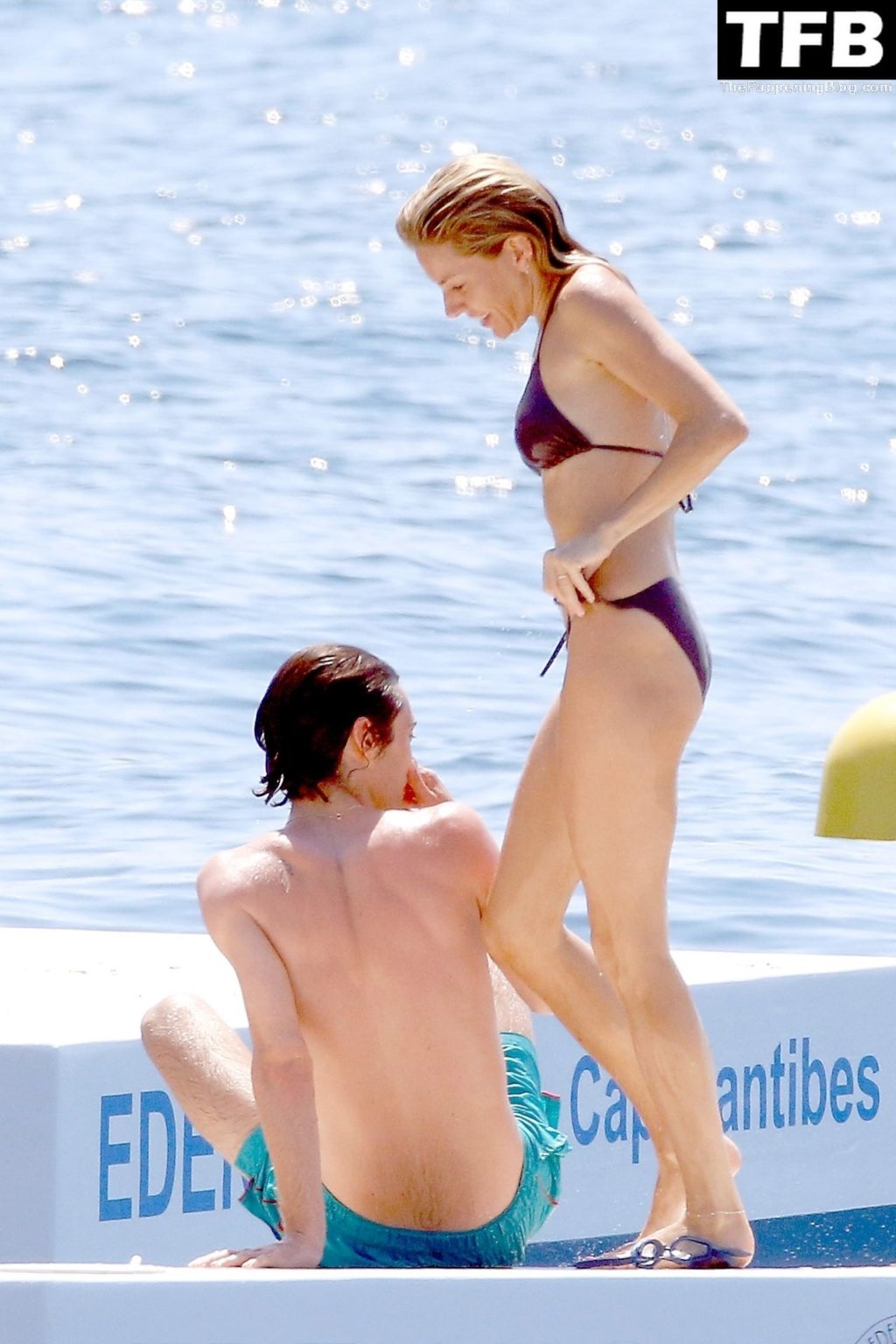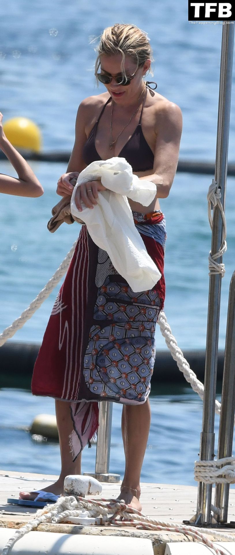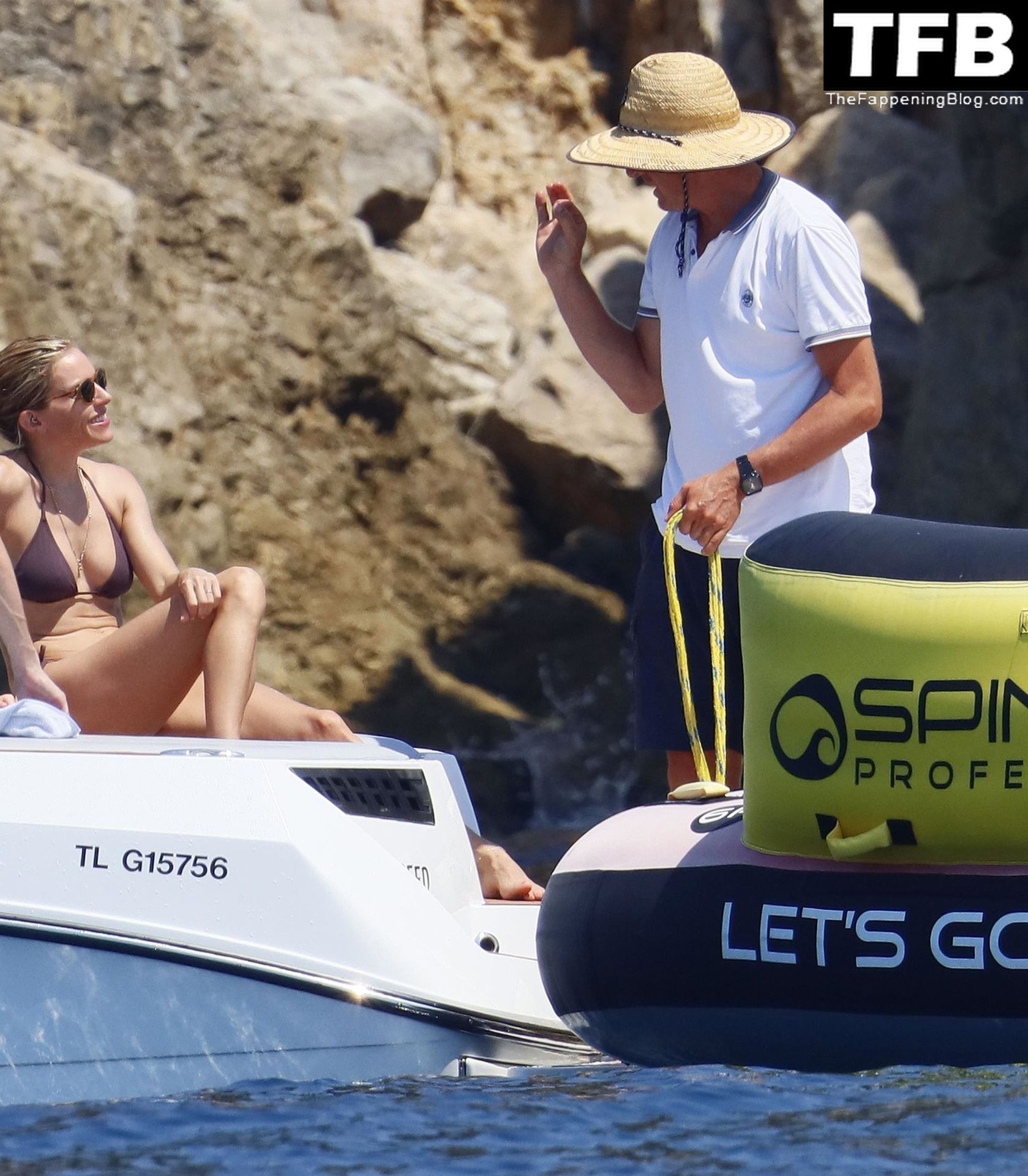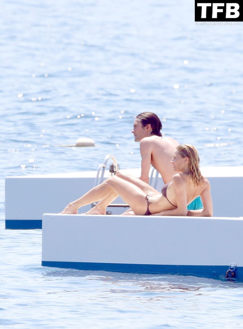 La actriz británica Sienna Miller muestra su sexy físico con un pequeño bikini ajustado junto a su novio Oli Green mientras disfrutan del sol en sus vacaciones en el sur de Francia con la hija de Sienna, Marlowe Sturridge, 21/07/2022.