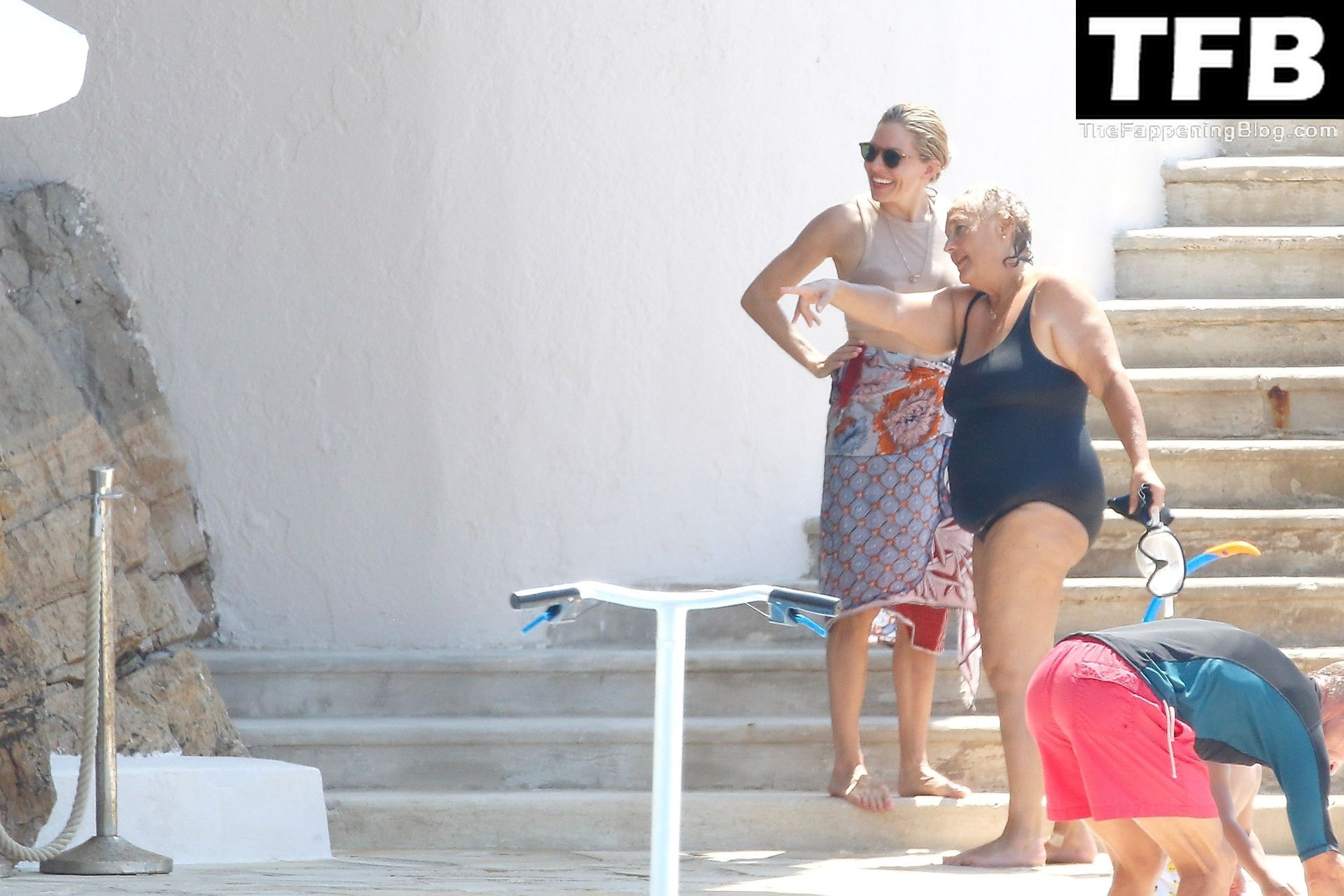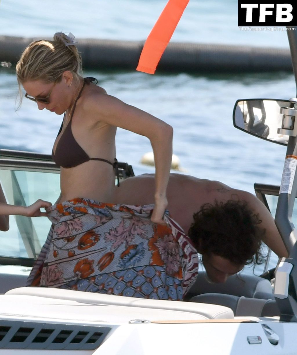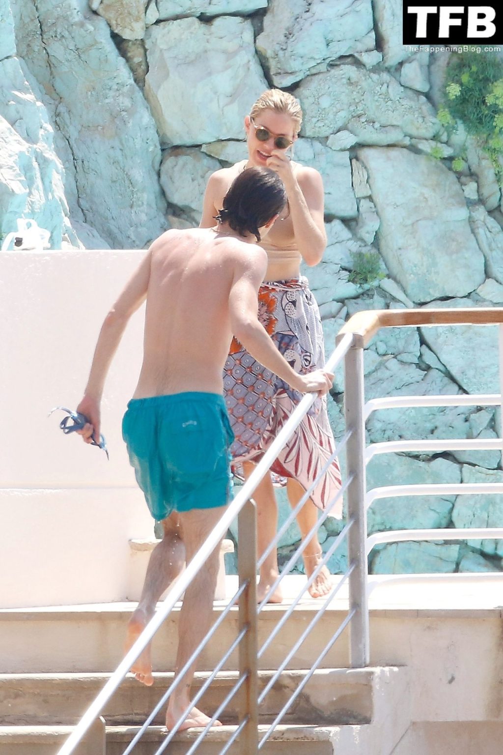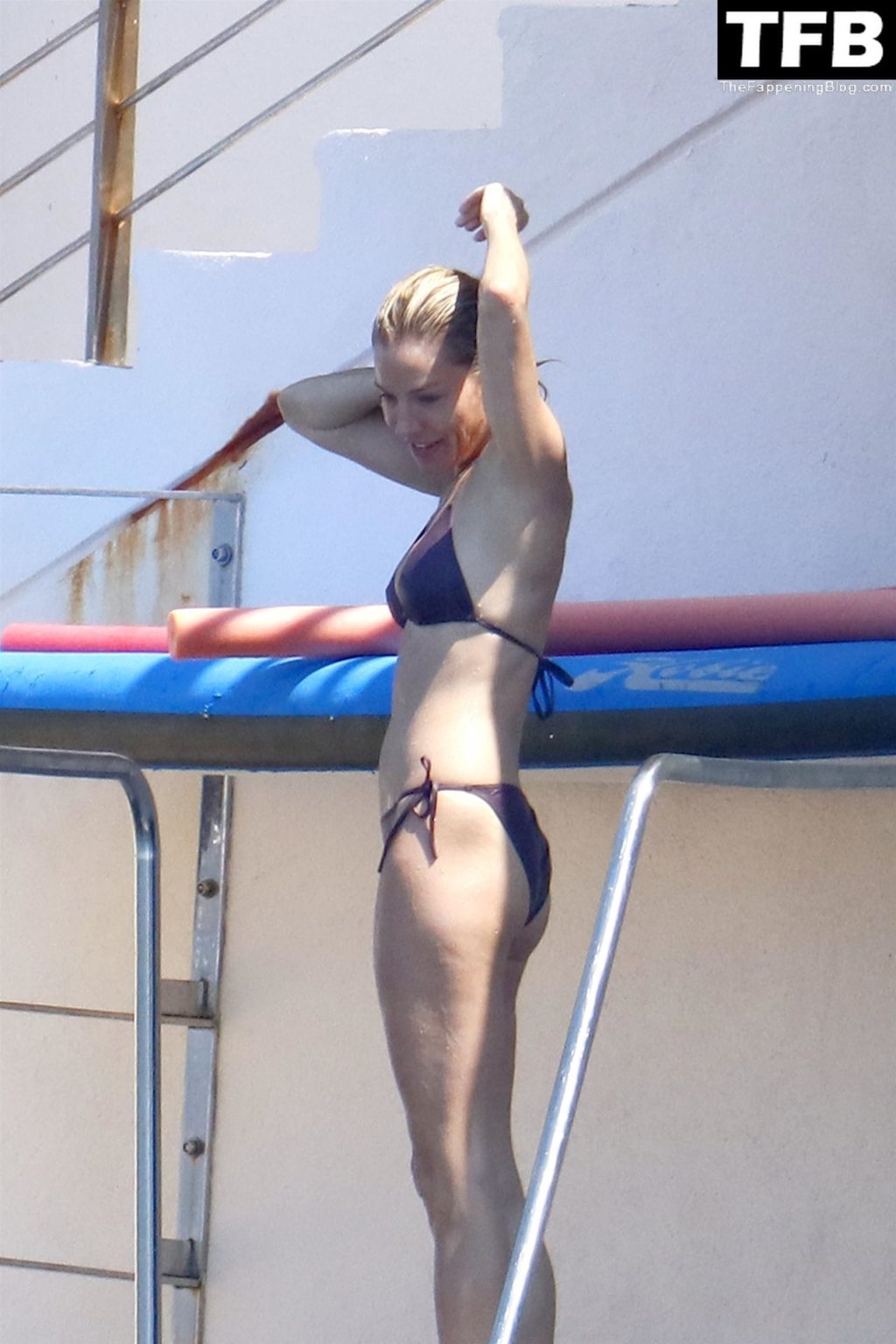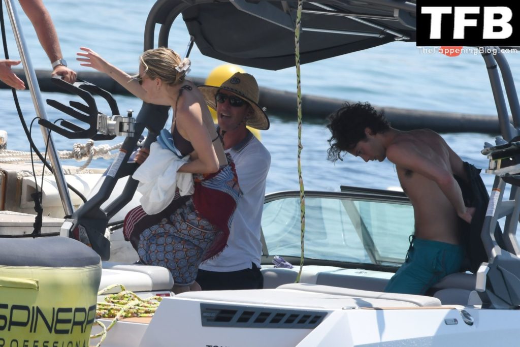 La actriz británica Sienna Miller muestra su sexy físico con un pequeño bikini ajustado junto a su novio Oli Green mientras disfrutan del sol en sus vacaciones en el sur de Francia con la hija de Sienna, Marlowe Sturridge, 21/07/2022.