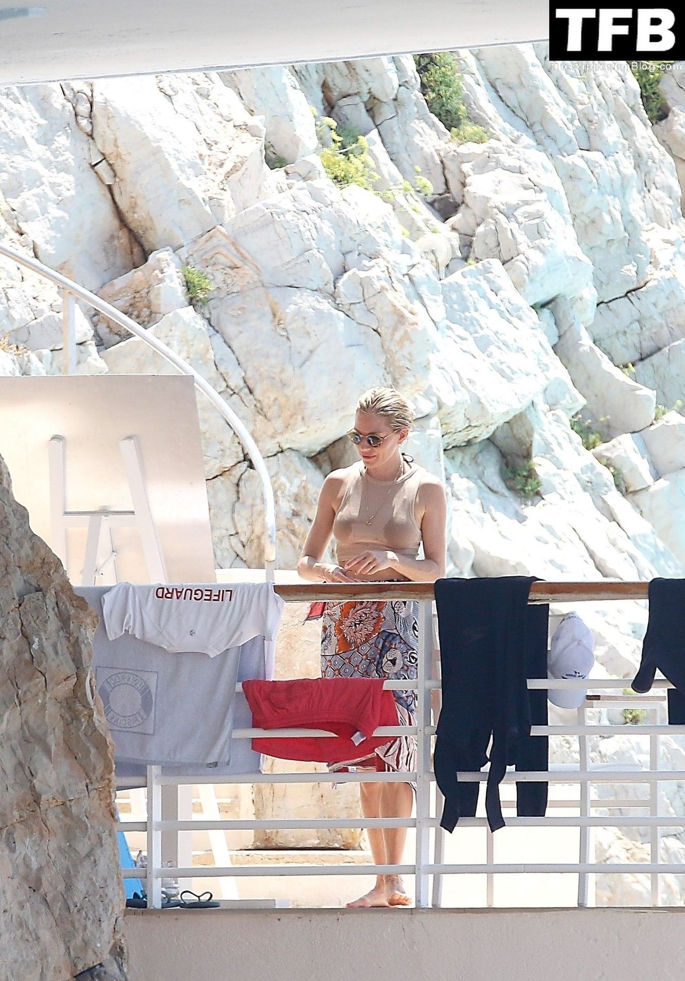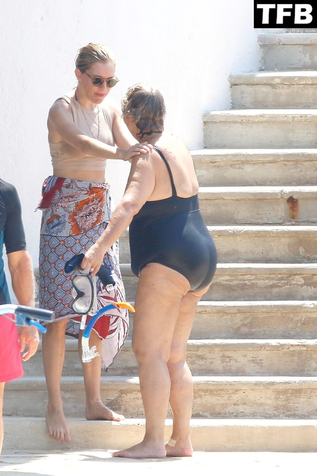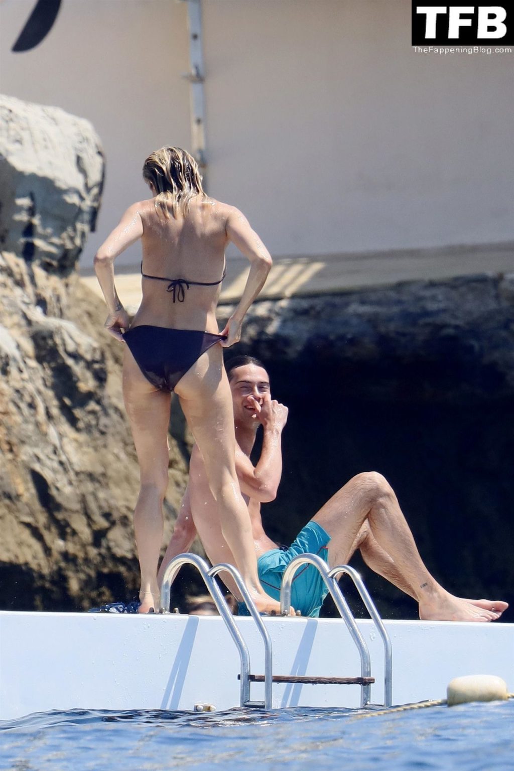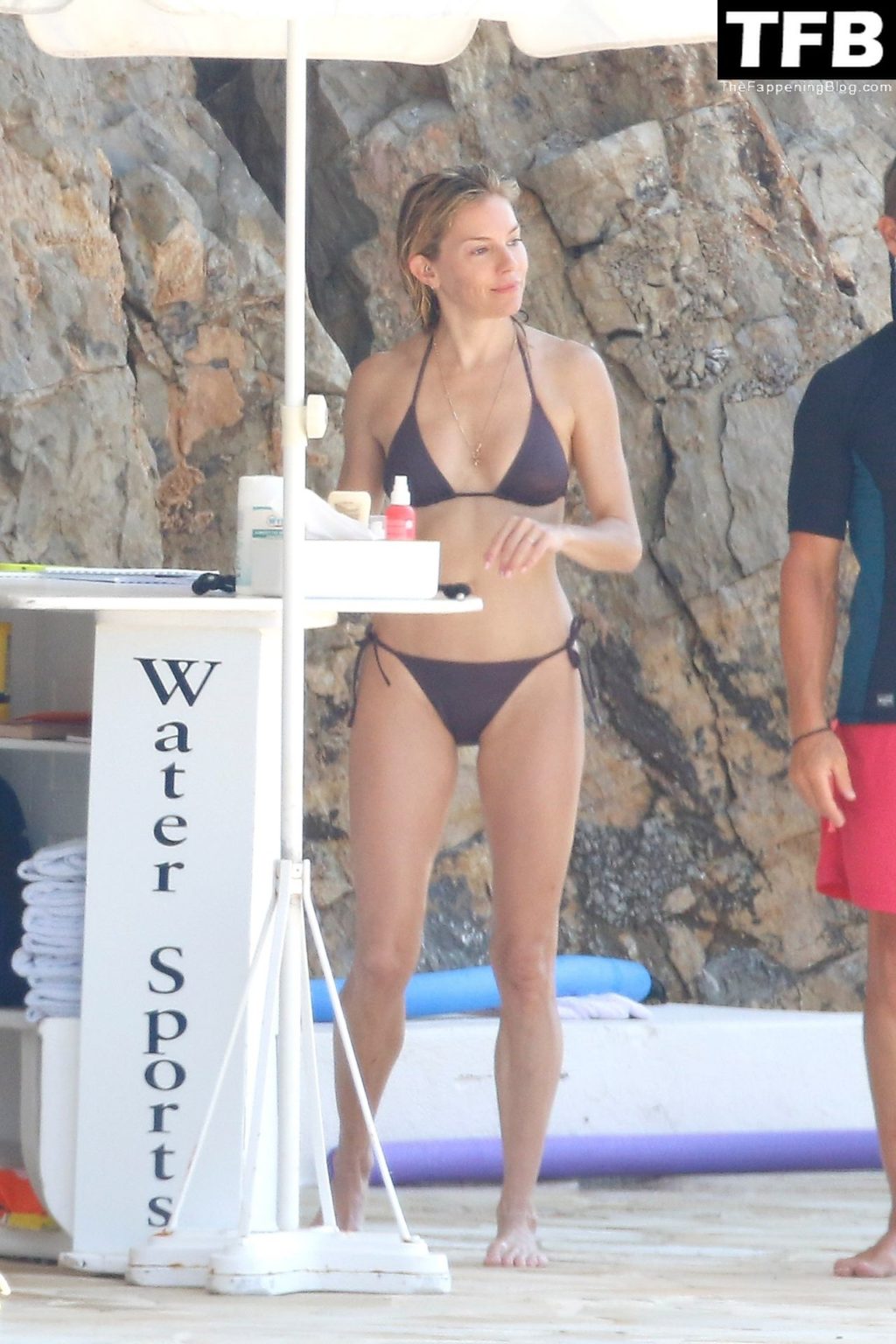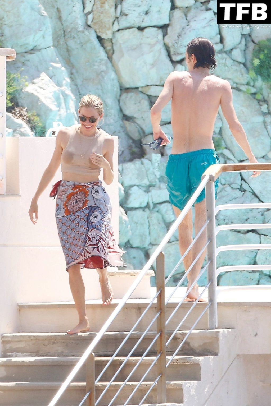 La actriz británica Sienna Miller muestra su sexy físico con un pequeño bikini ajustado junto a su novio Oli Green mientras disfrutan del sol en sus vacaciones en el sur de Francia con la hija de Sienna, Marlowe Sturridge, 21/07/2022.