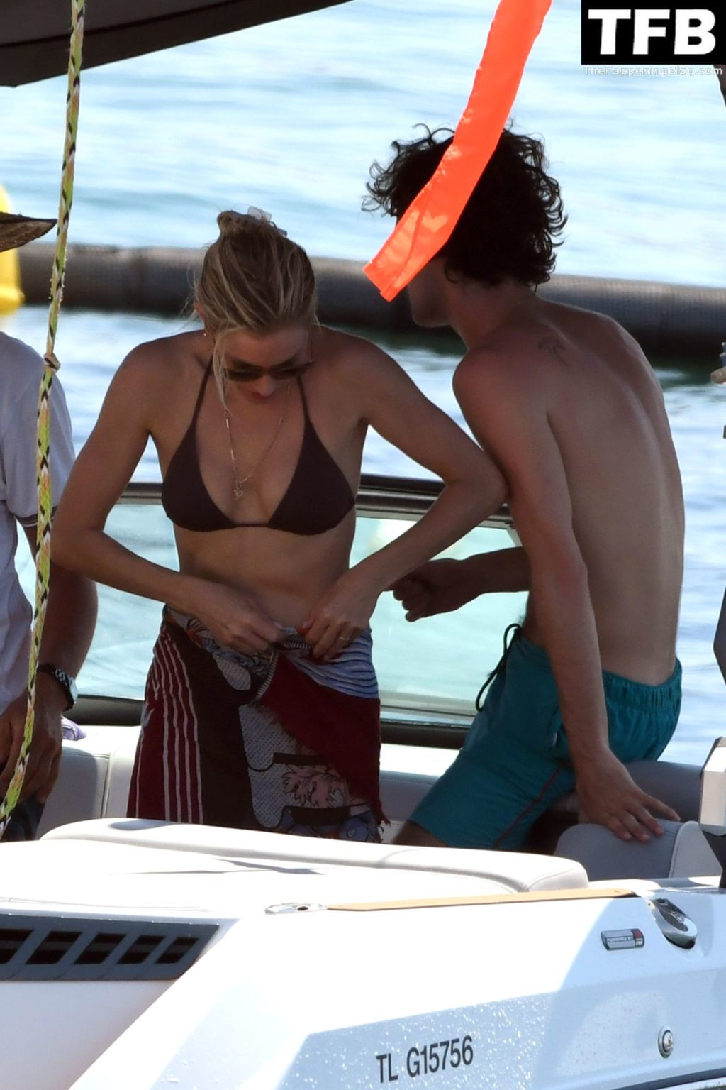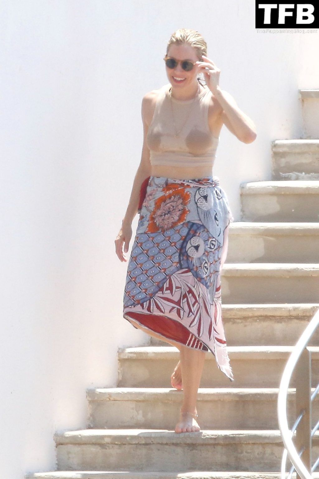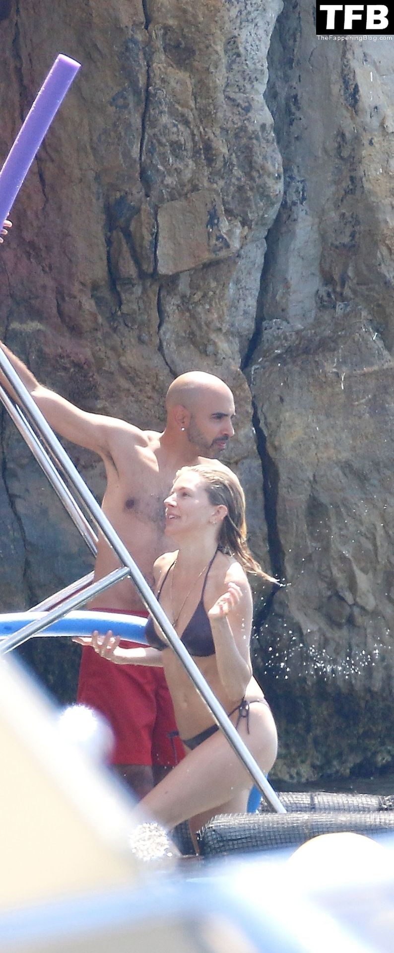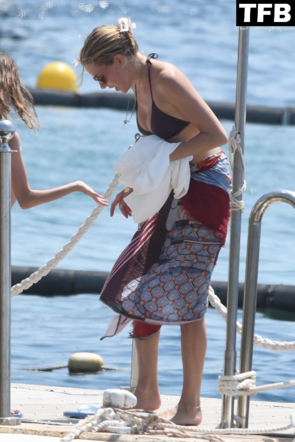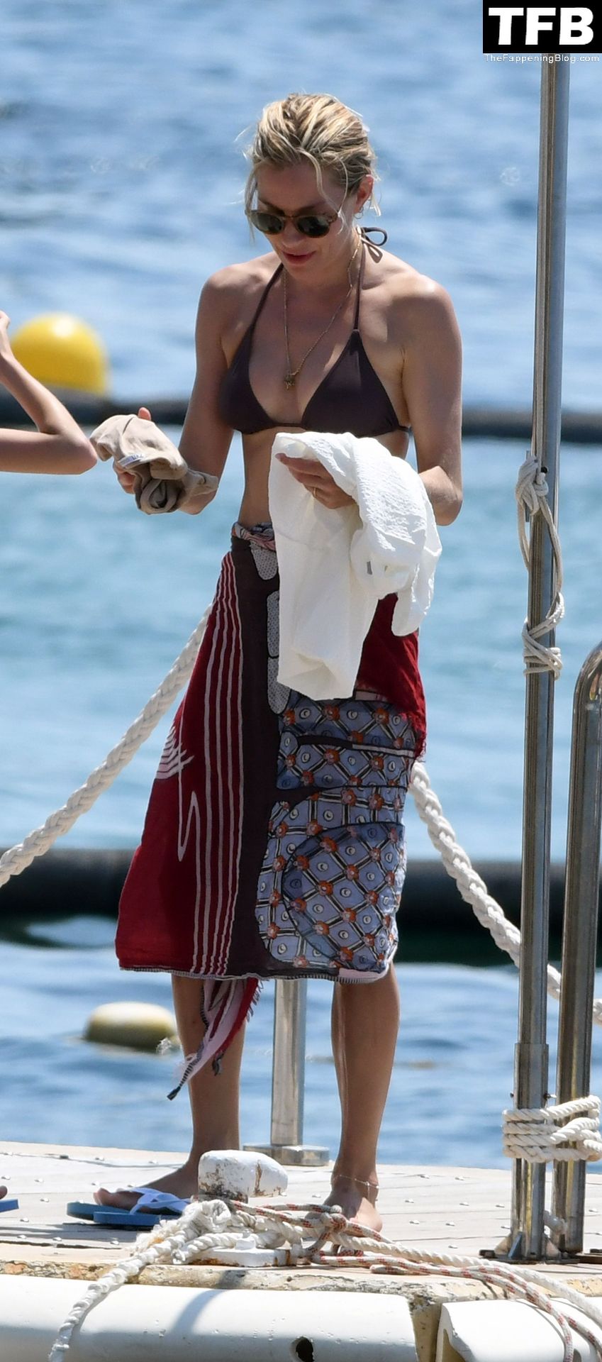 La actriz británica Sienna Miller muestra su sexy físico con un pequeño bikini ajustado junto a su novio Oli Green mientras disfrutan del sol en sus vacaciones en el sur de Francia con la hija de Sienna, Marlowe Sturridge, 21/07/2022.