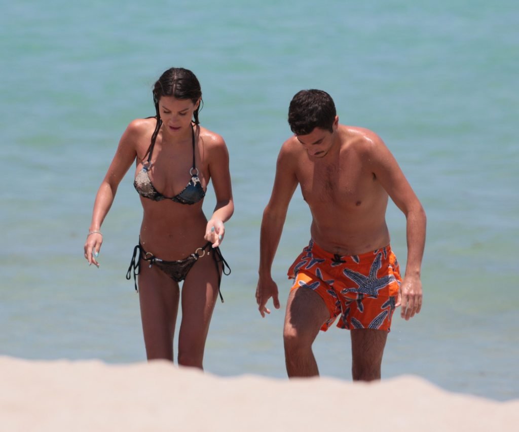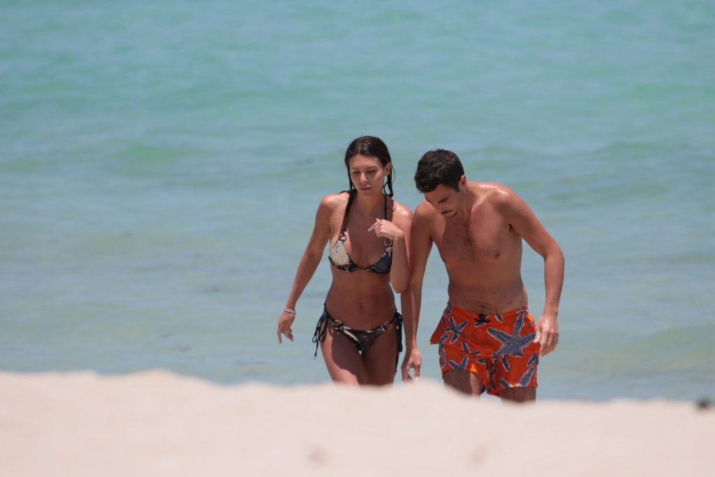 Silvia Caruso lleva un bikini con top triangular en la playa de Miami Beach, 11/05/2017. Silvia Caruso es una modelo italiana. Edad: 20 (16 de febrero de 1997).