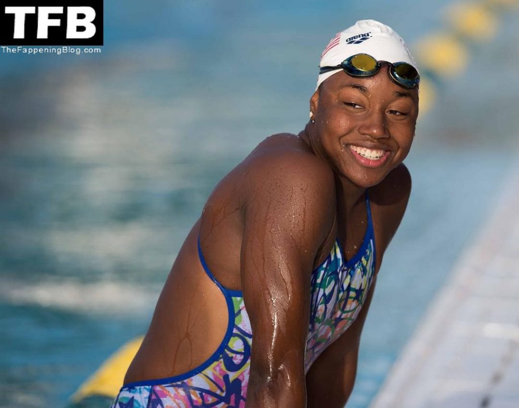 Simone Manuel está en una nueva colección sexy, mostrando su cuerpo musculoso en trajes de baño.