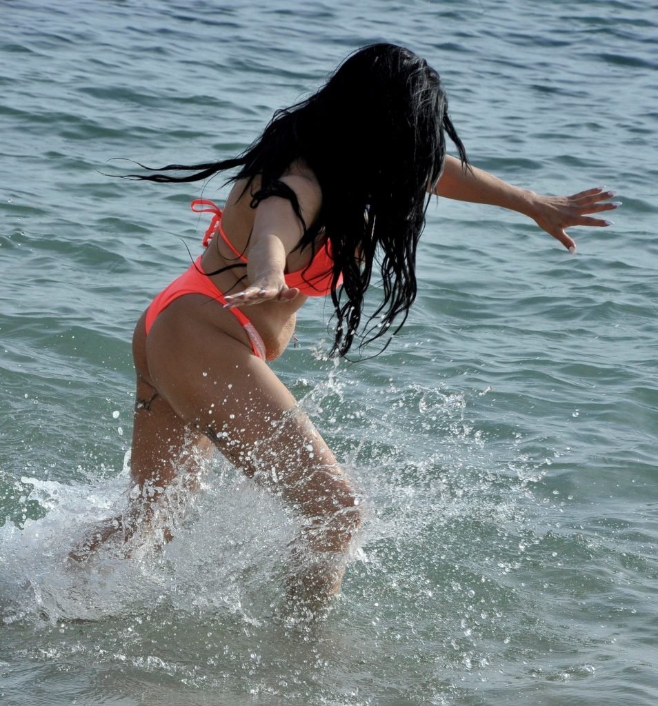 Concursante de Gran Hermano y cantante Simone Reed fotografiada en una escapada a España después de haberse sometido a cirugías estéticas por valor de más de £30,000, 15/04/2018. La morena posó con un nuevo bikini para los paparazzi.