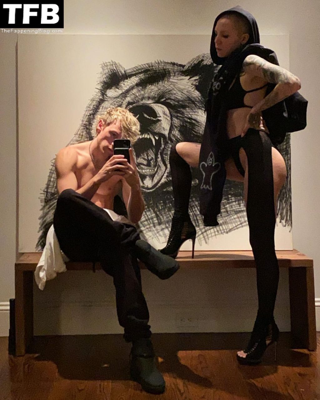 Cara de "meh" pero su cuerpo (incluyendo los tatuajes), tacones y cabeza rapada la hacen una puta caliente.