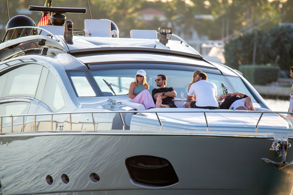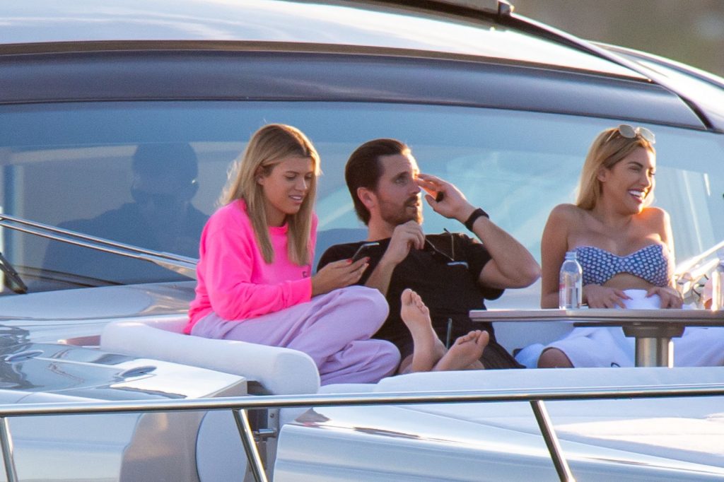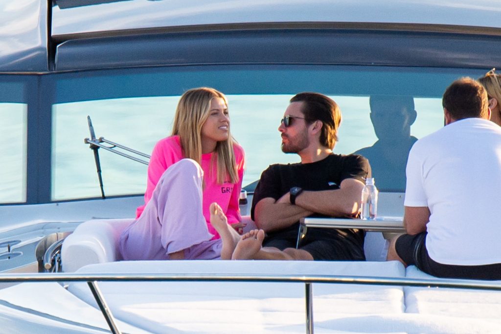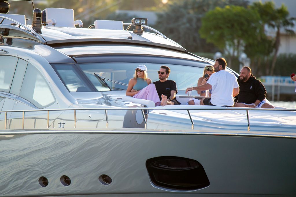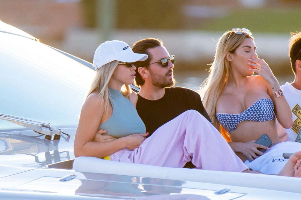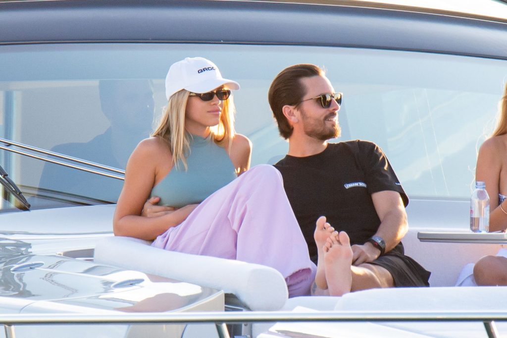 Sofia Richie y Scott Disick se acurrucan en un crucero de lujo en Miami, donde Sofia Richie lleva dos atuendos diferentes. Sofia Richie fue vista primero con una camiseta de manga larga rosa brillante con la frase “cuidado con los tiburones” escrita en la espalda, que forma parte de la colección de merchandising Groot de Dave Grutman. La rubia belleza luego se cambió a una blusa gris sin mangas y se puso su gorra blanca de béisbol. La pareja estaba en el yate de lujo con amigos, incluido Dave Grutman, a quien pertenece el barco.