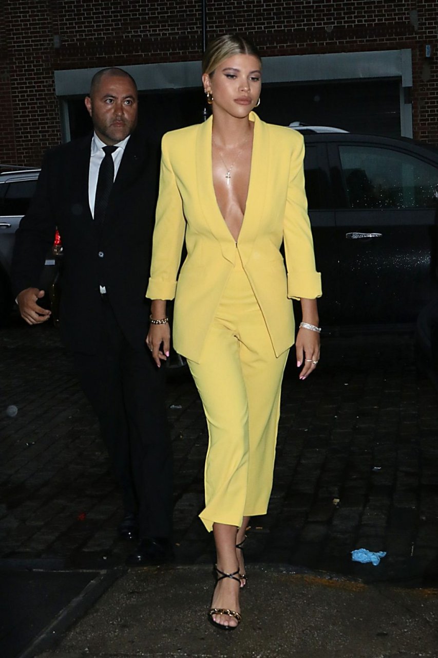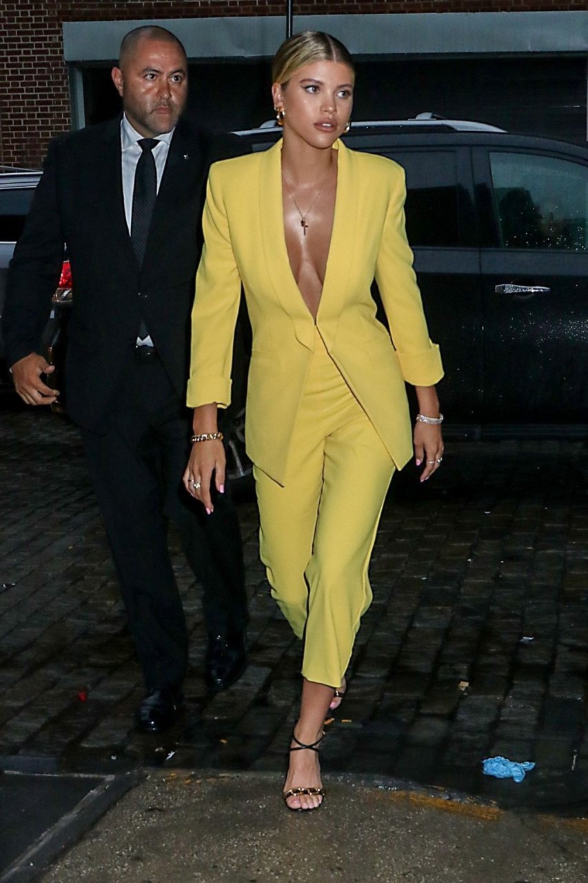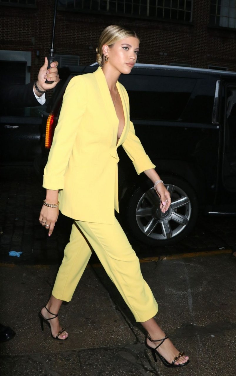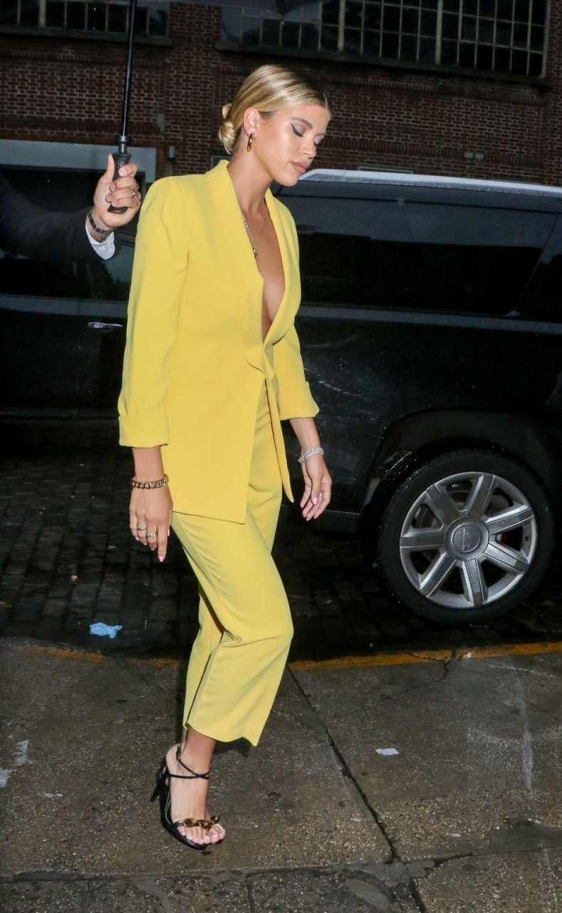Sofia Richie irradia atractivo sexual con un blazer amarillo escotado y pantalón a juego al llegar a la Fiesta de Inicio de Verano de Alice + Olivia y The Trevor Project para el Orgullo Mundial en la ciudad de Nueva York, 18/06/2019.