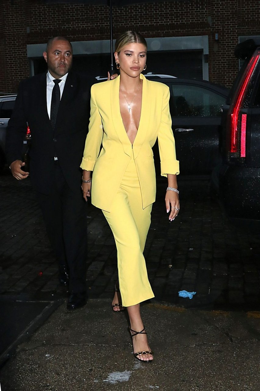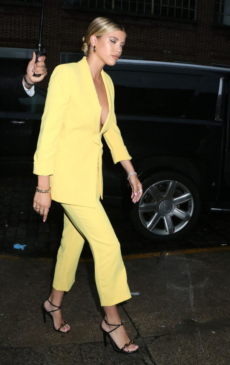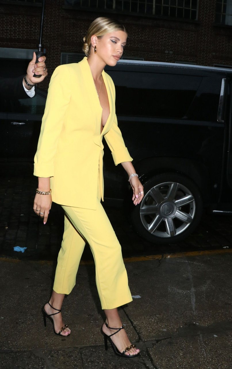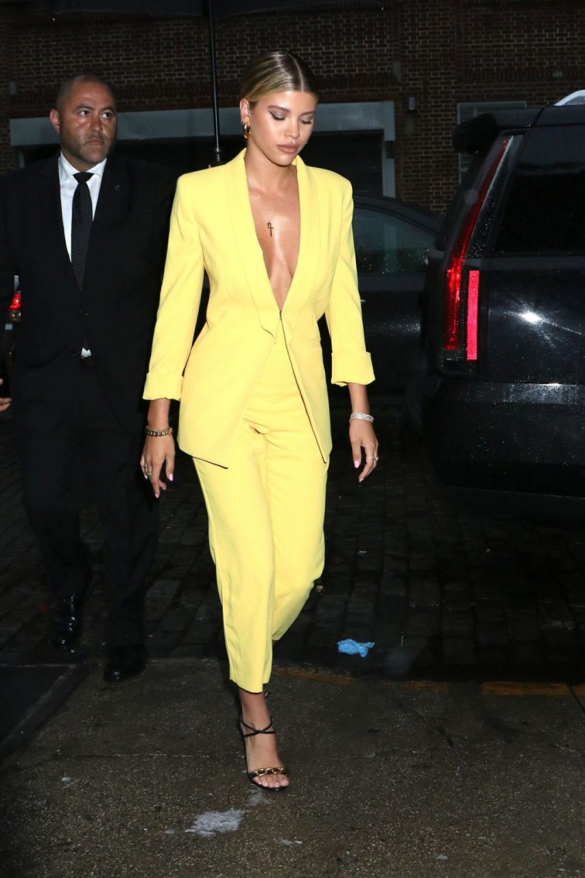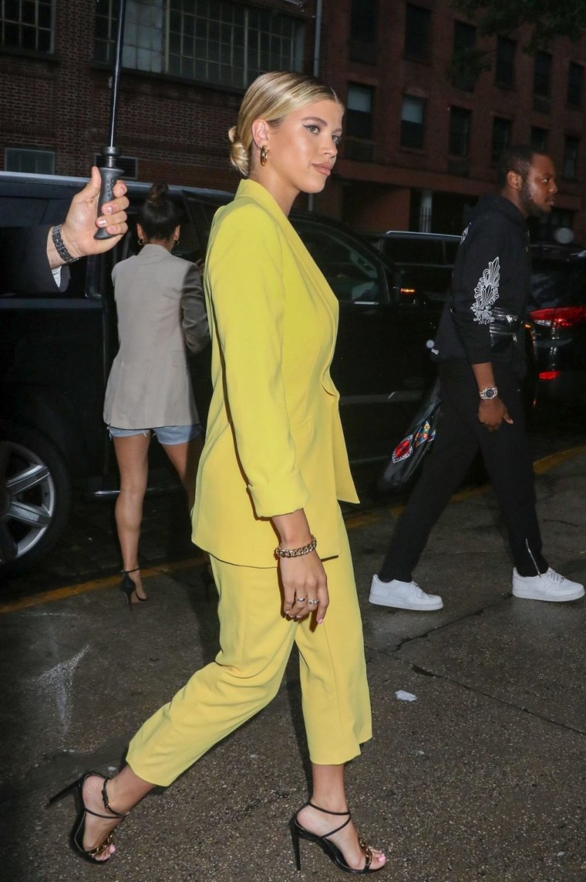Sofia Richie irradia atractivo sexual con un blazer amarillo escotado y pantalón a juego al llegar a la Fiesta de Inicio de Verano de Alice + Olivia y The Trevor Project para el Orgullo Mundial en la ciudad de Nueva York, 18/06/2019.