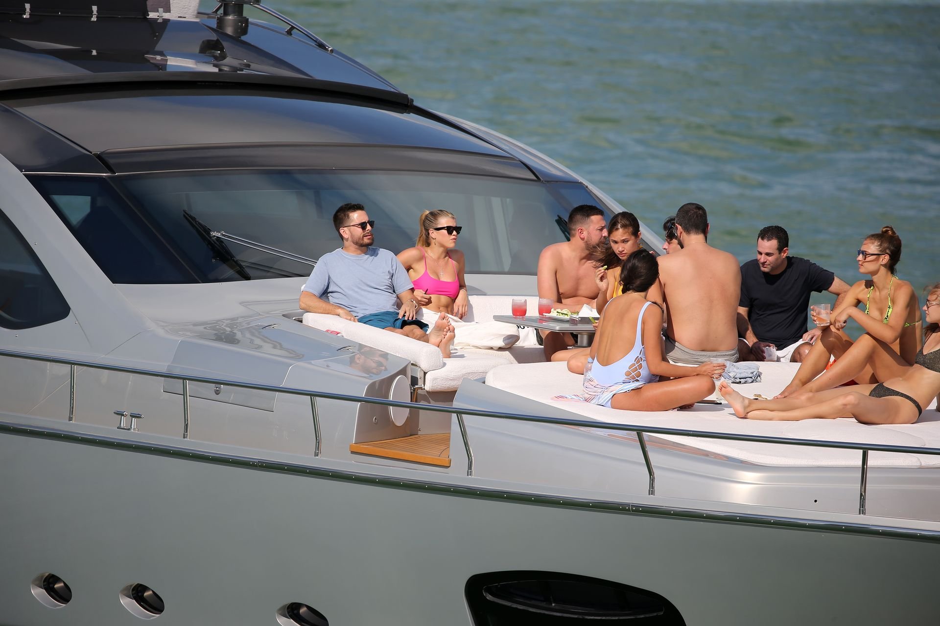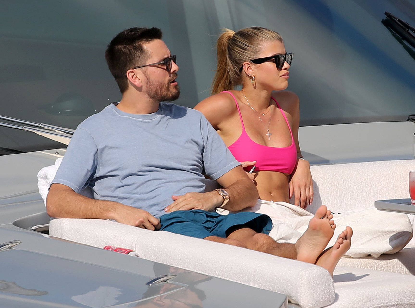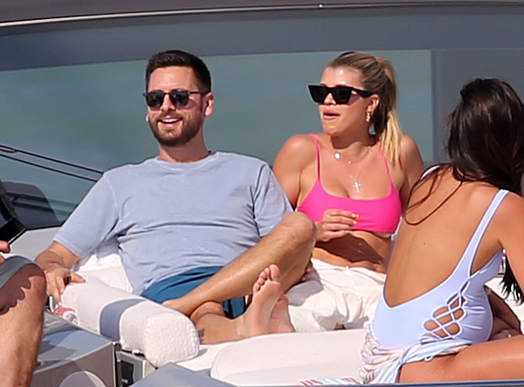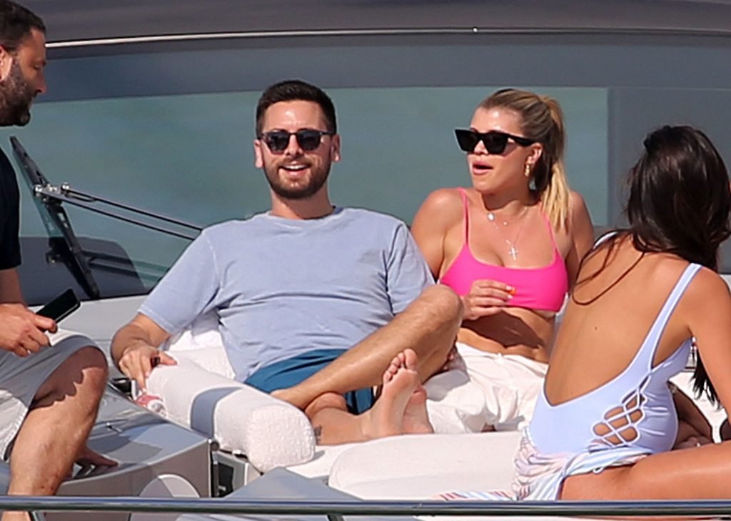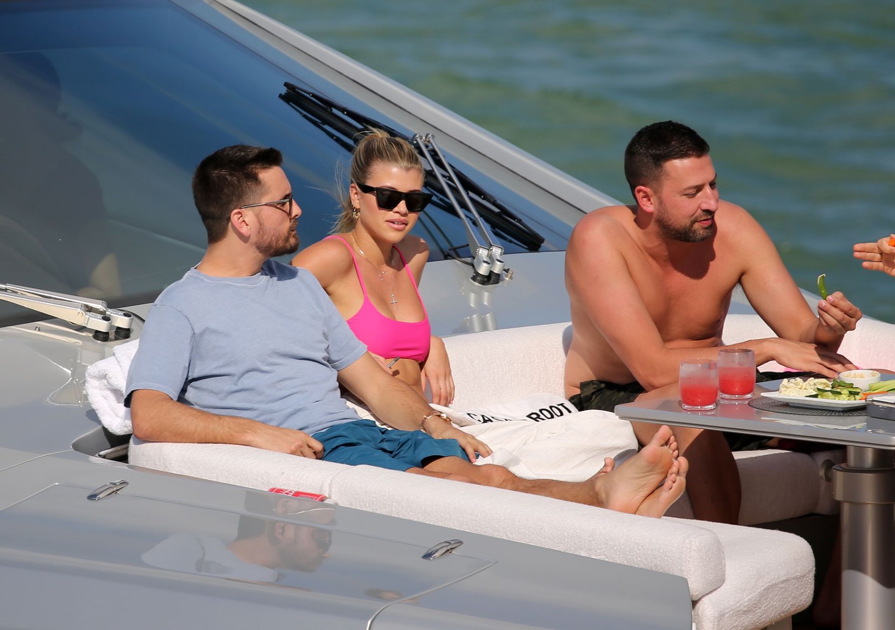 Model Sofia Richie lleva un top de bikini rosa fuerte mientras se relaja en un yate con su novio Scott Disick en Miami, 17/02/2019.